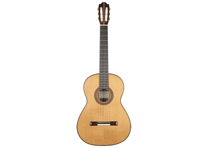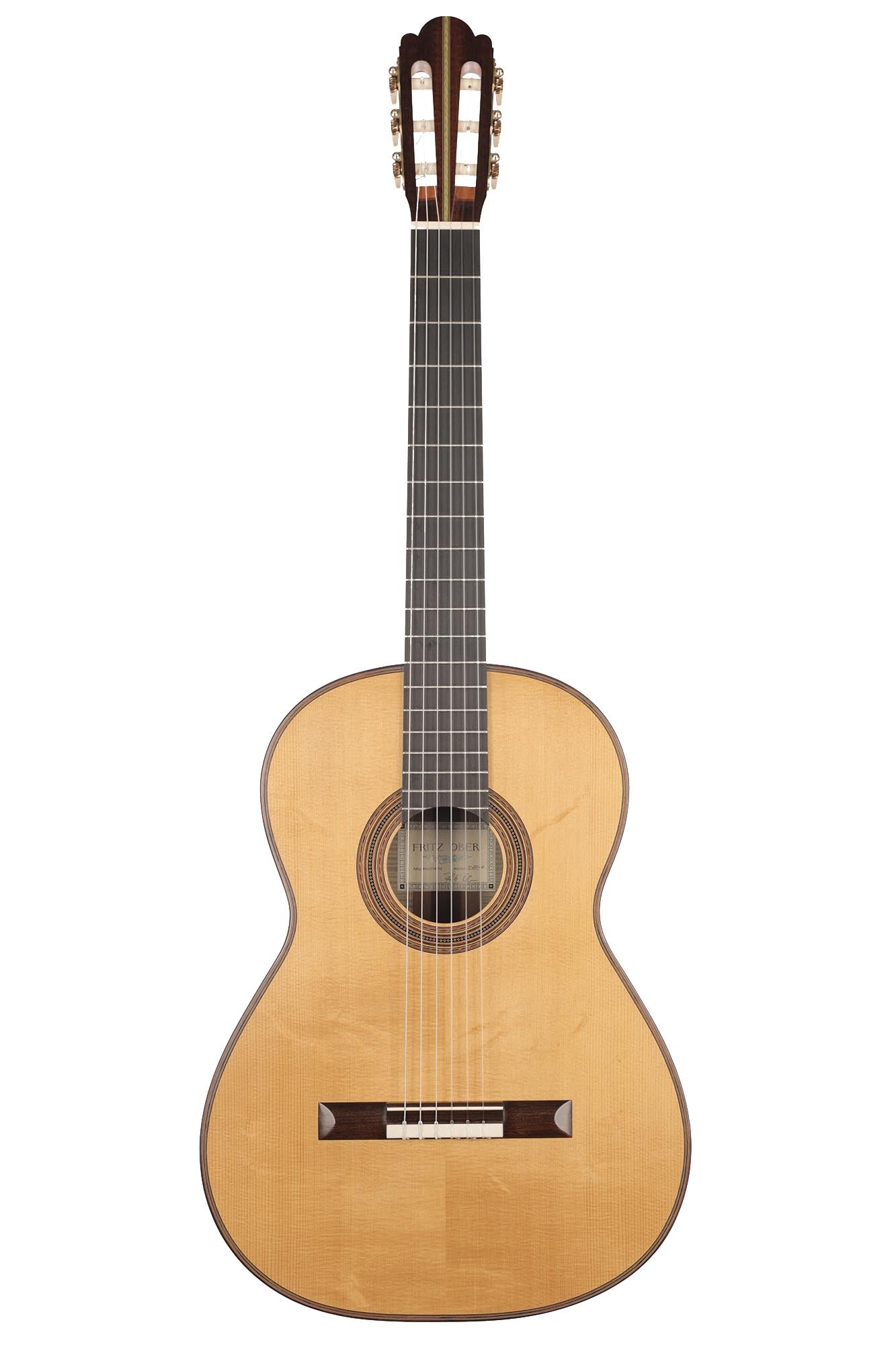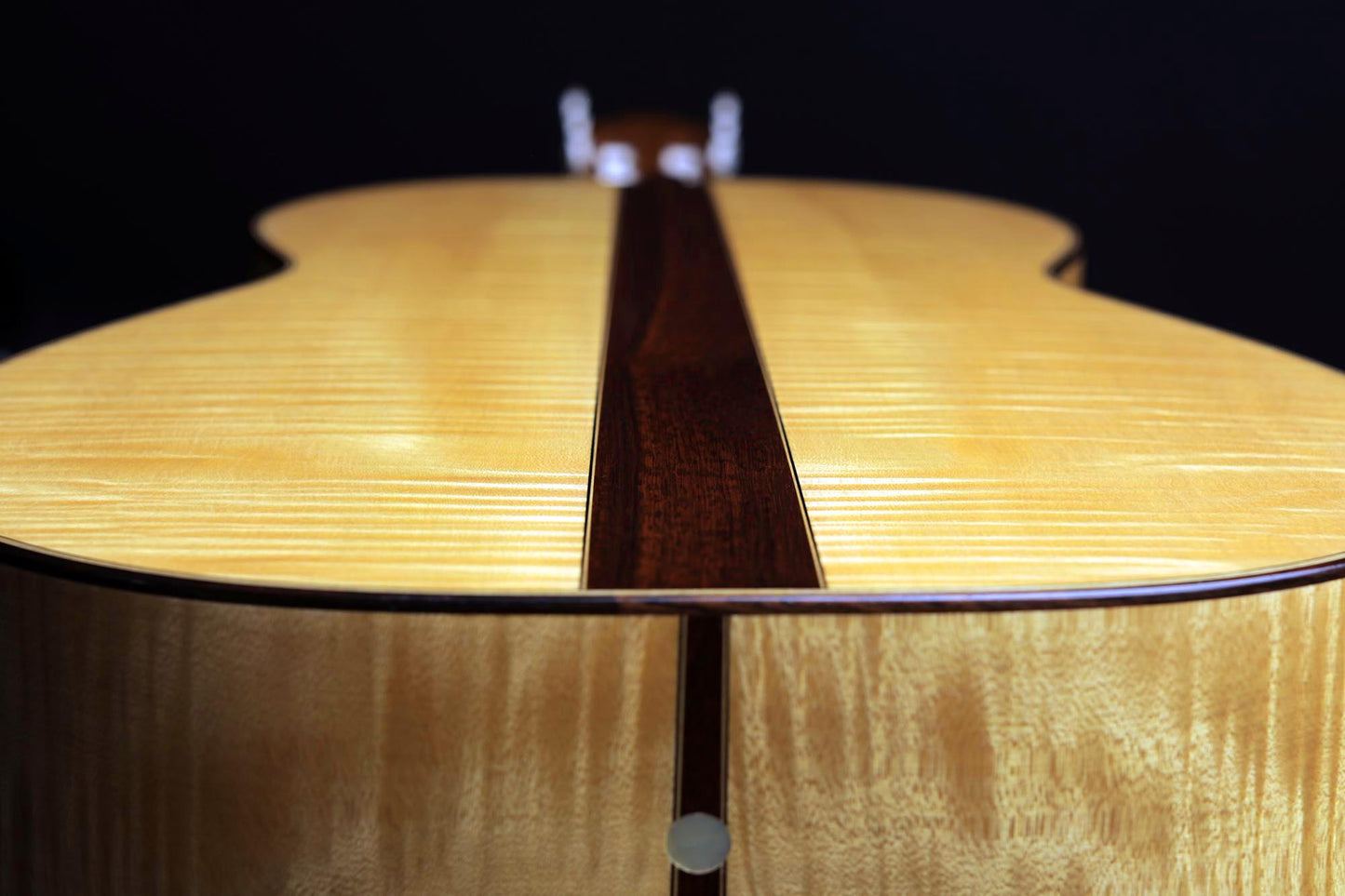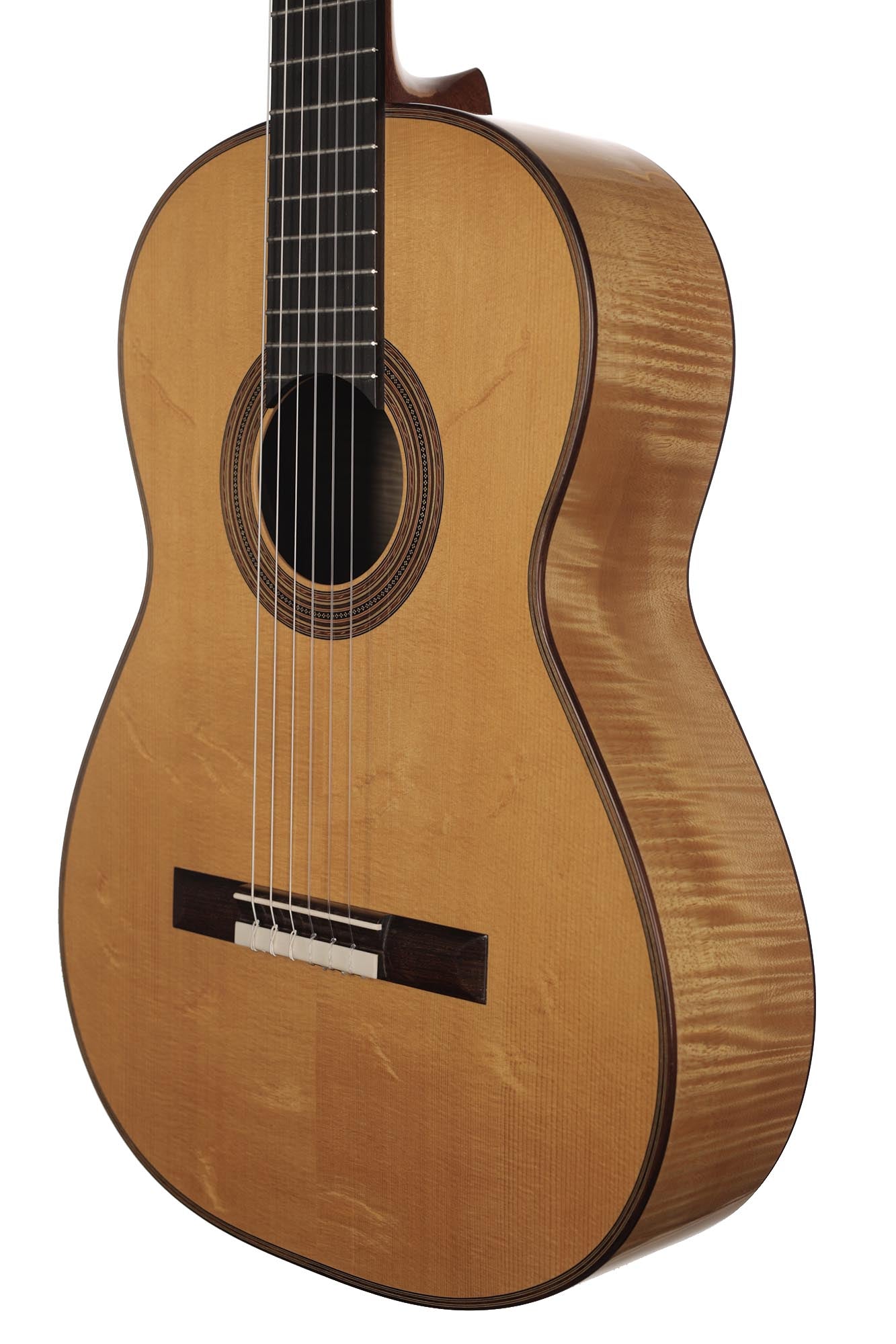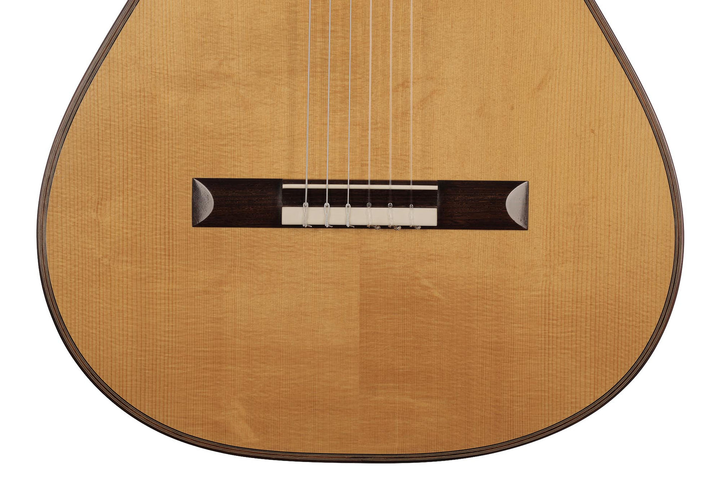The beauty of this instrument is reflected in the elegance of its timbre. It is very light and has a spontaneous tone which shows the characteristic sound-colour of the maple used for the back and sides. The top made of German spruce responds very well, and the last ten years of playing have given this guitar a powerful and colourful voice. It really combines everything you would expect from a traditional guitar in the style of Antonio de Torres, and is one of the most beautiful Fritz Ober guitars we have experienced in recent years.