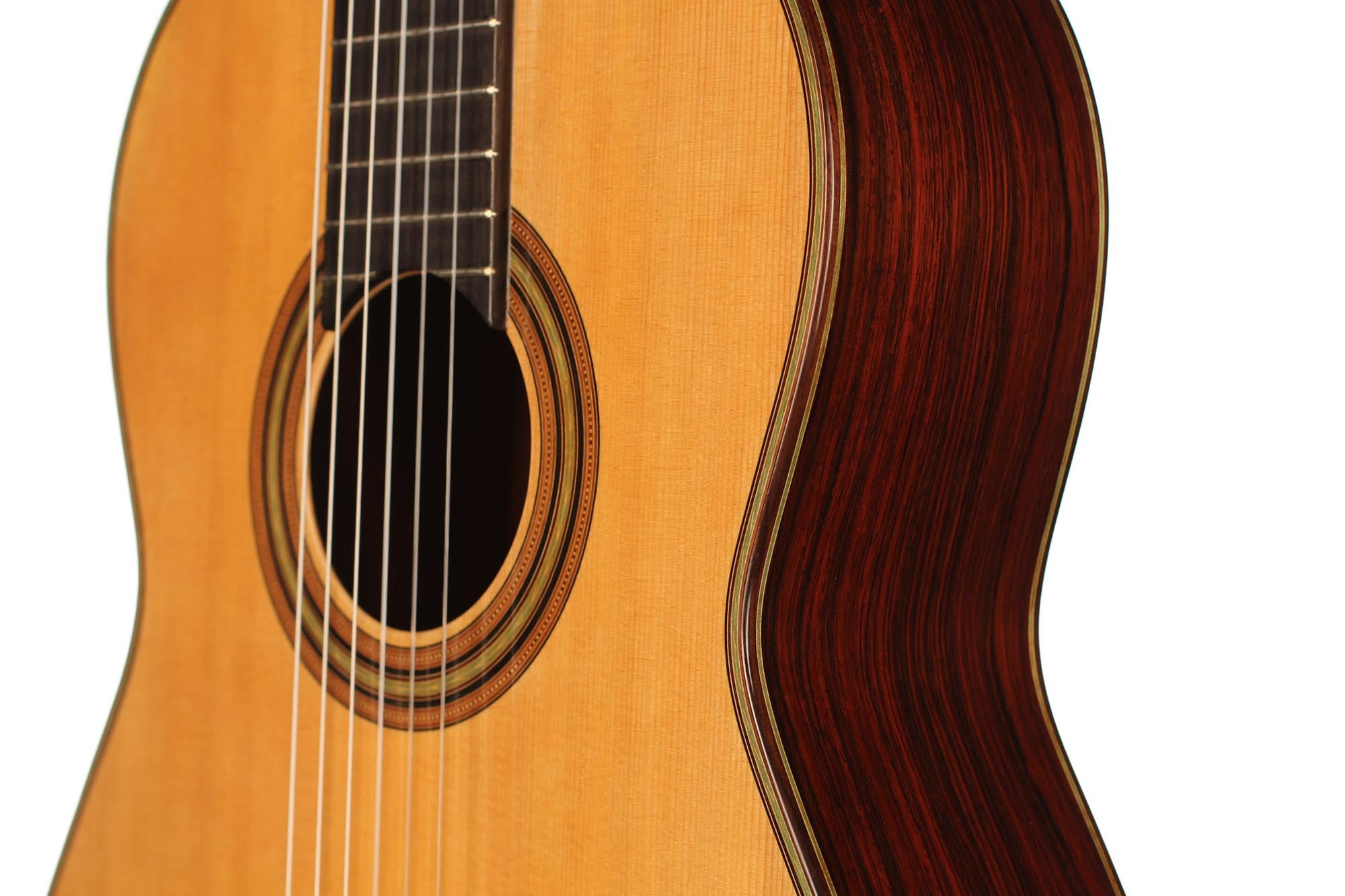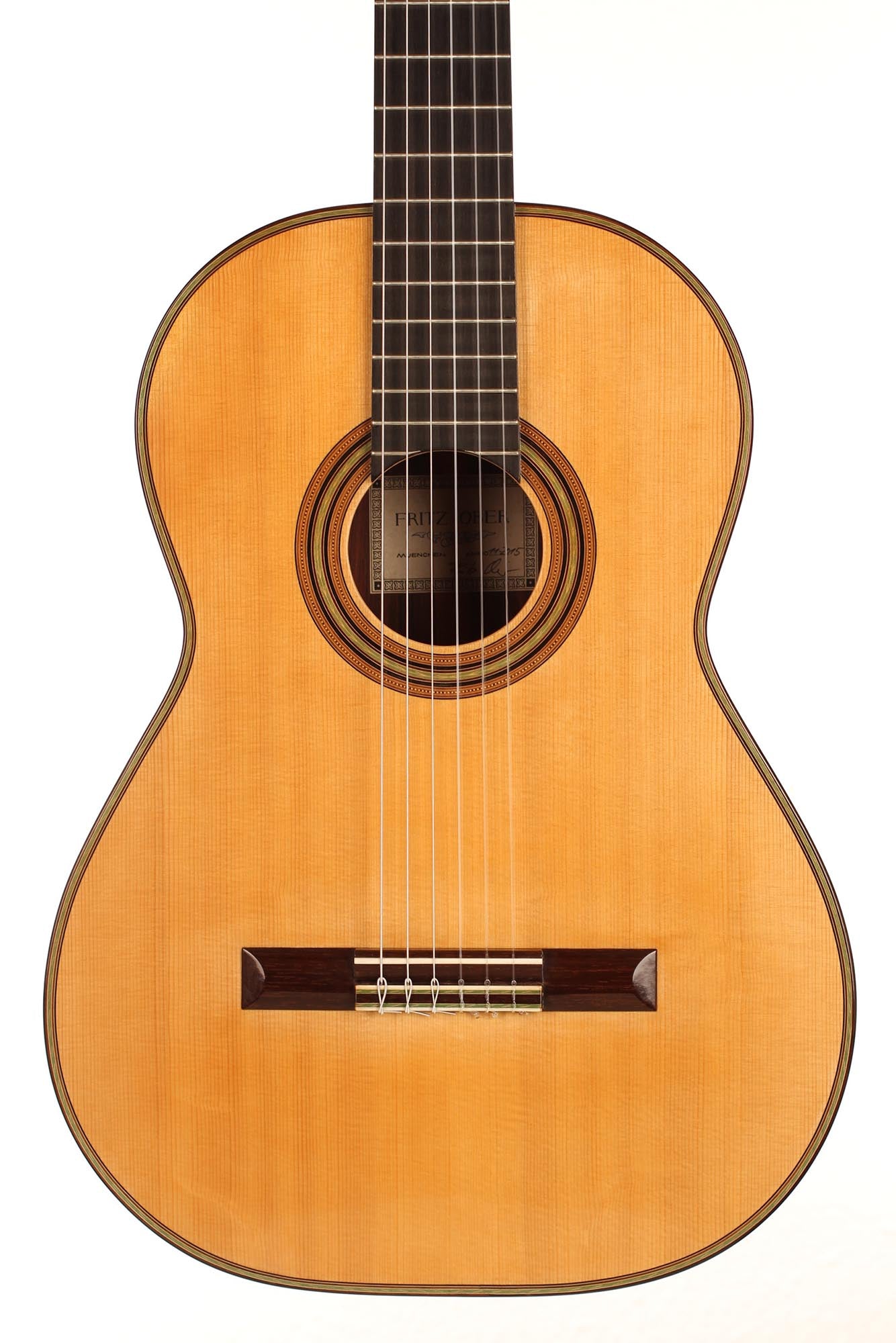Die klassische Gitarre mit ihren weichen Nylonsaiten und ihrem charakteristischen Timbre ist zum Symbol der Kammermusik, der spanischen Tradition und des Konzertrepertoires geworden. Ihre moderne Form prägte Antonio de Torres im 19. Jahrhundert, indem er den Standard für Korpus, Fächerbeleistung und die 65-Zentimeter-Mensur setzte, die bis heute verwendet werden. Instrumente dieser Kategorie eröffnen eine reiche Palette von den feinen romantischen Miniaturen Tárregas bis zu den majestätischen Konzerten Rodrigos. Hier finden Sie Gitarren, die historische Kontinuität bewahren und zugleich zu neuen Interpretationen anregen.
