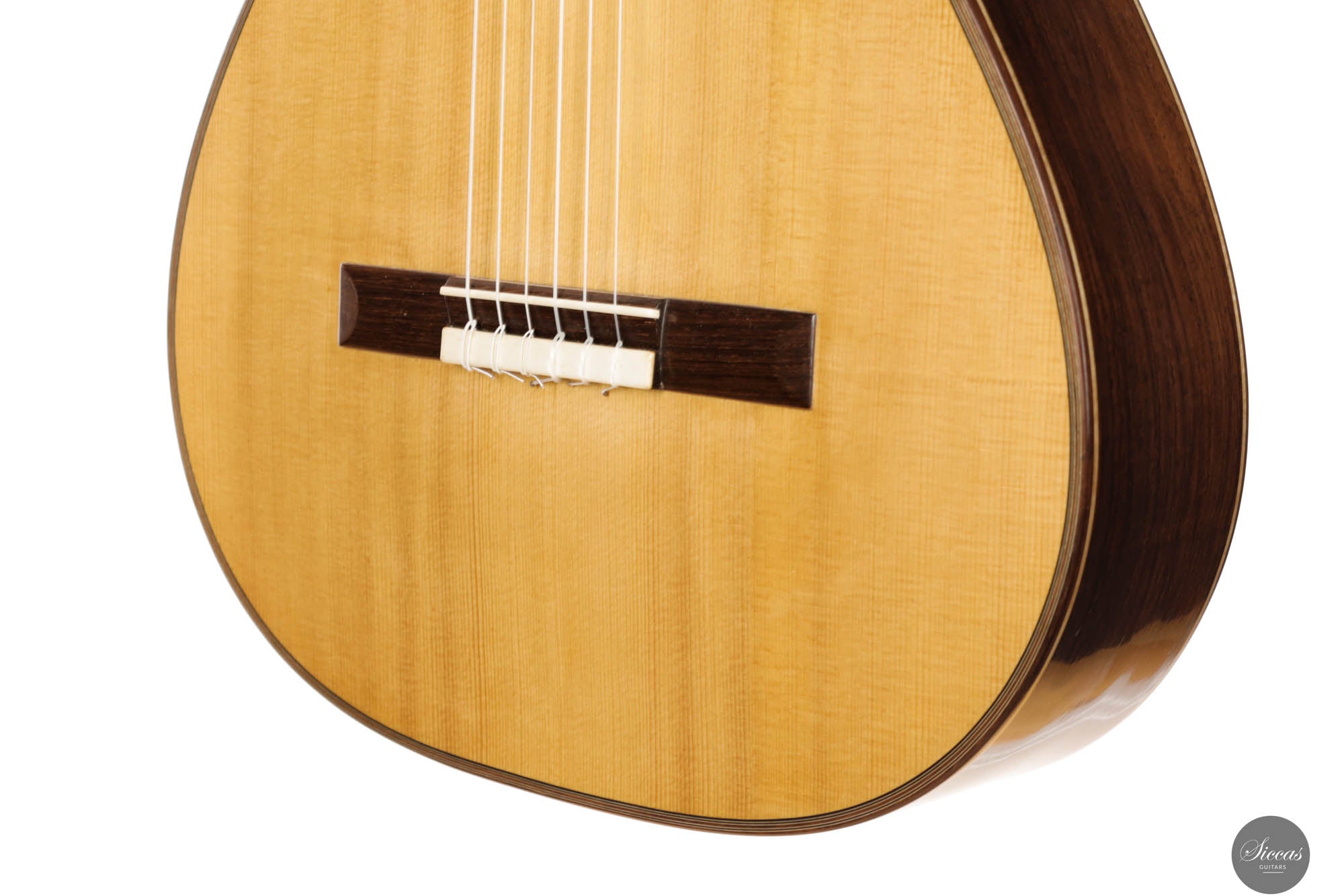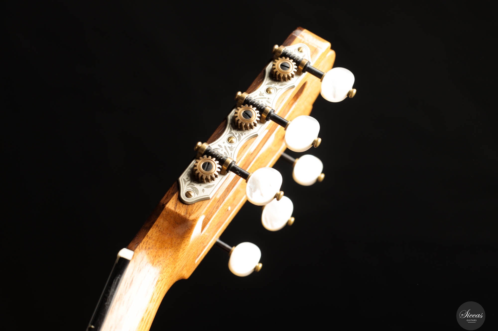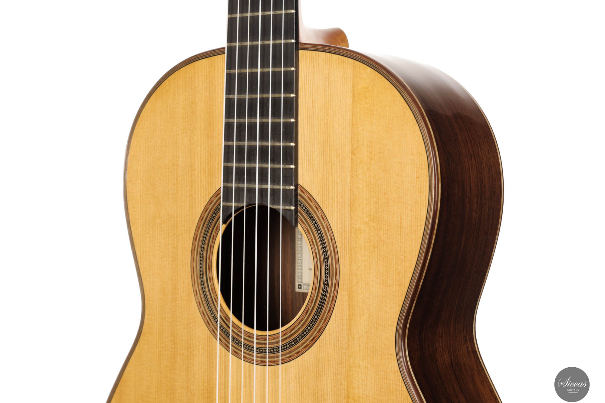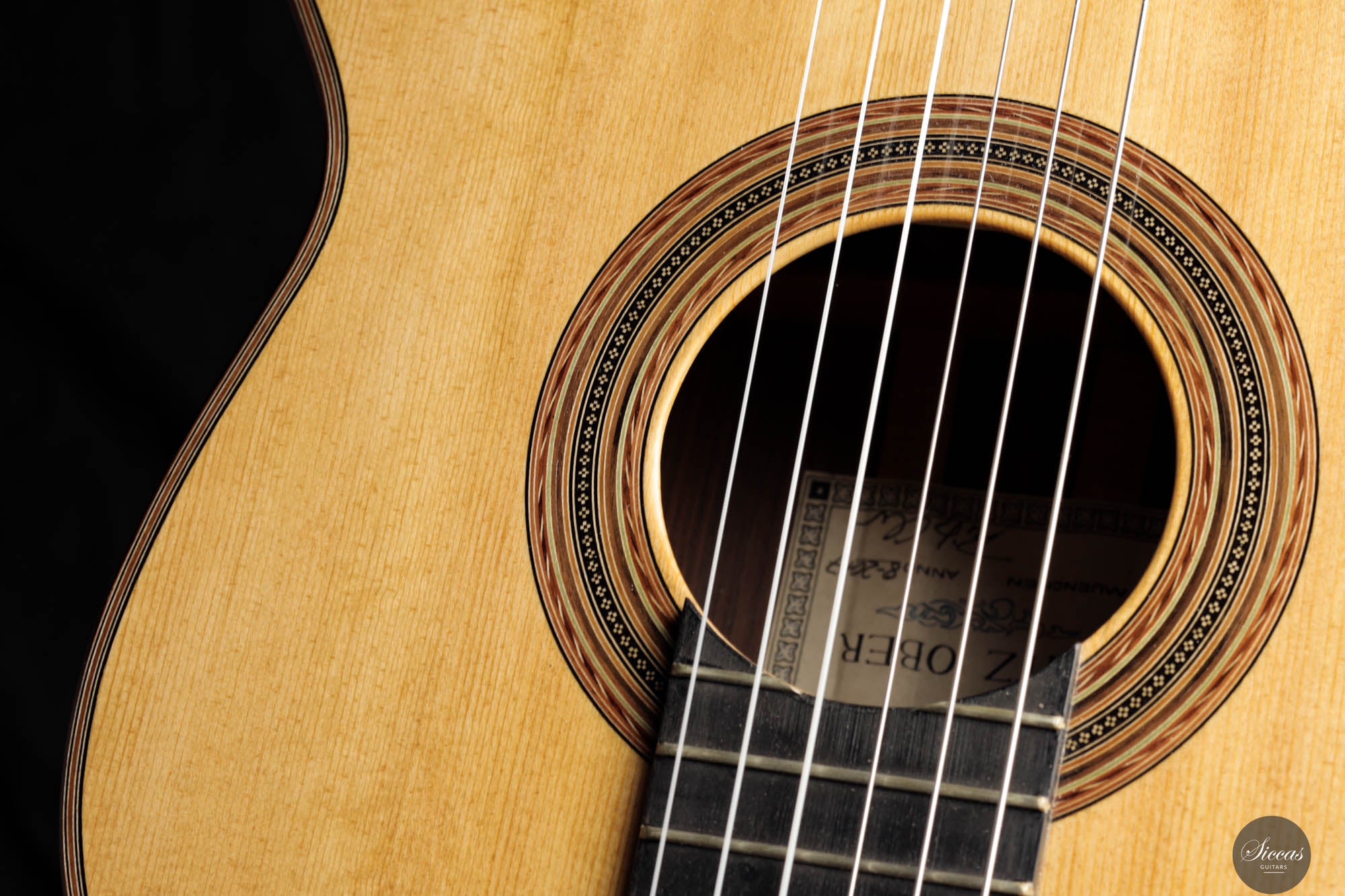 Diese Fritz Ober Gitarre zu spielen, ist an sich schon ein Erlebnis und bietet eine außergewöhnliche Balance zwischen verschiedenen Tönen sowie eine Leichtigkeit des Spiels, die emblematisch für Obers Designphilosophie ist. Bekannt für die Herstellung einiger der herausragendsten deutschen Gitarren der jüngsten Zeit, hält diese Gitarre einen besonderen Platz als das letzte Werk von Fritz Obers herausragender Karriere inne, was ihr einen sentimentalen Wert zusätzlich zu ihrer inhärenten Qualität verleiht. Diese Gitarre zu besitzen bedeutet, ein Stück Musikgeschichte in Händen zu halten, ein Zeugnis für das anhaltende Erbe deutscher Handwerkskunst im Bereich klassischer Gitarren. Es ist nicht nur der Erwerb eines hochwertigen Instruments, sondern auch die Umarmung einer Tradition, die über Jahrzehnte akribisch verfeinert und durch die Hände von Musikern bewahrt wurde, die das unvergleichliche Handwerk von Fritz Ober erkennen und schätzen.