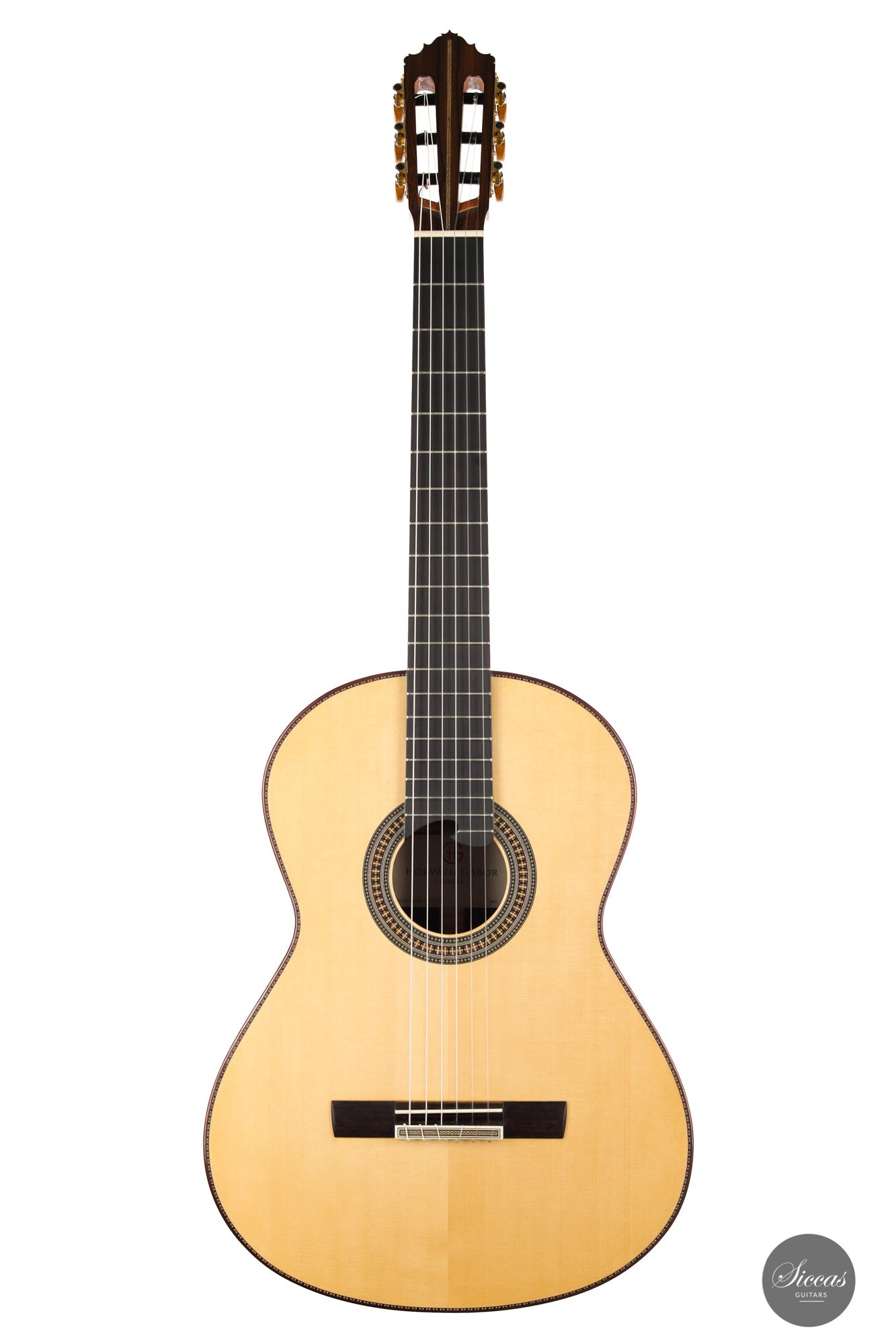 Die klassische Gitarre mit ihren weichen Nylonsaiten und ihrem charakteristischen Timbre ist zum Symbol der Kammermusik, der spanischen Tradition und des Konzertrepertoires geworden. Ihre moderne Form prägte Antonio de Torres im 19. Jahrhundert, indem er den Standard für Korpus, Fächerbeleistung und die 65-Zentimeter-Mensur setzte, die bis heute verwendet werden. Instrumente dieser Kategorie eröffnen eine reiche Palette von den feinen romantischen Miniaturen Tárregas bis zu den majestätischen Konzerten Rodrigos. Hier finden Sie Gitarren, die historische Kontinuität bewahren und zugleich zu neuen Interpretationen anregen.