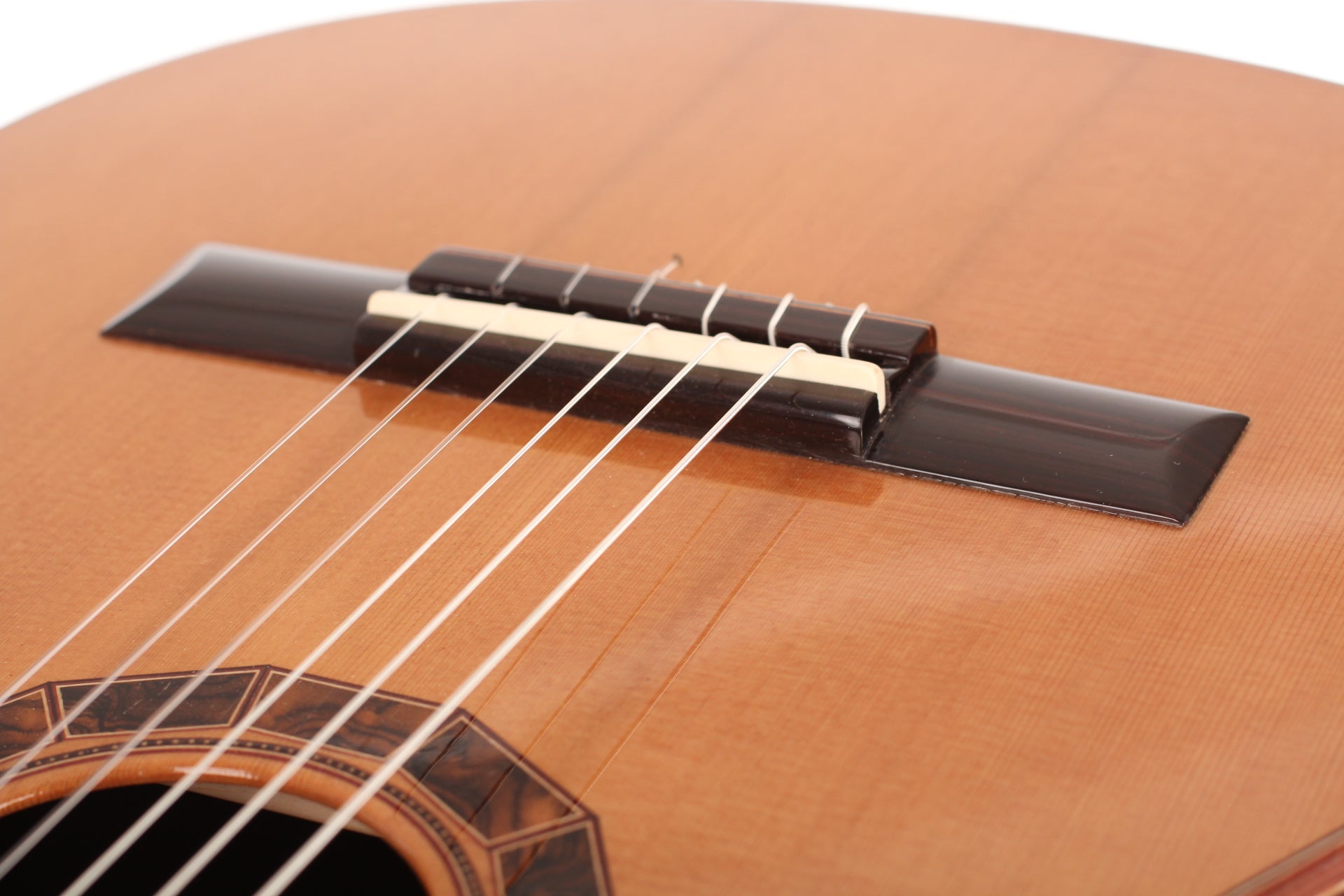 Gitarrenbauer: Andrea TacchiBaujahr: 1994Decke: CedarBoden und Zargen: Indian rosewoodDeckenoberfläche: NitrocelluloseKorpusoberfläche: NitrocelluloseLuftresonanz: F sharp / GGewicht (g): 1630Mechaniken: FusteroZustand: Excellent