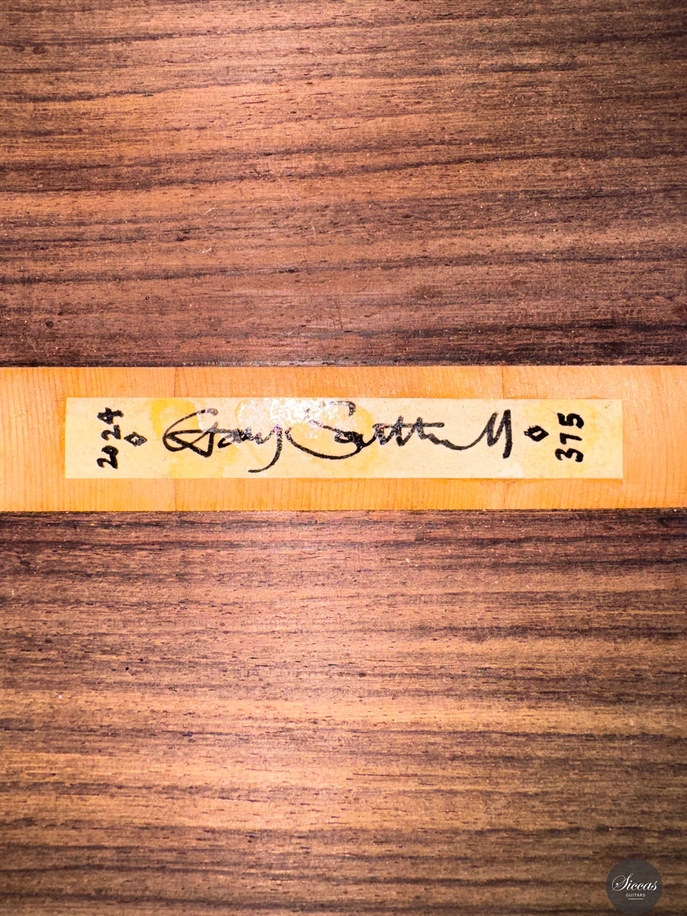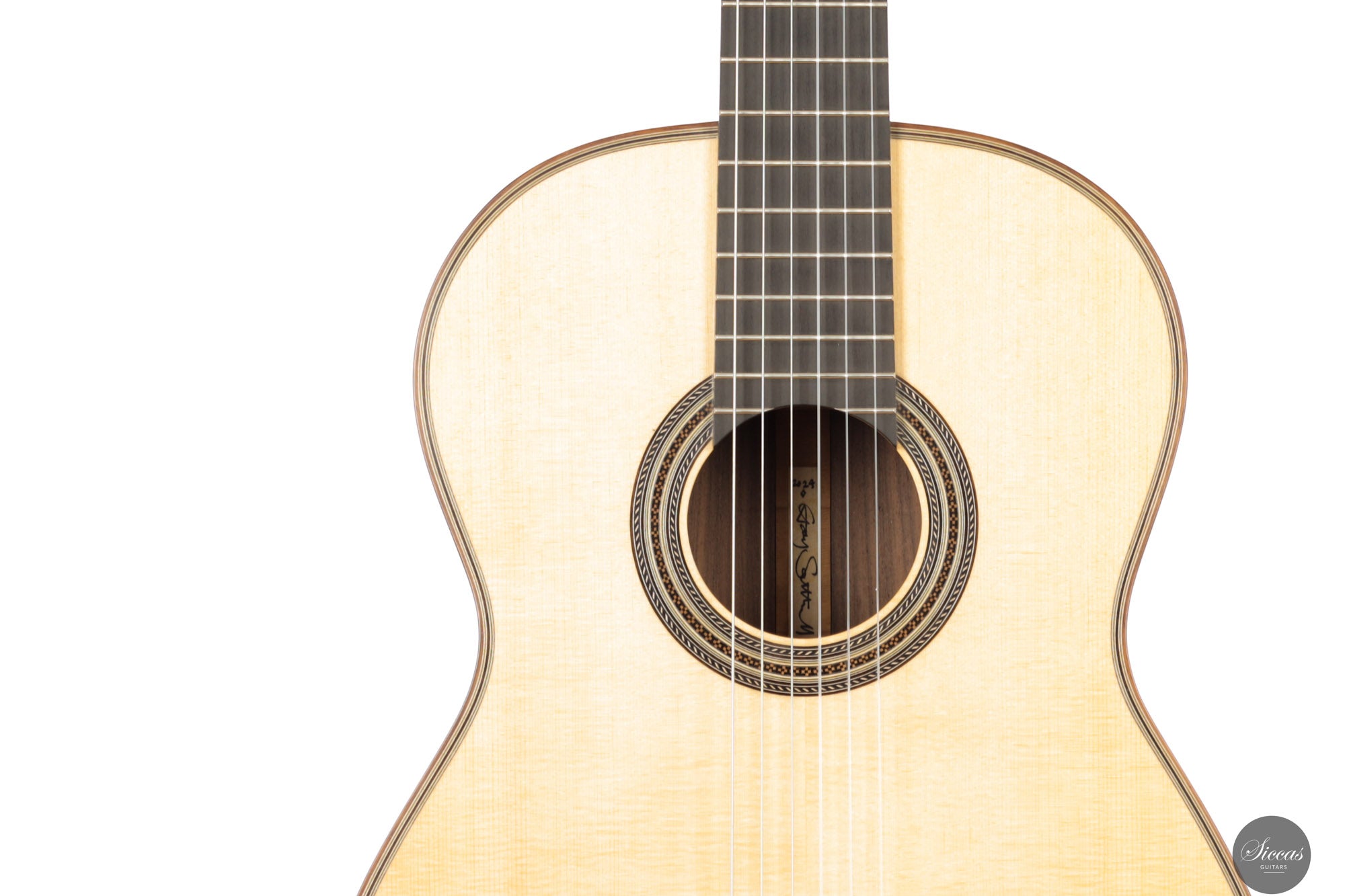Diese Gitarre aus dem Jahr 2024 mit der Seriennummer 375 basiert auf einem Instrument berühmter deutscher Gitarrenbauer aus den 1940er-Jahren, das von Julian Bream gegen Ende seiner internationalen Konzertkarriere gespielt und aufgenommen wurde. Gary Southwell entwickelte dieses Modell in enger Zusammenarbeit mit Julian Bream.
