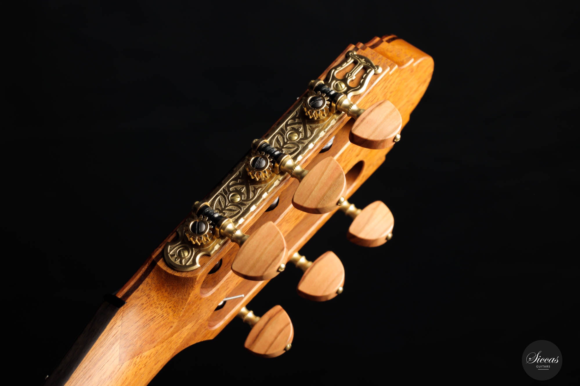 Die klassische Gitarre mit ihren weichen Nylonsaiten und ihrem charakteristischen Timbre ist zum Symbol der Kammermusik, der spanischen Tradition und des Konzertrepertoires geworden. Ihre moderne Form prägte Antonio de Torres im 19. Jahrhundert, indem er den Standard für Korpus, Fächerbeleistung und die 65-Zentimeter-Mensur setzte, die bis heute verwendet werden. Instrumente dieser Kategorie eröffnen eine reiche Palette von den feinen romantischen Miniaturen Tárregas bis zu den majestätischen Konzerten Rodrigos. Hier finden Sie Gitarren, die historische Kontinuität bewahren und zugleich zu neuen Interpretationen anregen.