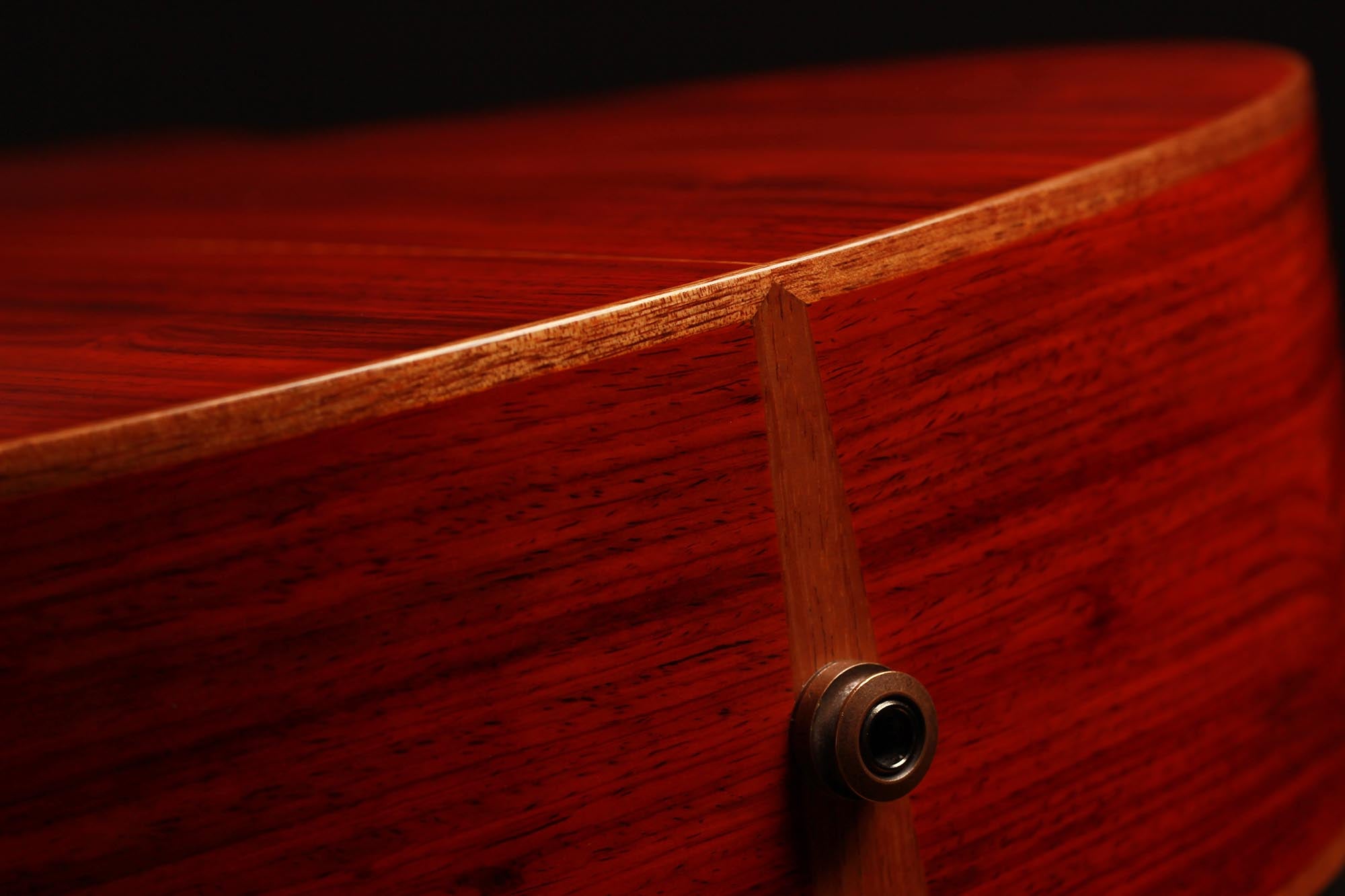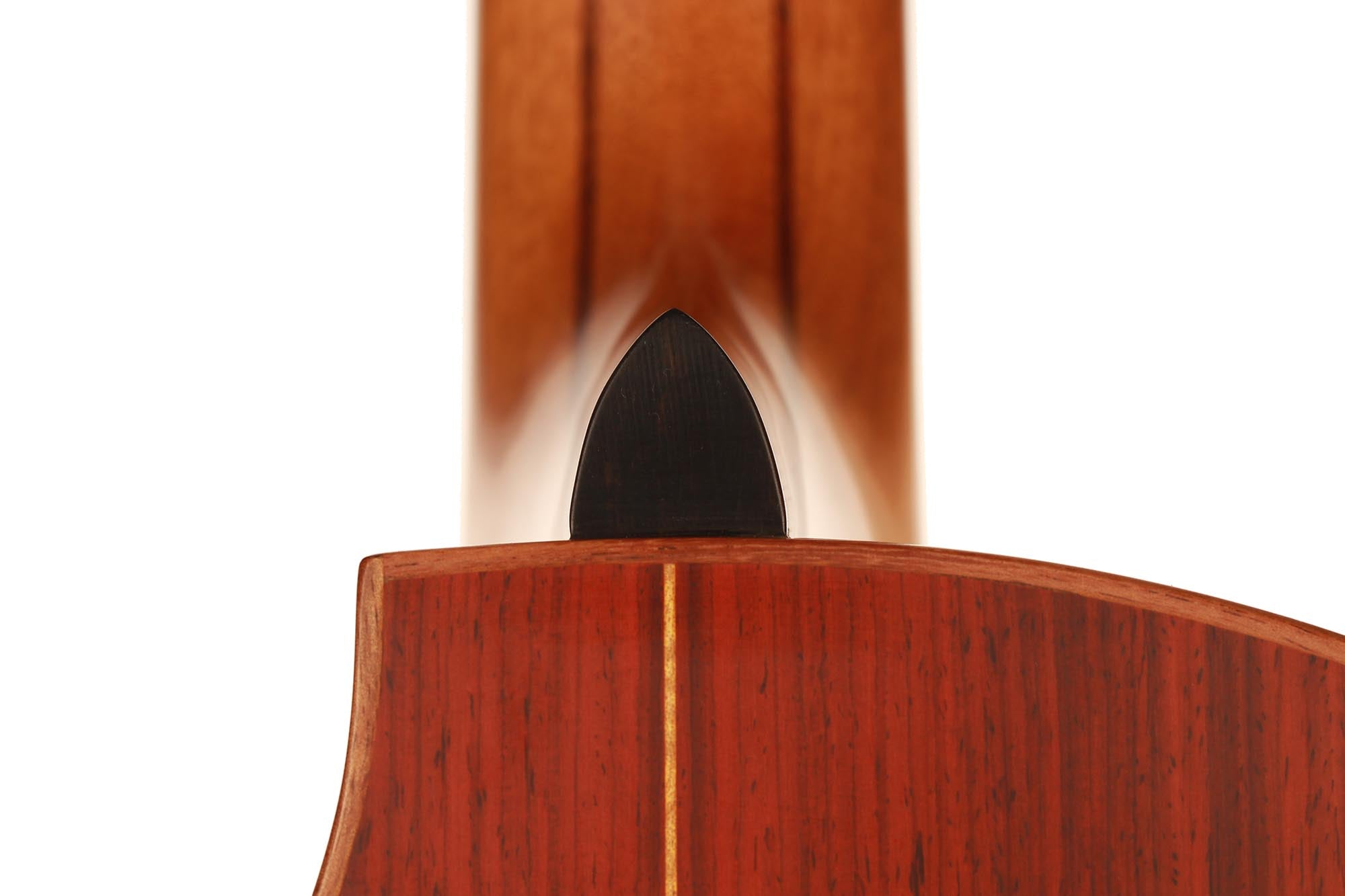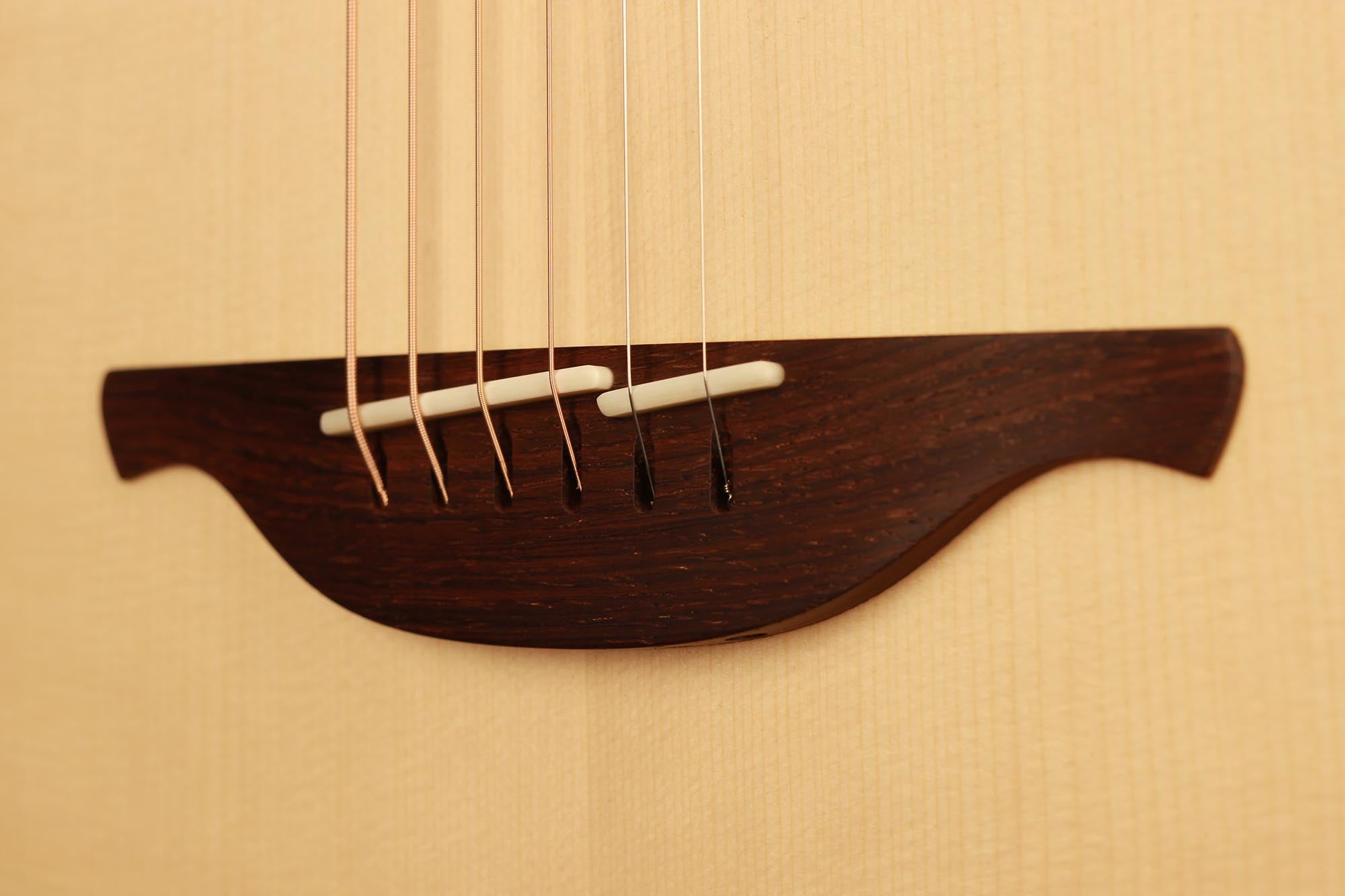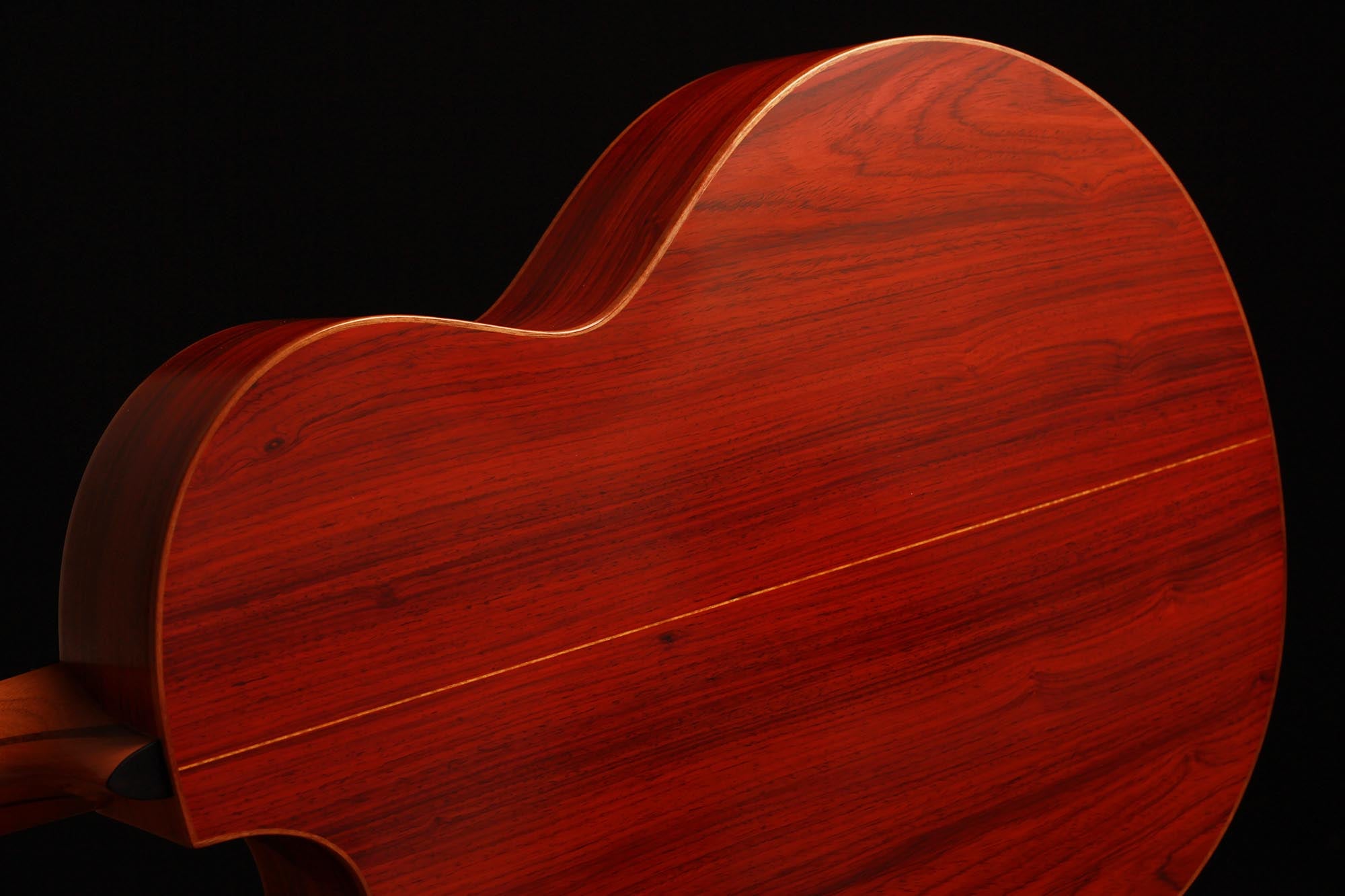 The 12 Fret model is based on the S size body. Whilst the scale length (630mm) remains the same as the regular 14 fret S model, the bridge has been relocated and the soundbox uniquely voiced to create a guitar that offers something different to anything else in the Lowden range. The location of the bridge on the soundboard increases the guitars midrange punch and despite its more compact feel, the 12 Fret offers projection and vibrancy more akin to a guitar with a much larger body.