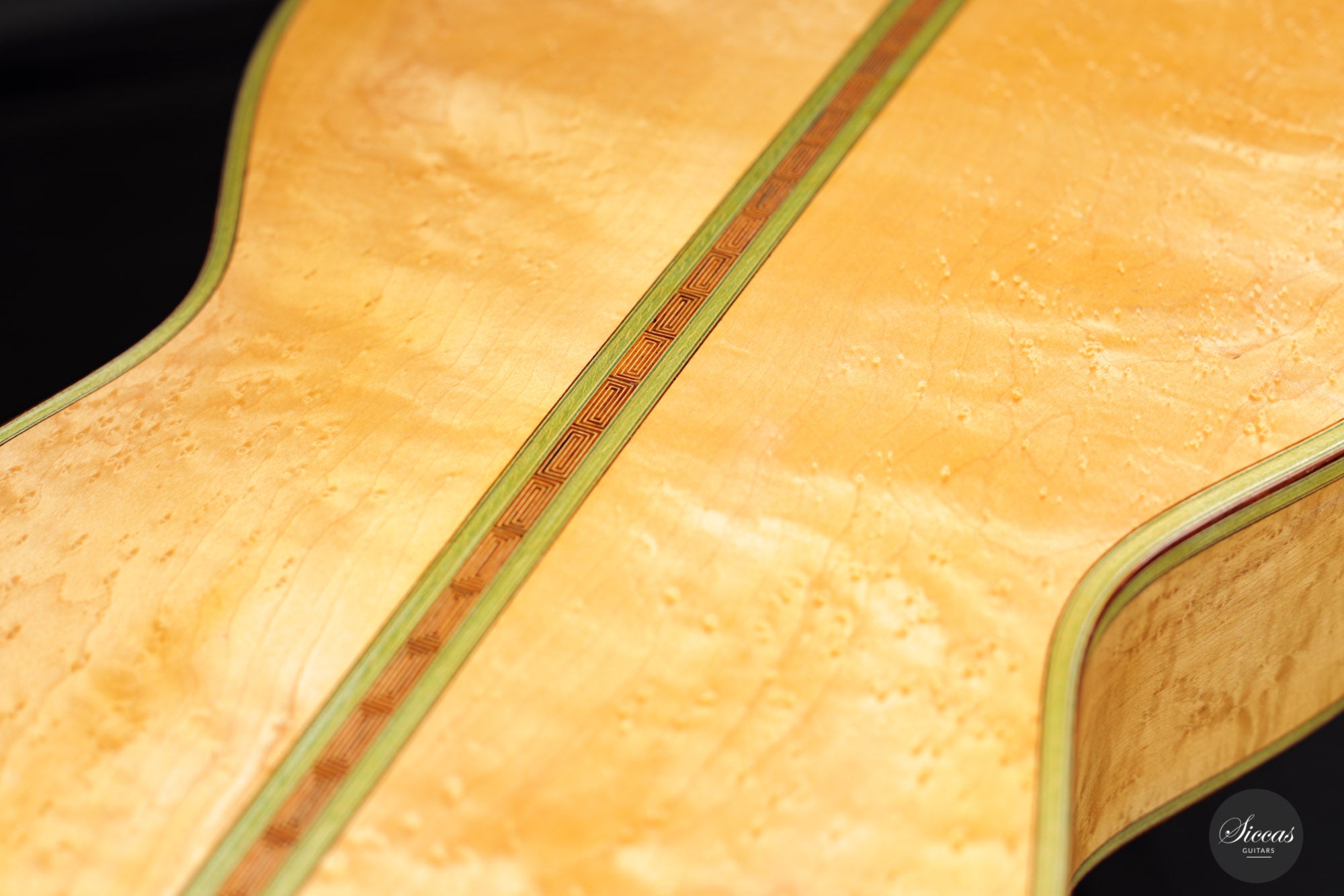 Diese Gitarre hat einen unglaublich dichten und fokussierten Klang, mit gleichmäßigem Sustain und reichlich Obertönen. Diese Eigenschaften sind bei einer Ahorngitarre dieser Größe und mit einem Tornavoz wirklich überraschend, aber man muss sagen, dass dieses Instrument eine Heldentat ist! Sie spielt sich tadellos und entwickelt einen charmanten, eleganten Ton. Chapeau!