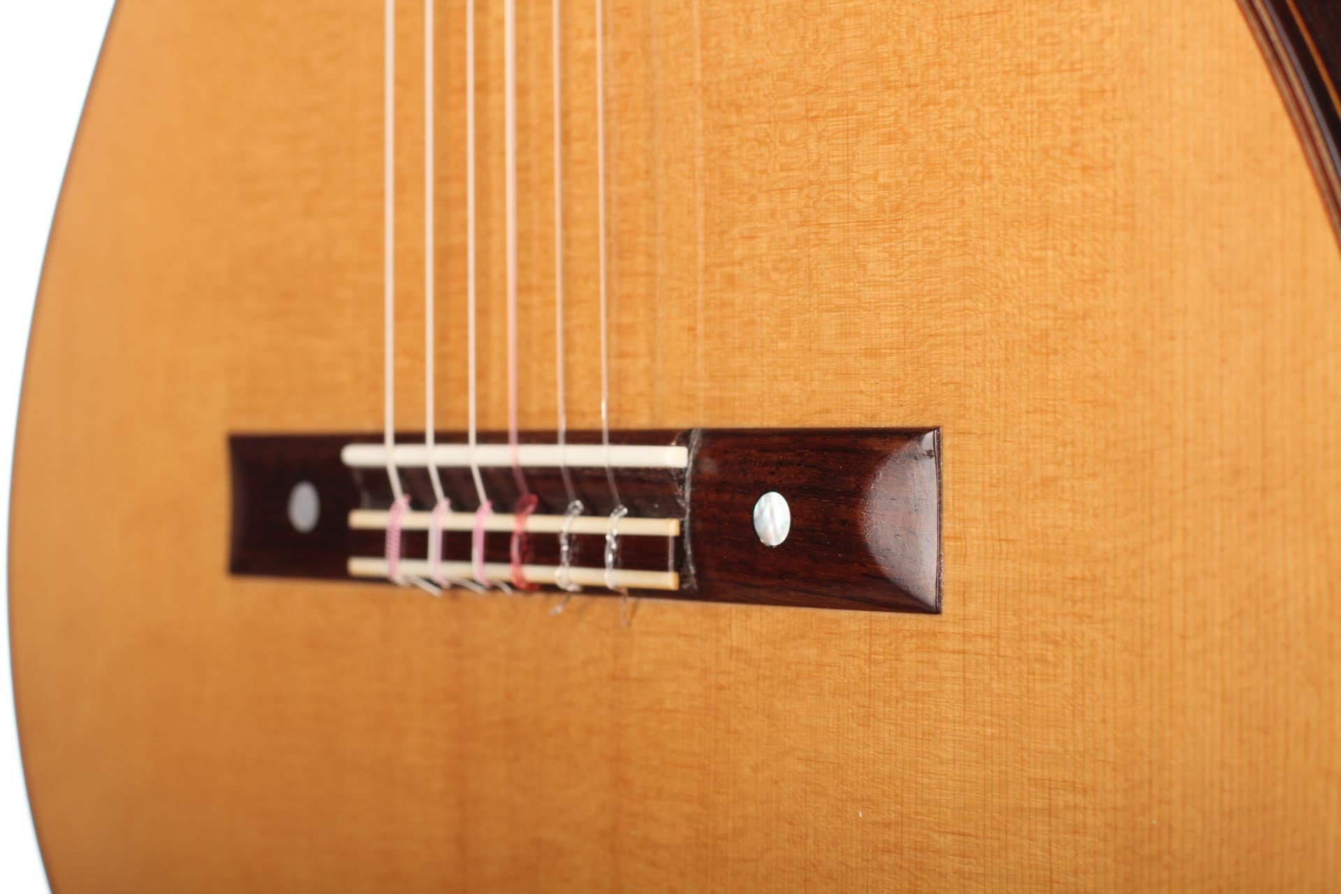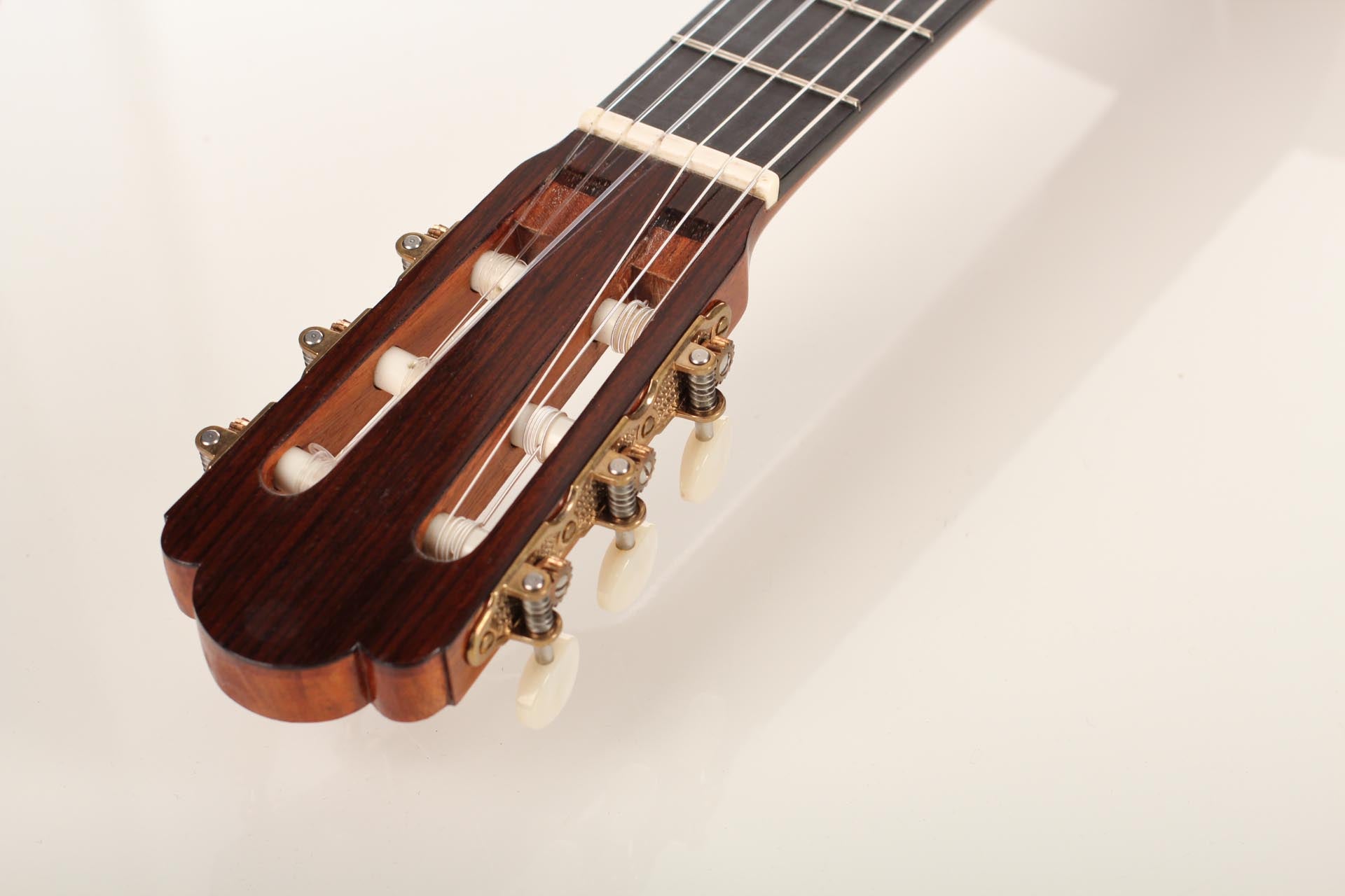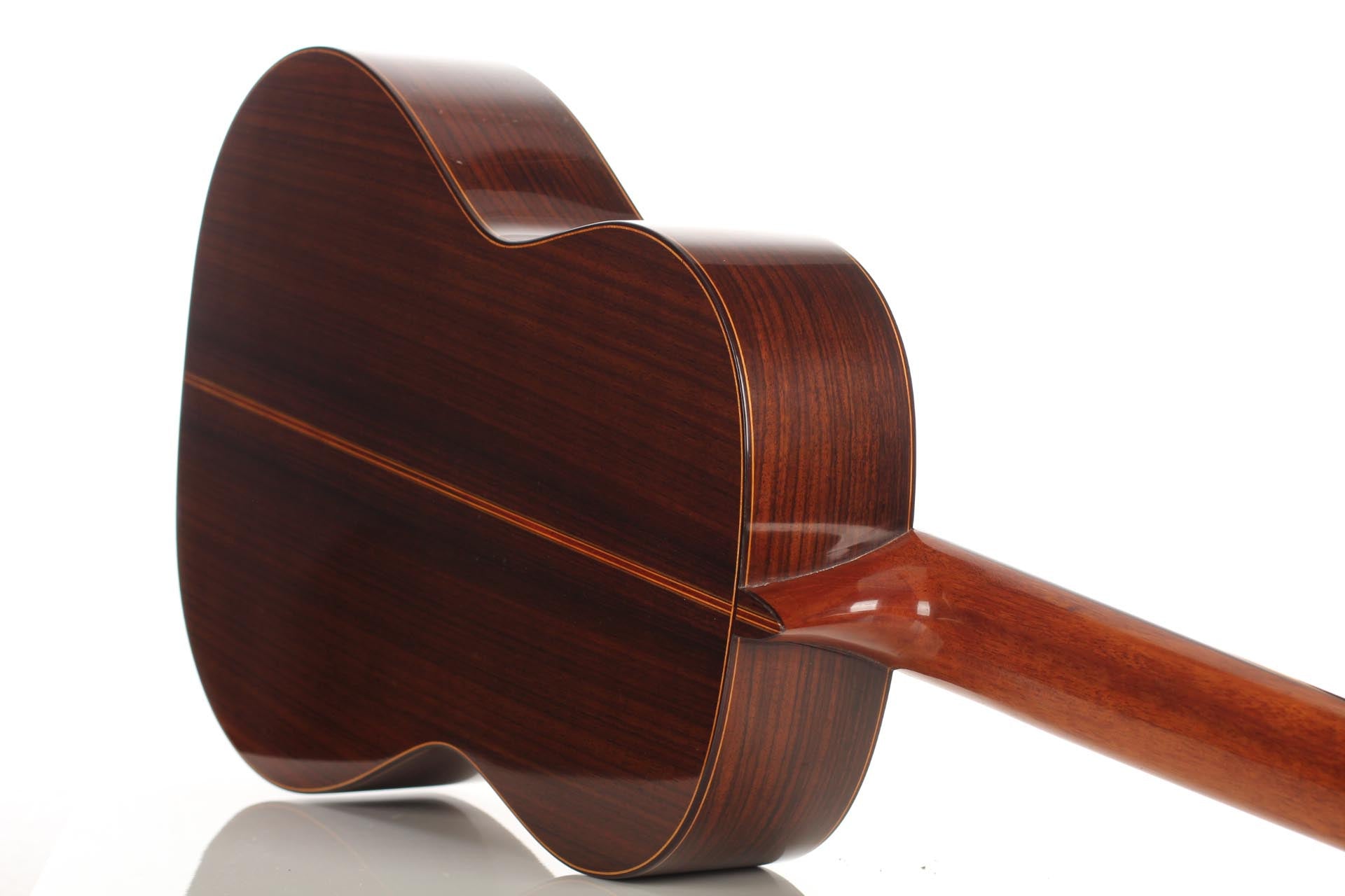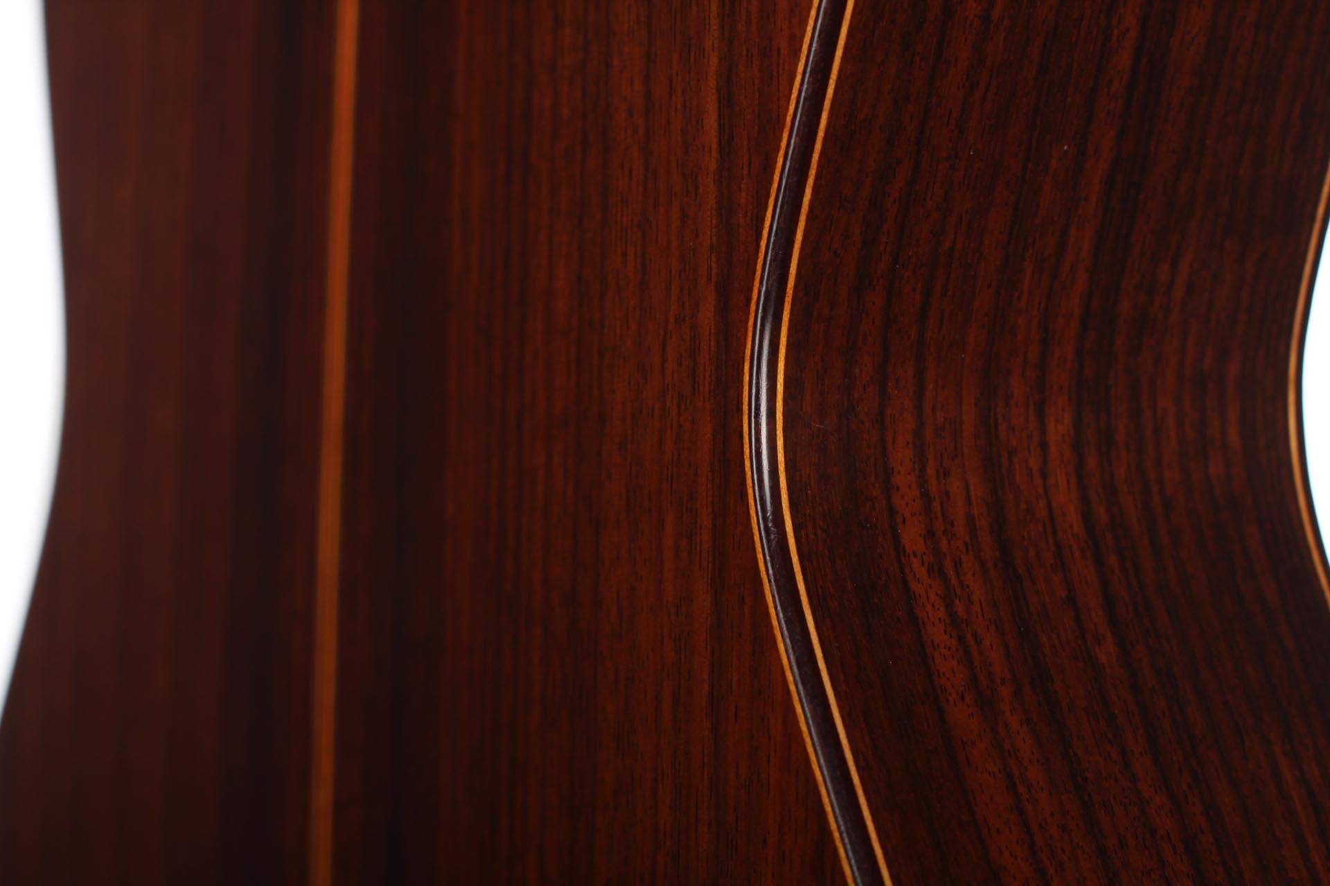 This beautiful instrument was made in 2008 and has a gorgeous spruce top and Indian rosewood back and sides. The guitar has a marvelously mellow and lovely sound. The basses and mids have a warm singing touch, underlining the bright trebles pleasantly. The instrument is in very good condition. The tuners are made by Sloane. A Hiscox Pro II hardshell case is included.