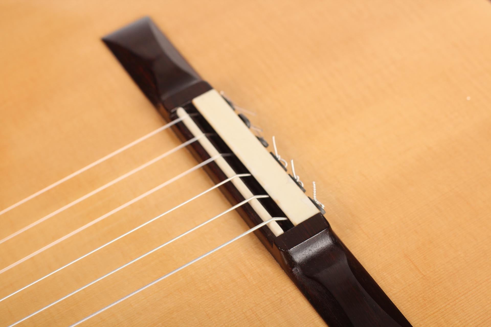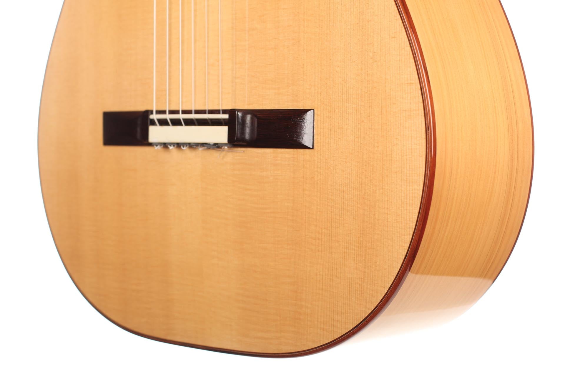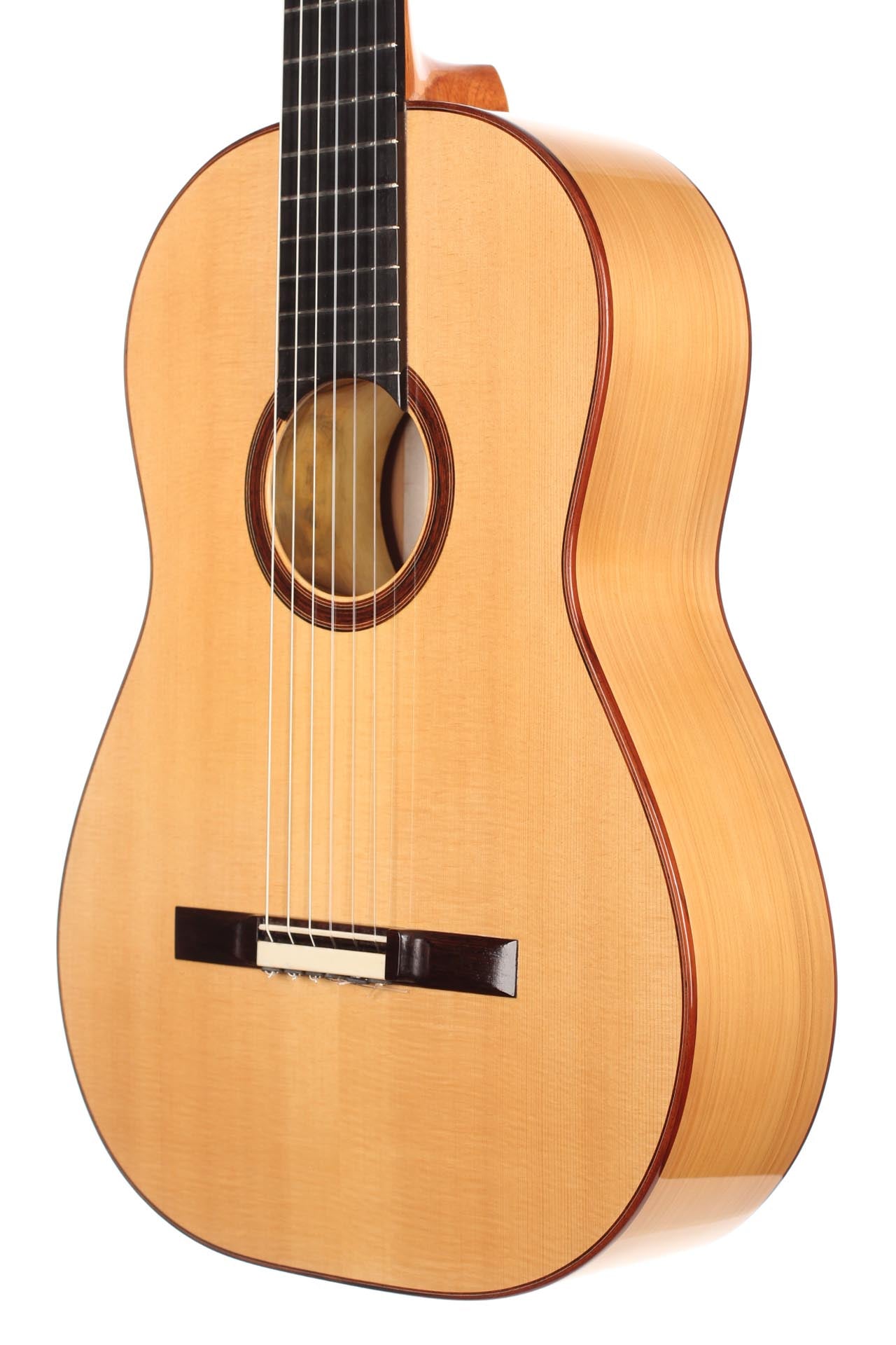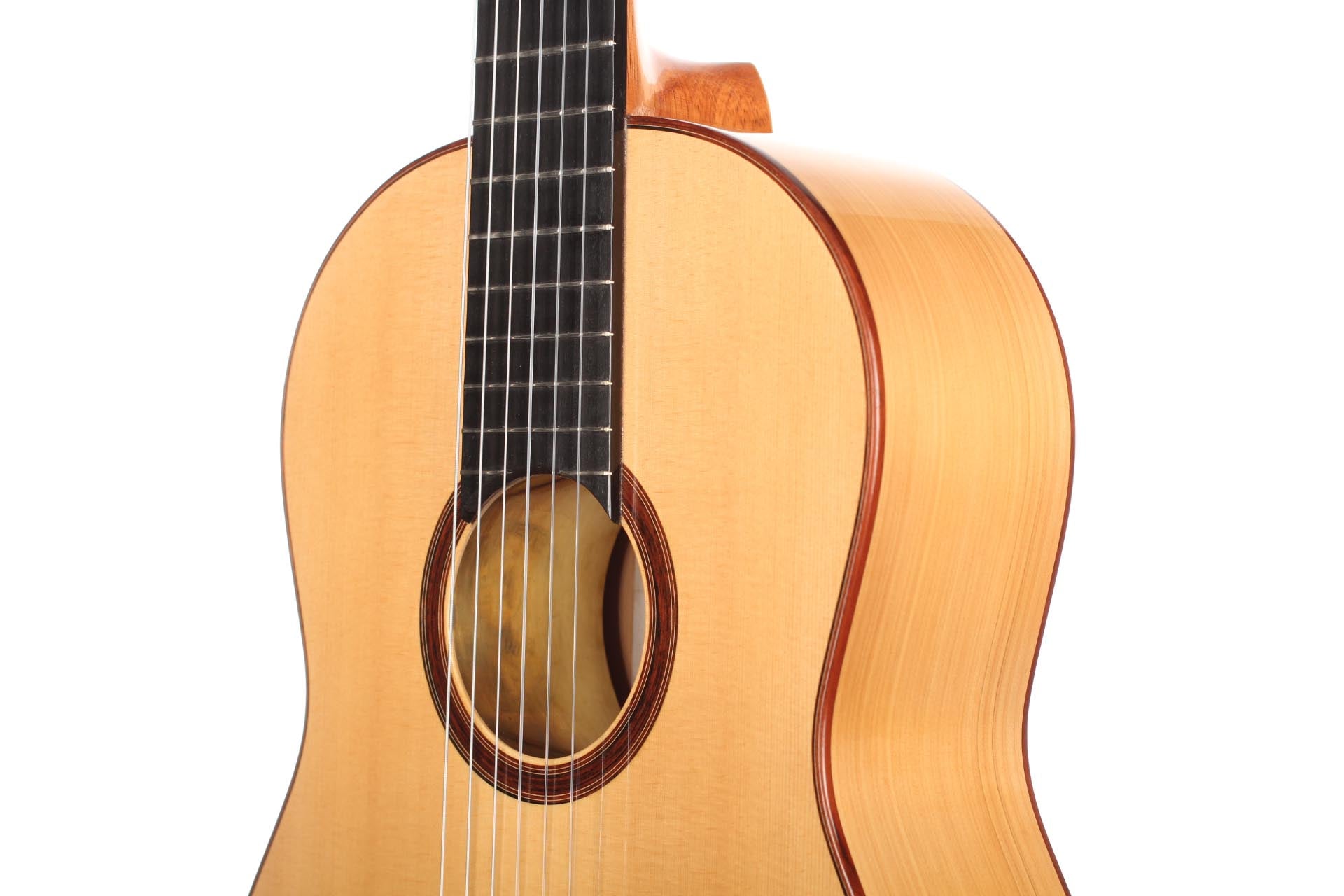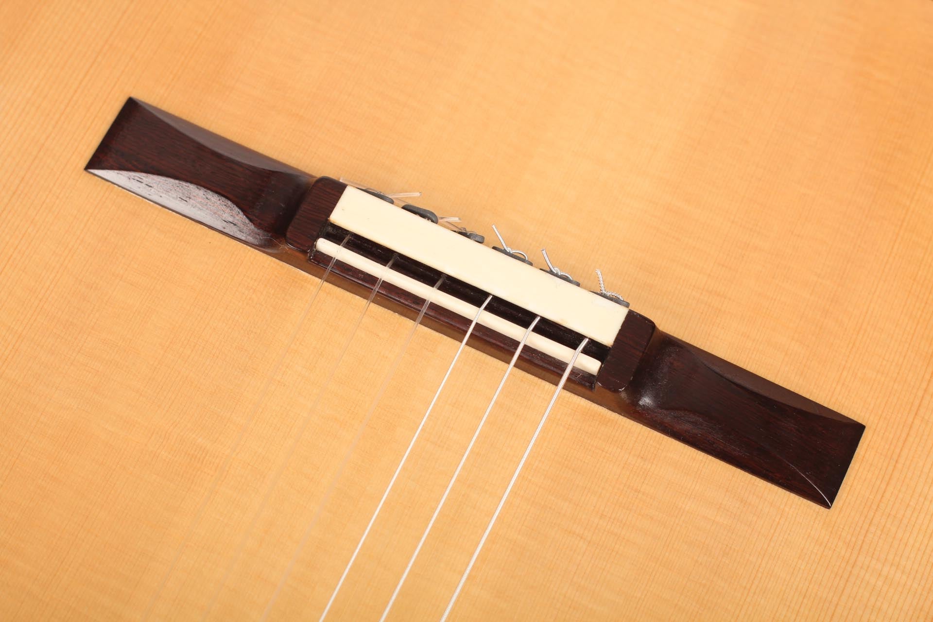This Torres copy from 2011 combines a gorgeous spruce top with beautiful cypress back and sides. The guitar has a marvelously mellow and lovely sound. Due to the Tornavoz the basses and mids have a warm singing touch, underlining the bright trebles pleasantly. The instrument is in very good condition. The tuners are made by Rodgers. A Hiscox Pro II hardshell case is included.