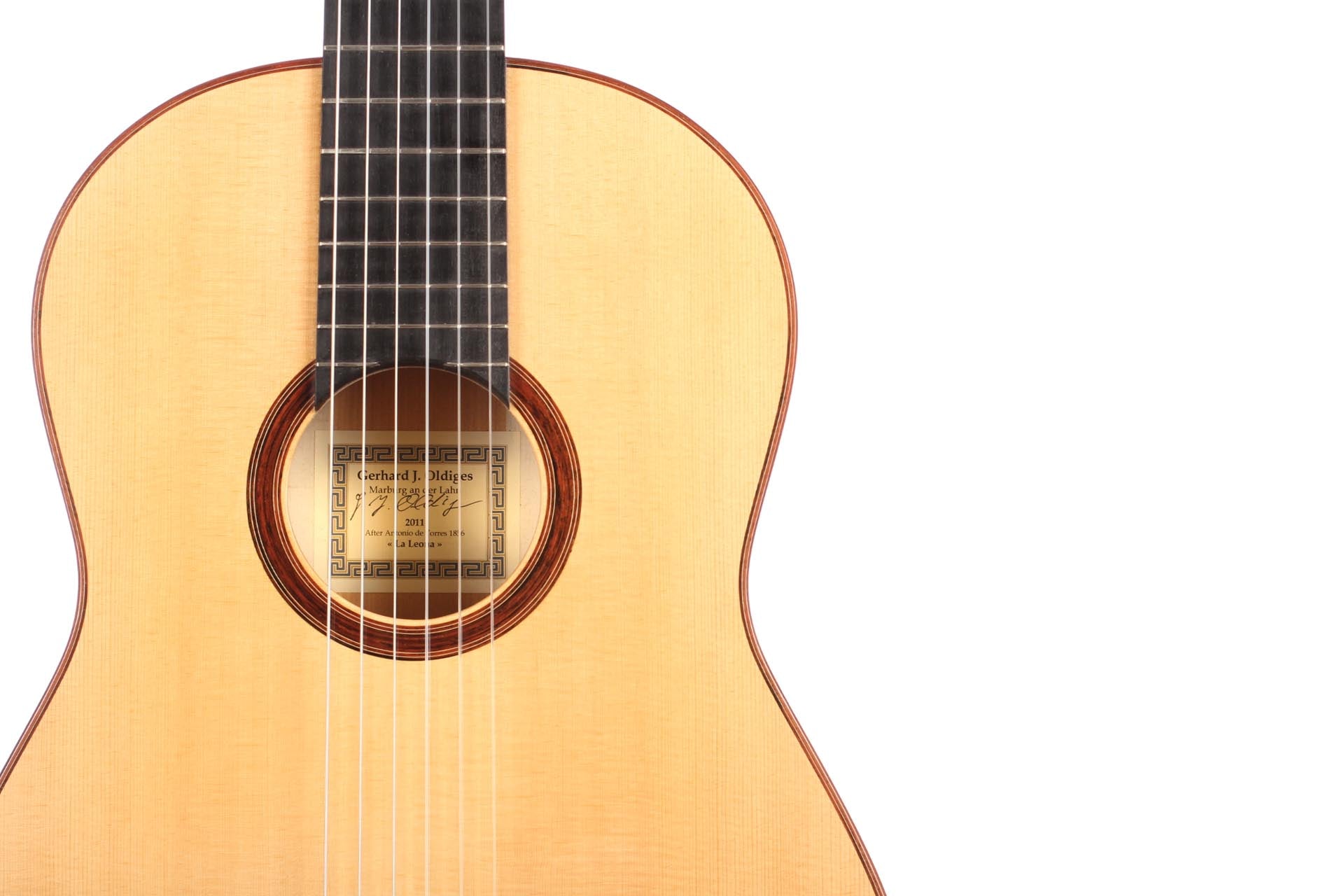 Gerhard Oldiges started to build guitars at the end of the 70s during his studies. After graduation, he started a two-year apprenticeship as a guitar maker. Afterwards he initially worked in a guitar repair workshop. In 1988 he attended a guitar building workshop with José Romanillos, who became his friend, and since 1996 Gerhard Oldiges has assisted several of the master’s workshops. He has concentrated on the history of Spanish guitar building and thus one of his specialties is the replication of old Spanish master instruments by Antonio de Torres, Vicente Arias, Manuel Ramírez and others.