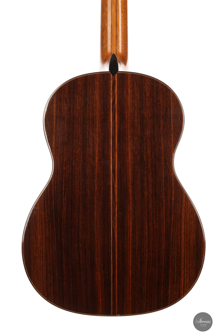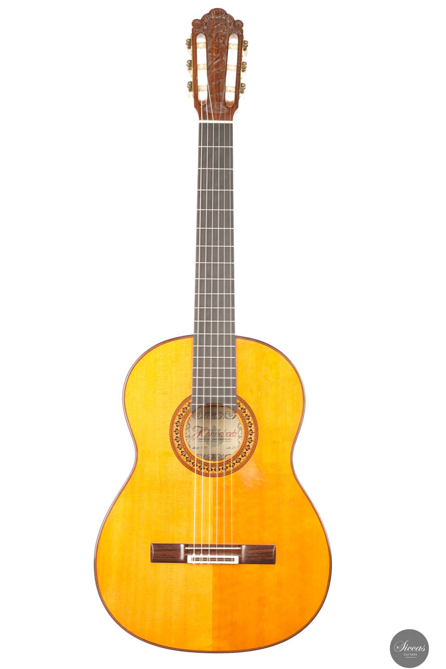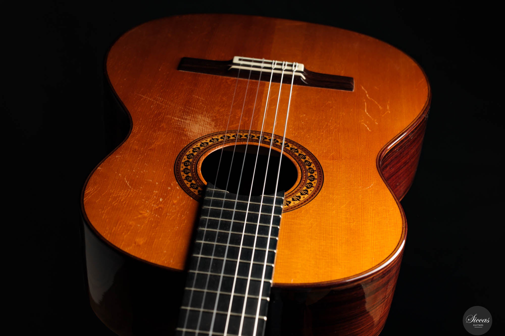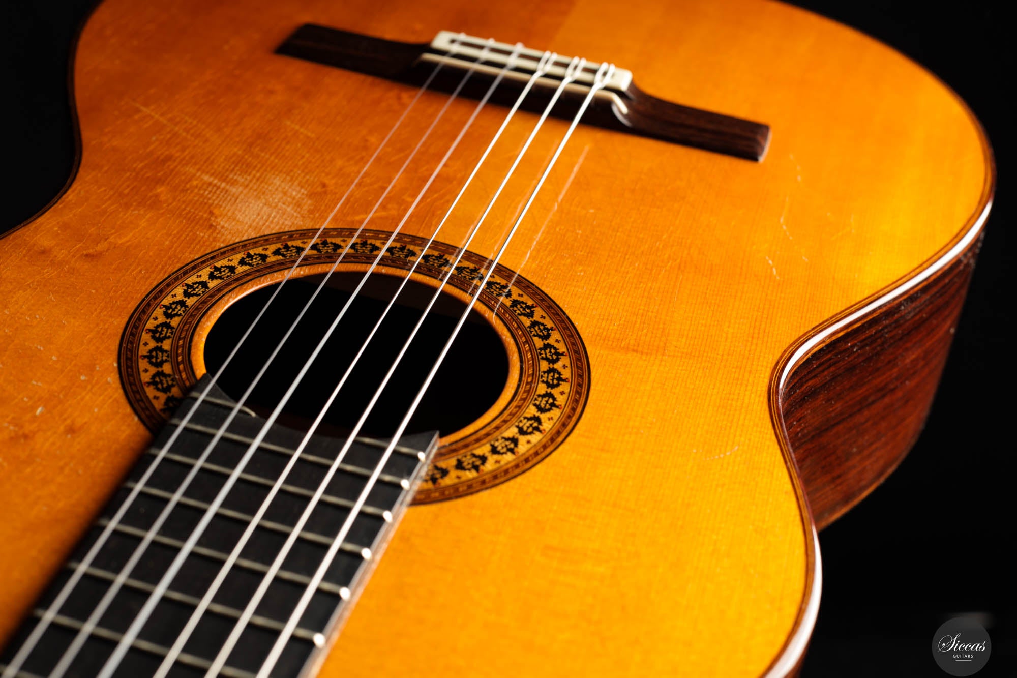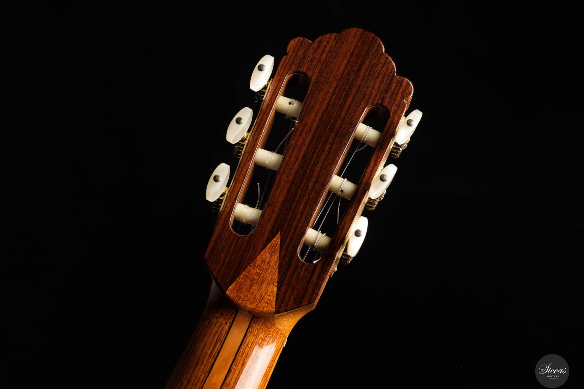 This beautiful guitar carries an amazing story. The intricately carved headstock was added several years after the guitar was originally built, crafted by a local woodcarver to fulfill the wish of the late owner, who was a close friend of Hannabach. This unique detail adds a personal and historical touch to an already remarkable instrument.