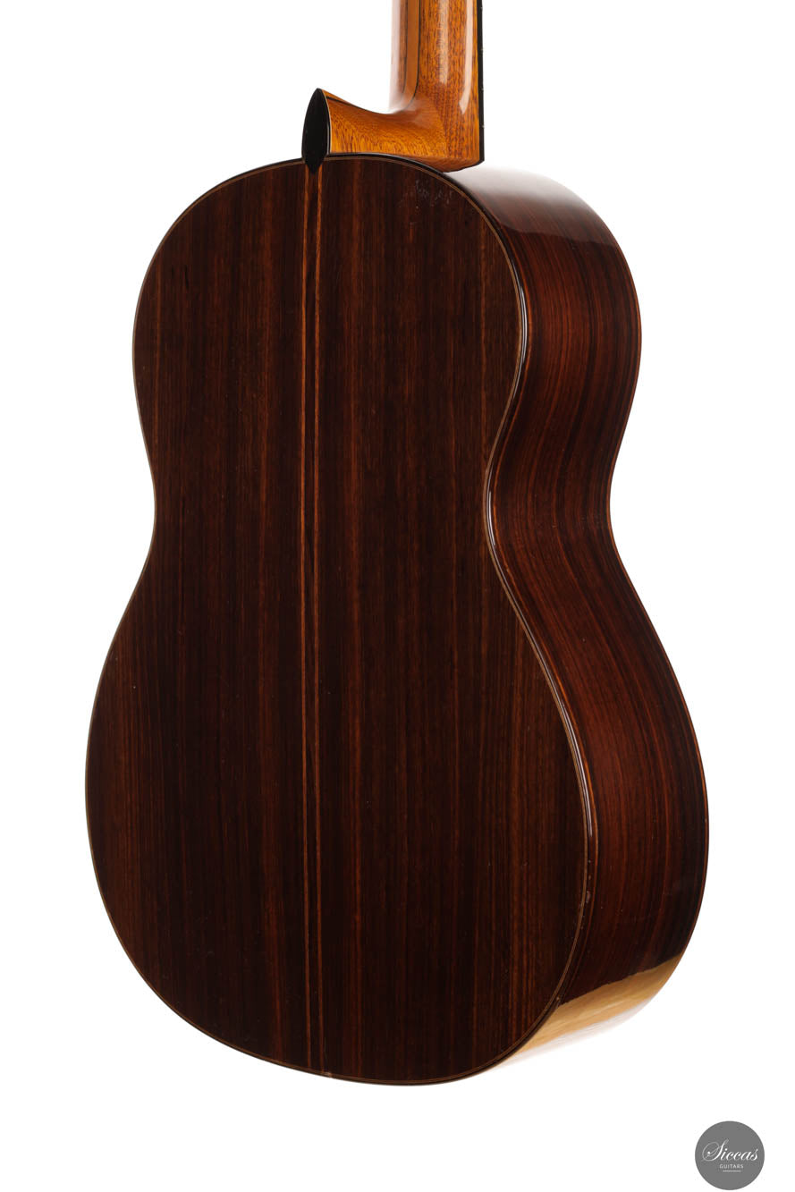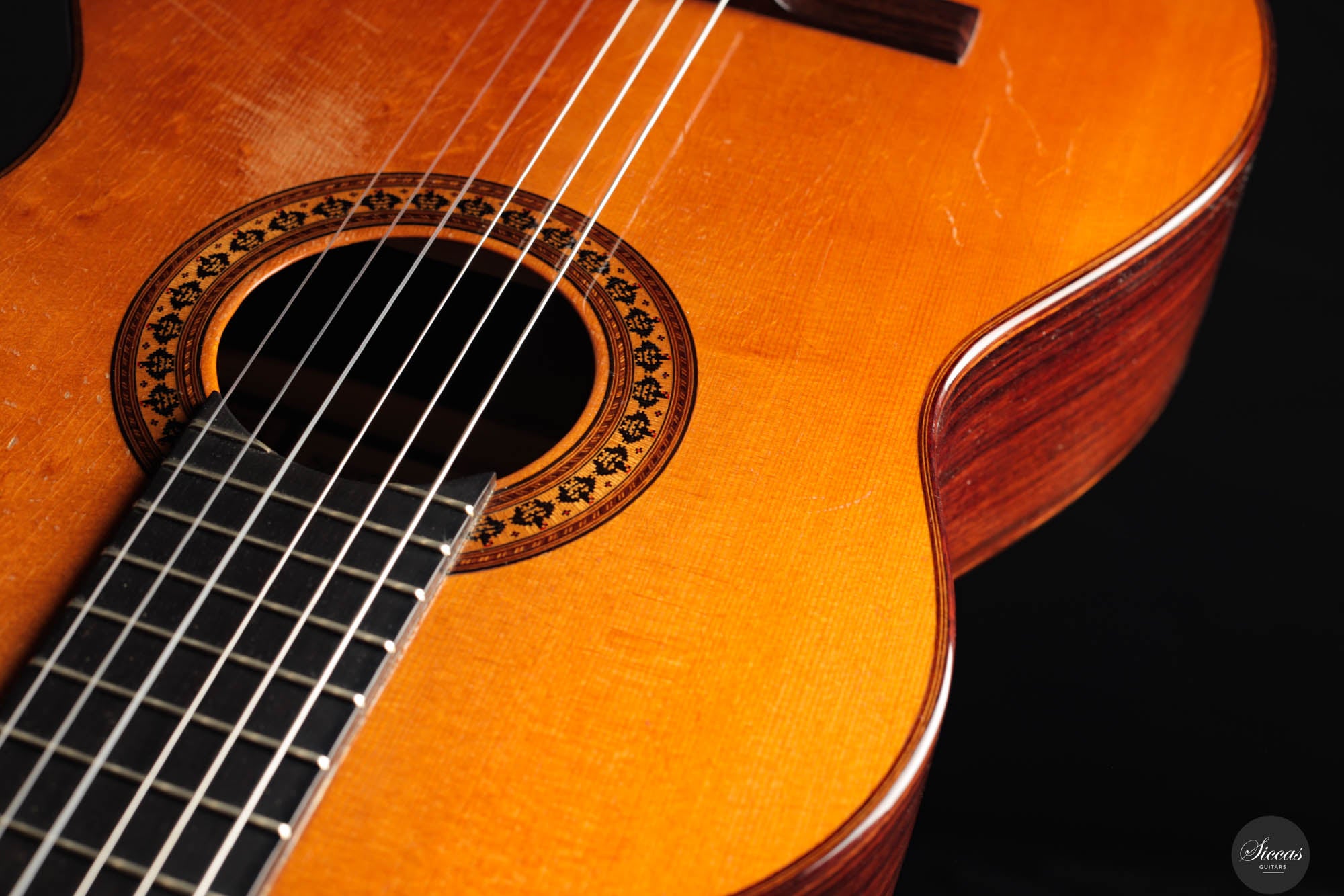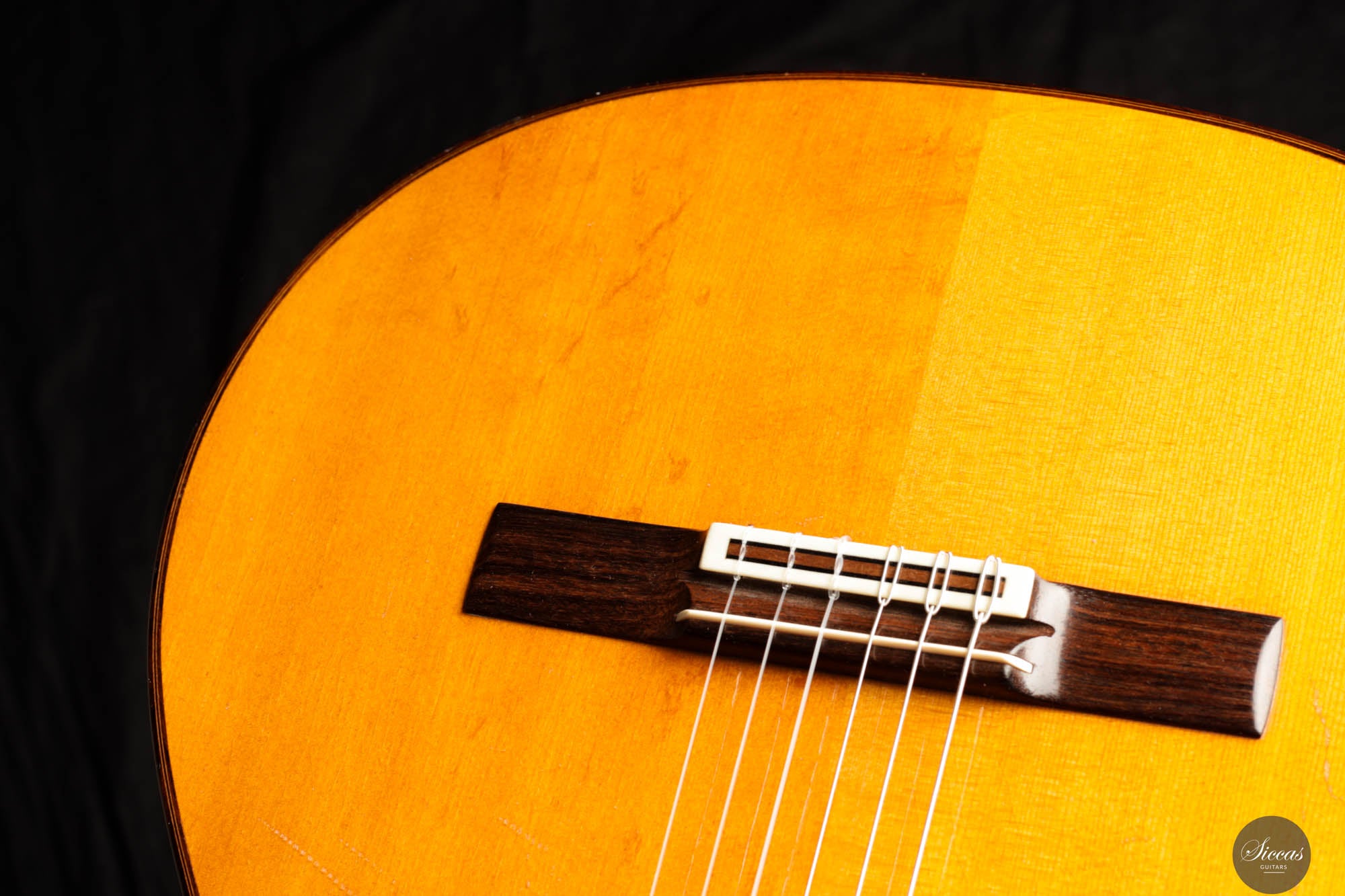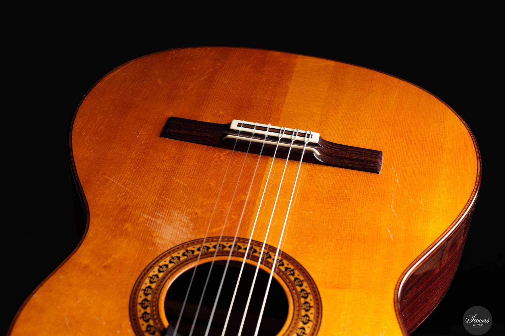 This beautiful guitar carries an amazing story. The intricately carved headstock was added several years after the guitar was originally built, crafted by a local woodcarver to fulfill the wish of the late owner, who was a close friend of Hannabach. This unique detail adds a personal and historical touch to an already remarkable instrument.
