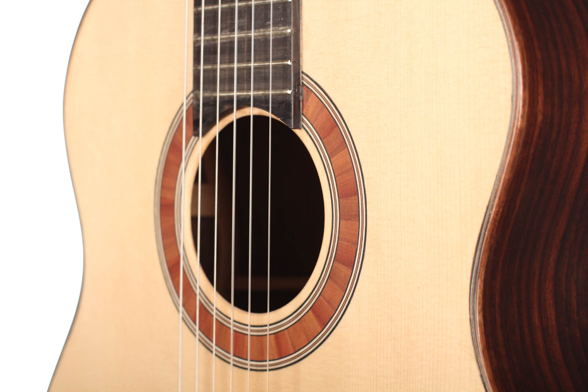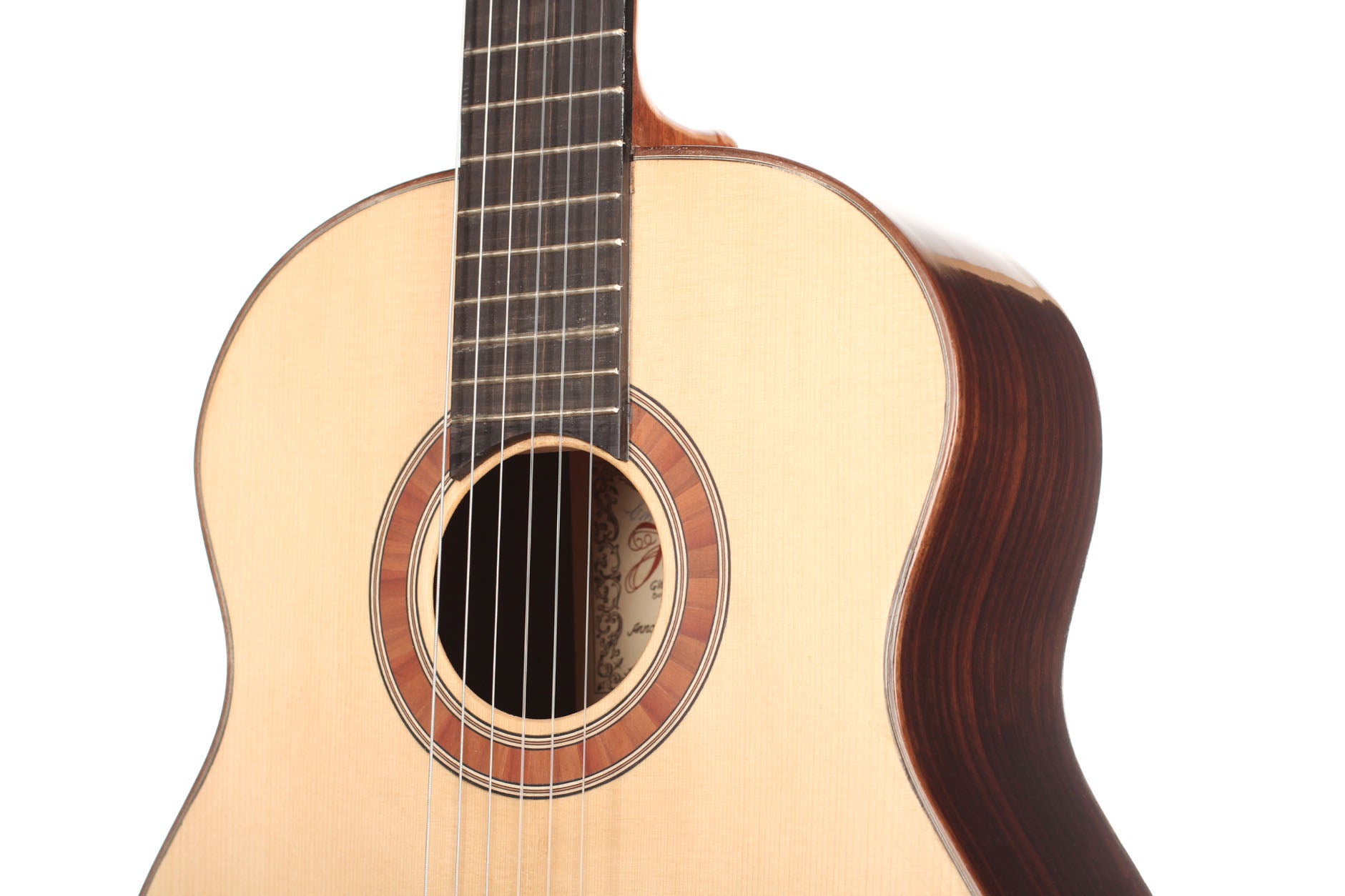 Die klassische Gitarre mit ihren weichen Nylonsaiten und ihrem charakteristischen Timbre ist zum Symbol der Kammermusik, der spanischen Tradition und des Konzertrepertoires geworden. Ihre moderne Form prägte Antonio de Torres im 19. Jahrhundert, indem er den Standard für Korpus, Fächerbeleistung und die 65-Zentimeter-Mensur setzte, die bis heute verwendet werden. Instrumente dieser Kategorie eröffnen eine reiche Palette von den feinen romantischen Miniaturen Tárregas bis zu den majestätischen Konzerten Rodrigos. Hier finden Sie Gitarren, die historische Kontinuität bewahren und zugleich zu neuen Interpretationen anregen.