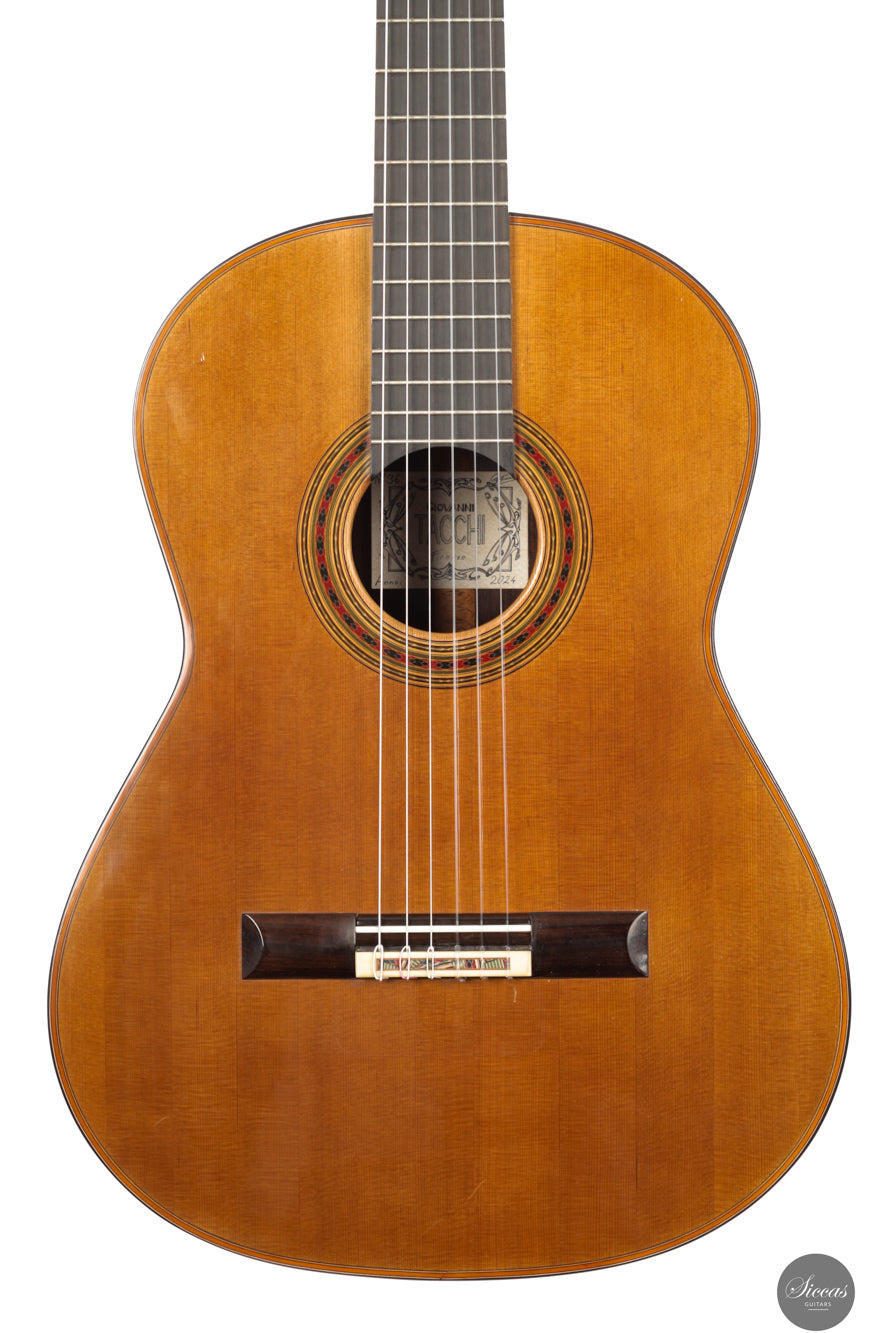 Giovanni Tacchi ist der Sohn des bekannten italienischen Gitarrenbauers Andrea Tacchi und wuchs inmitten der florentinischen Gitarrenbaukunst auf. Sein Vater pflegte enge Verbindungen zu Meistern wie Robert Bouchet und Daniel Friederich – Einflüsse, die Giovanni von Grund auf prägten. Heute hat er eine eigene, technisch und klanglich außergewöhnlich ausgereifte Handschrift entwickelt.