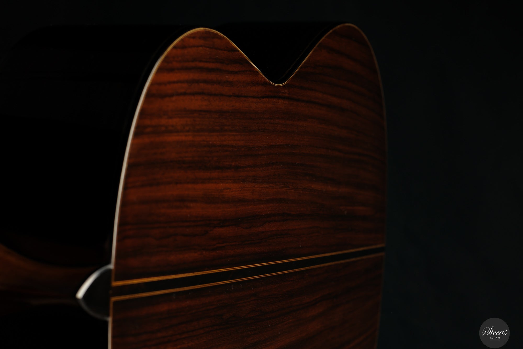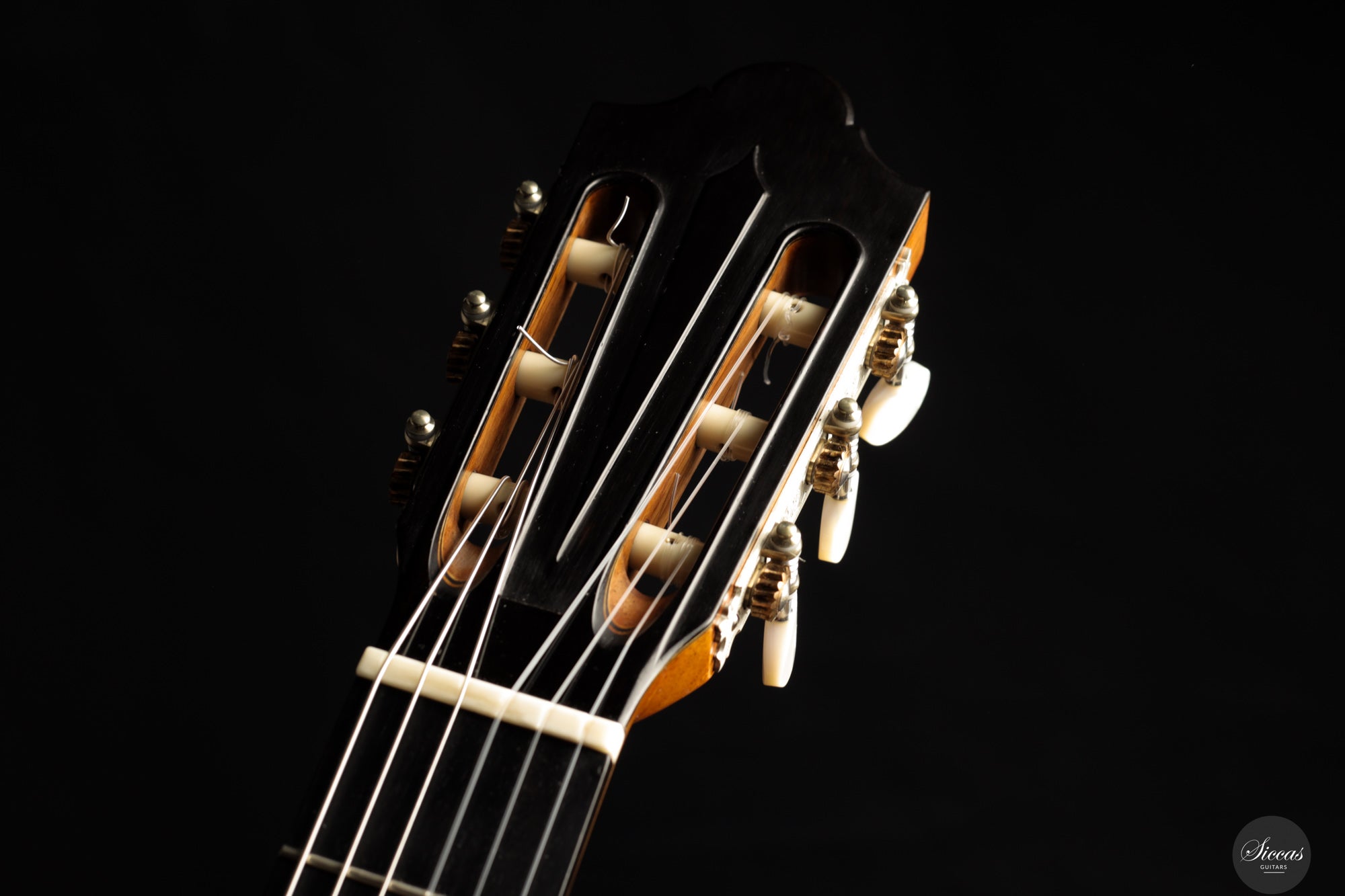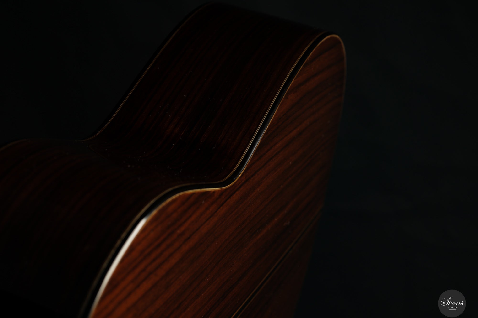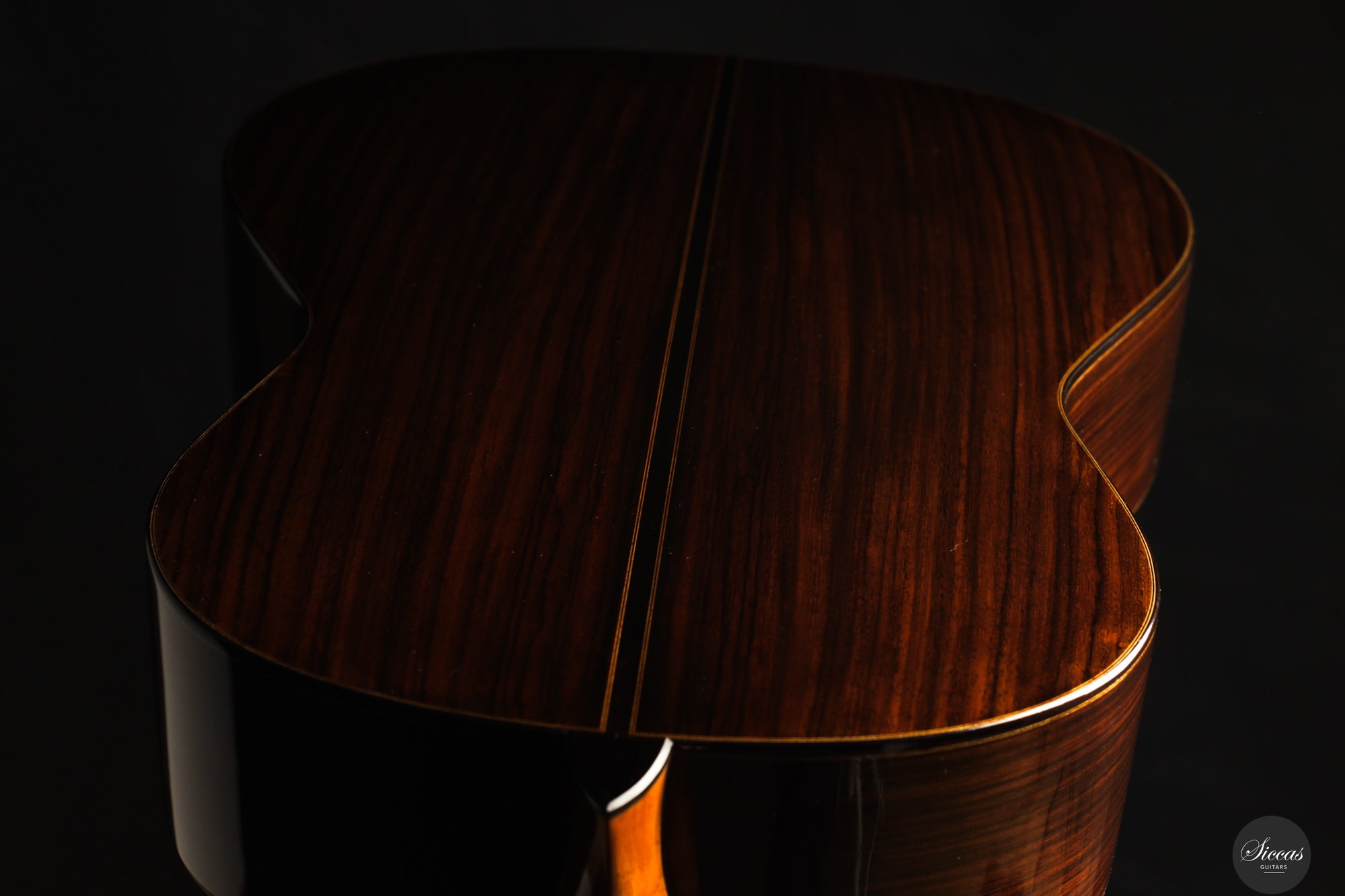 Die 2024 gebaute „Daniel Friederich“ No. 36 ist Ausdruck von Giovanni Tacchis tiefem Verständnis für Friederichs Klangästhetik und seiner Fähigkeit, diese auf eigenständige Weise weiterzuentwickeln. Das Instrument ist traditionell gebaut, mit Zederndecke und Boden sowie Zargen aus indischem Palisander. Die Mensur beträgt 650 mm, der Sattel misst 51,5 mm. Die Oberfläche ist klassisch mit Schellack poliert.