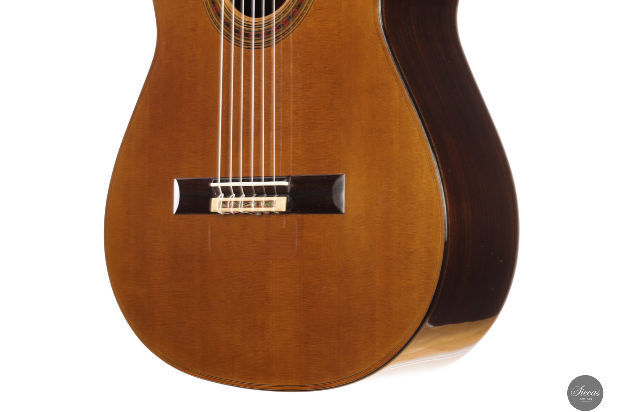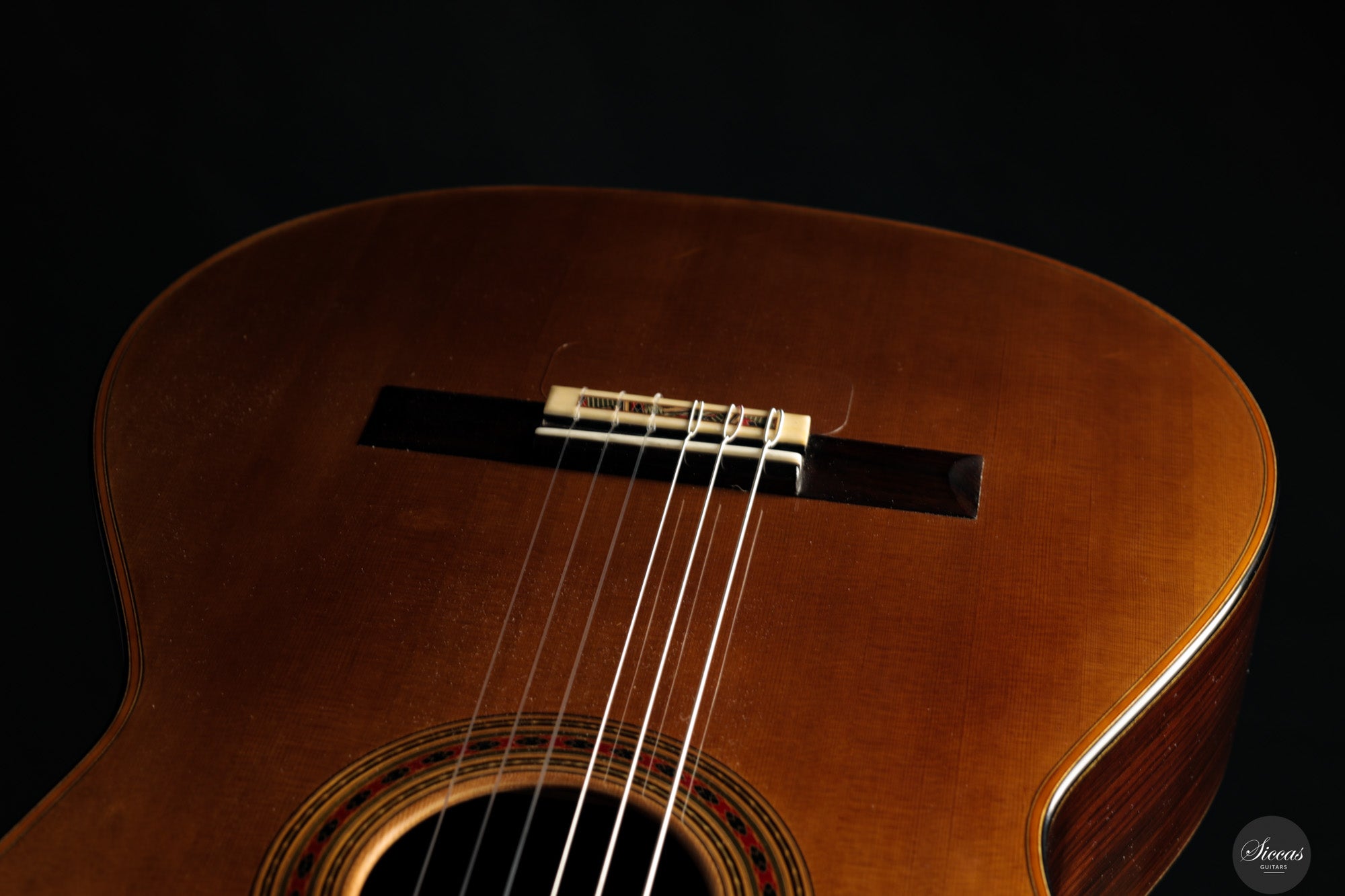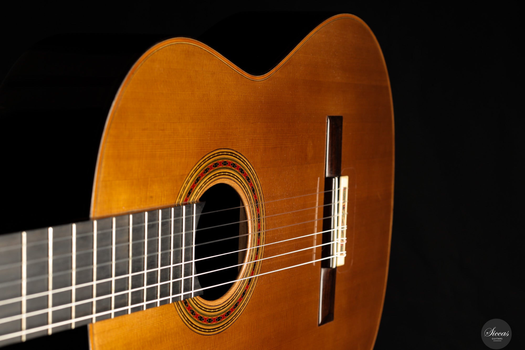 Klanglich überzeugt diese Gitarre mit kräftigen, stabilen Bässen und den gläsern klaren, singenden Höhen, die für Friederich‑Instrumente so charakteristisch sind. Die Stimmen trennen sich anmutig, jede Note trägt mühelos und entfaltet eine weite, resonante Klangfülle – wie es treffend heißt: „Jeder Ton klingt wie eine Kathedrale.“ Das Instrument reagiert unmittelbar auf den Anschlag und bietet feinste Ausdrucksmöglichkeiten über den gesamten Dynamikbereich.