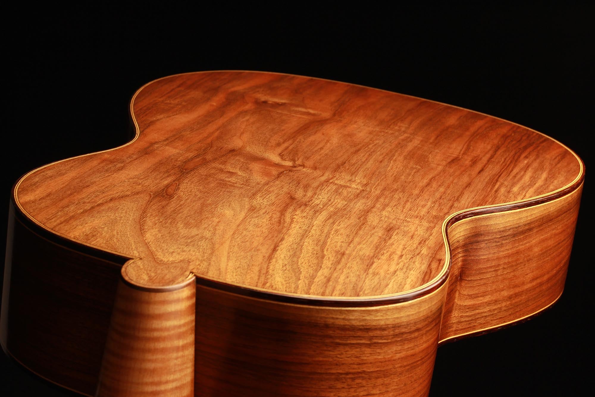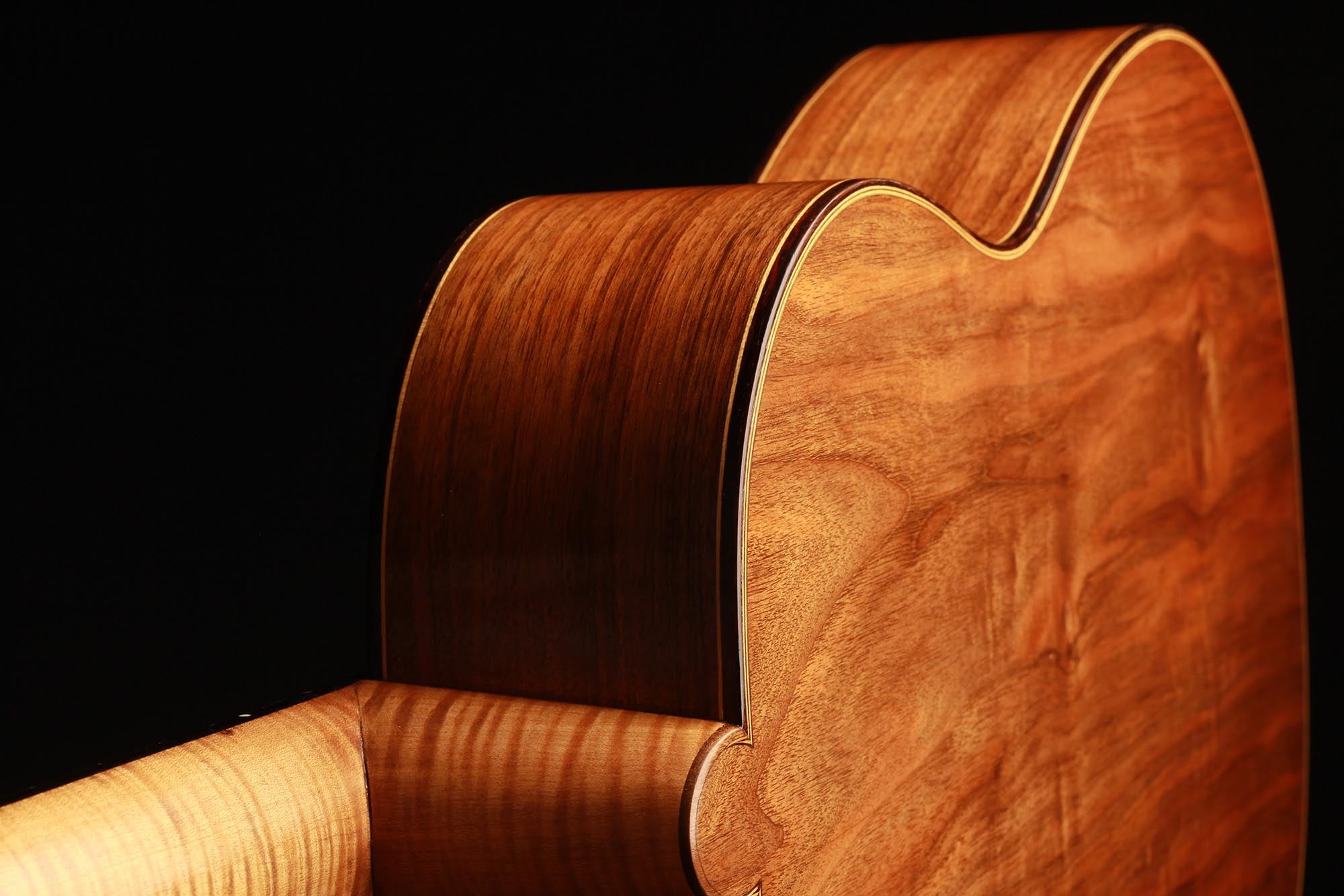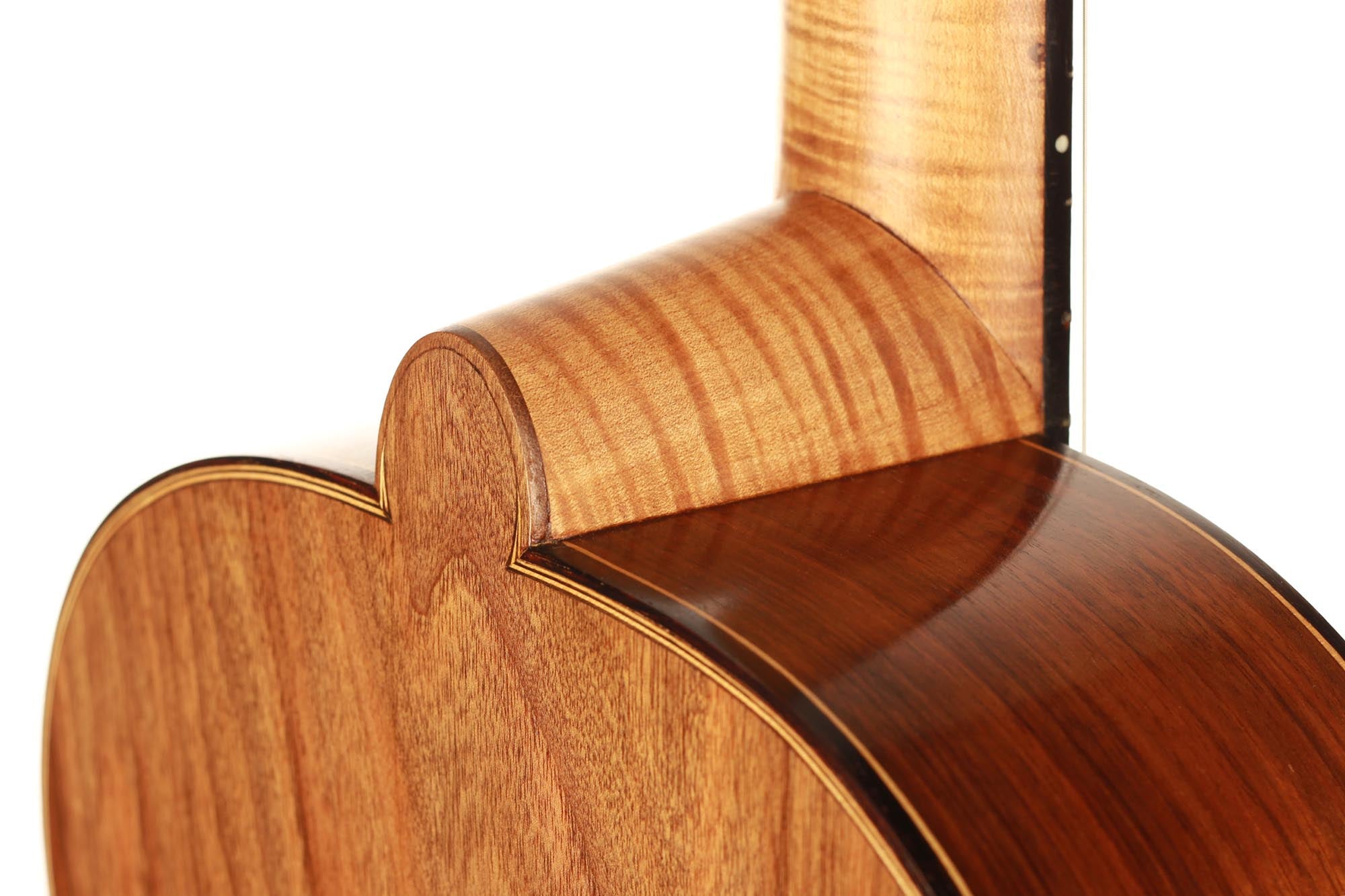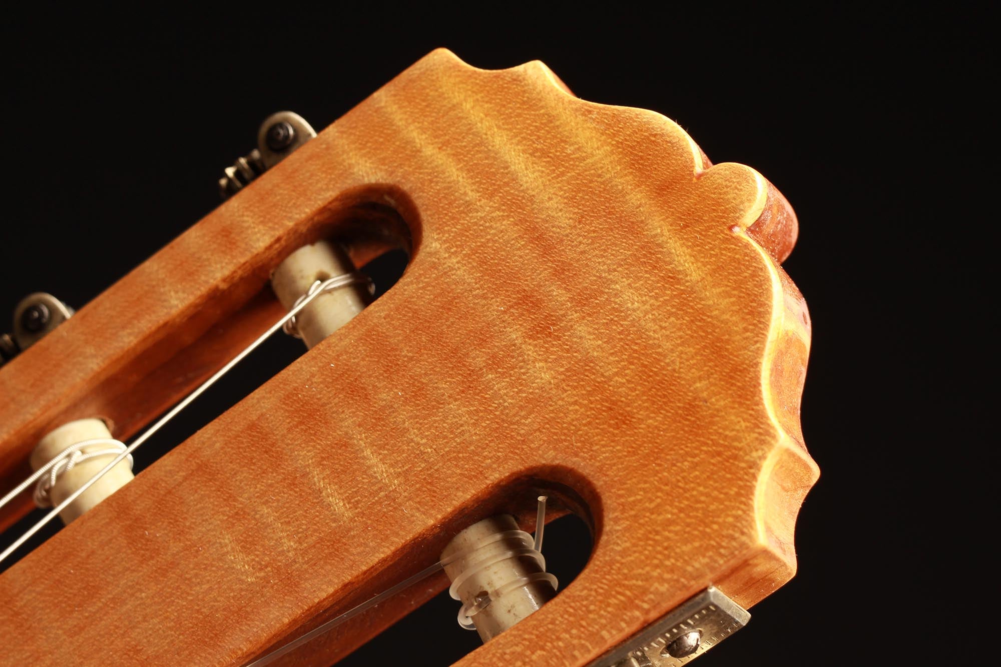 Dieses schöne Instrument aus dem Jahr 1954 ist in einem sehr guten Zustand ohne Risse und Reparaturen. Die für diese Gitarre gewählten Hölzer sind sehr interessant: Der einteilige Nussbaumboden und der Ahornhals waren zu dieser Zeit zwei seltene Merkmale. Außerdem erinnert uns der Ahornhals natürlich an Lecchis Geigenbauausbildung.