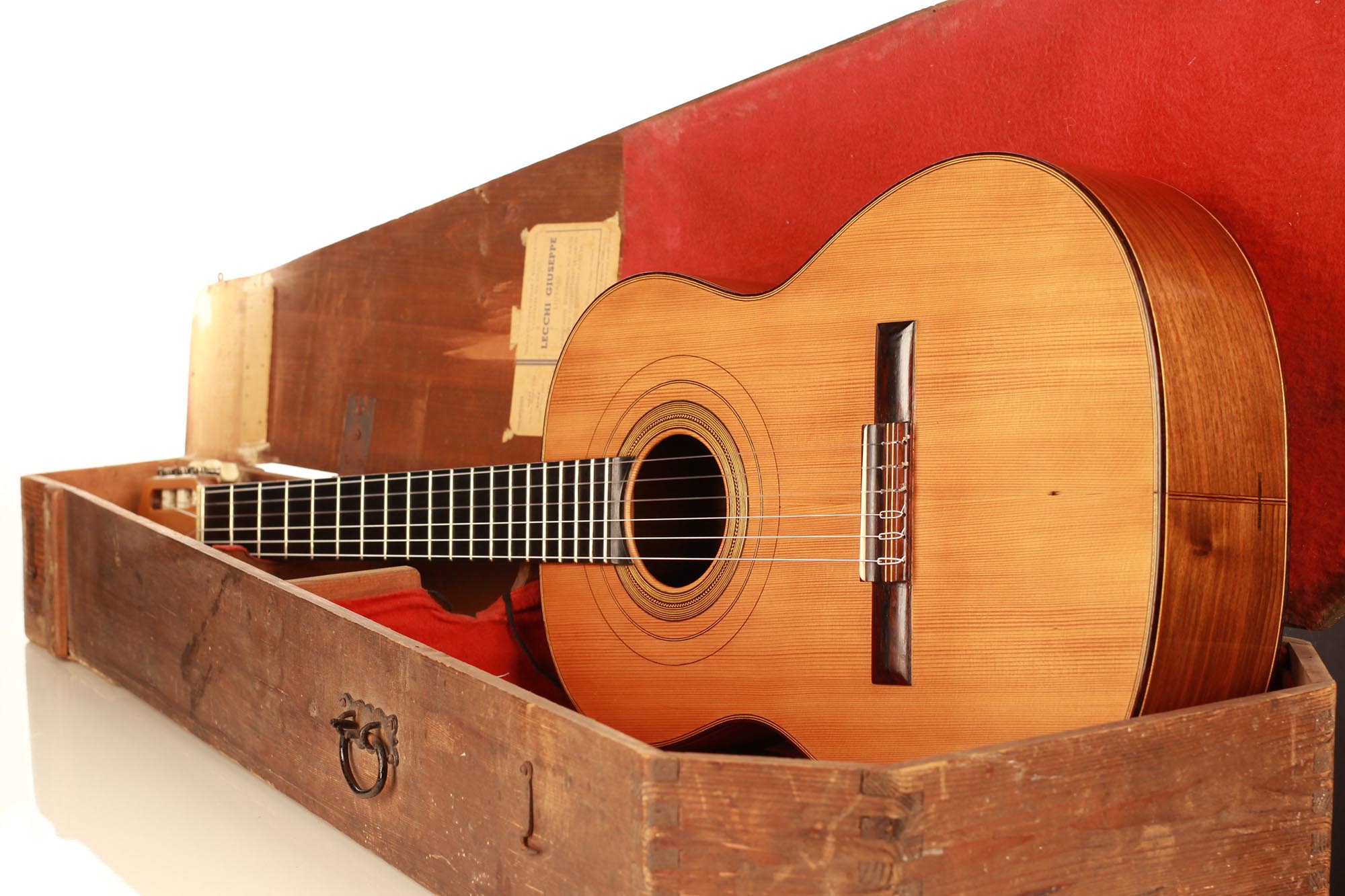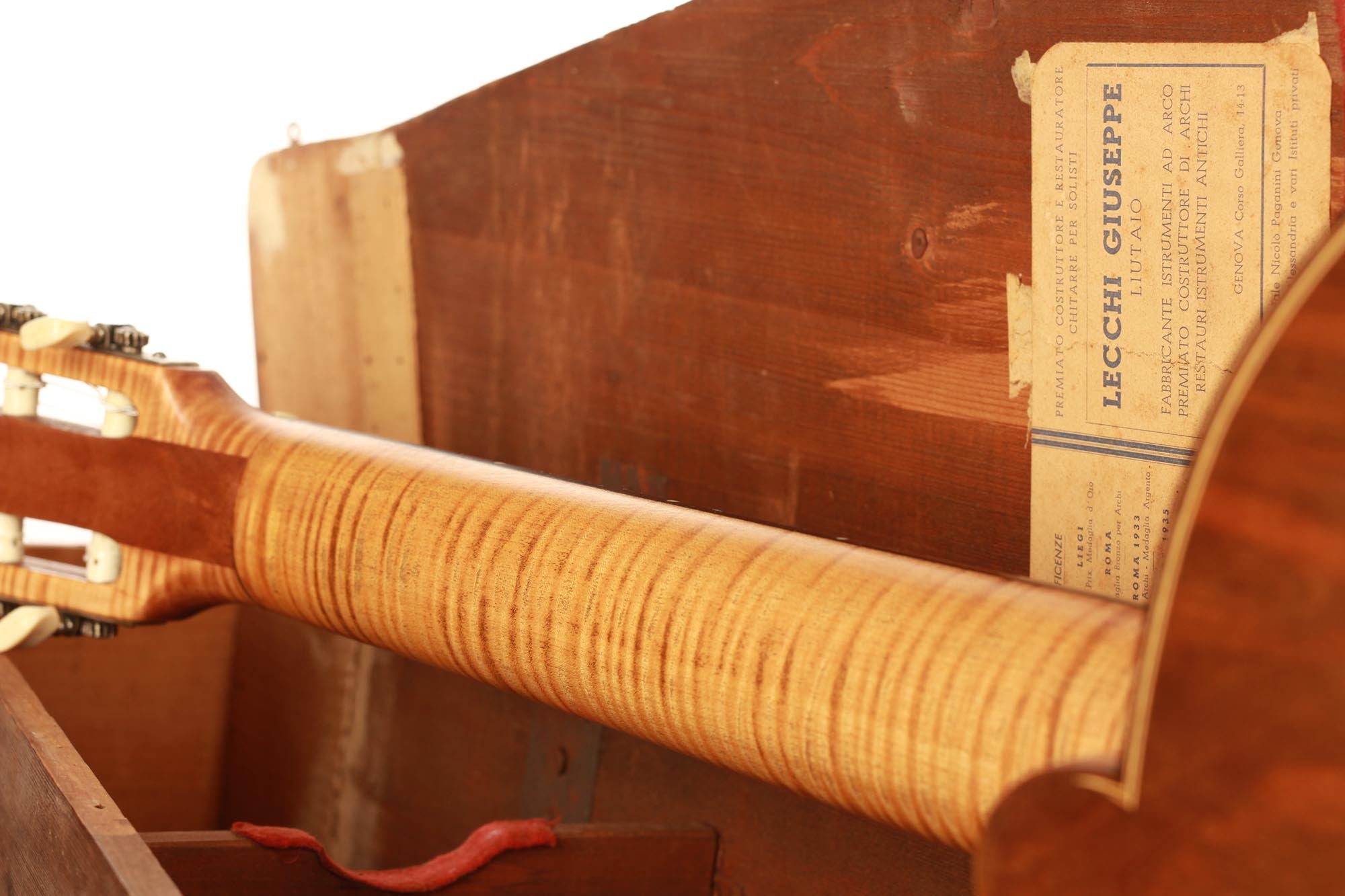 Giuseppe Lecchi wurde am 20. August 1895 in Felizzano, Italien, geboren. Nachdem er während des Ersten Weltkriegs als Soldat gedient hatte, begann er 1923 als Geigenbauer in Cesare Candis Werkstatt in Genua zu arbeiten. 1929 meldete er sich dann als selbständiger Instrumentenbauer an und eröffnete 1933 eine eigene Werkstatt in Genua. Er gewann den ersten Preis beim Geigenbauwettbewerb 1937, der der Zweihundertjahrfeier von Antonio Stradivari gewidmet war und hatte noch im selben Jahr seinen ersten Kontakt zur klassischen Gitarre. Giuseppe Lecchi widmete sich dann dem Bau der klassischen Gitarre und hatte die Möglichkeit, seine hohen Restaurierungsfähigkeiten auf Andrés Segovias 1912er Manuel Ramirez / Santos Hernandez umzusetzen.