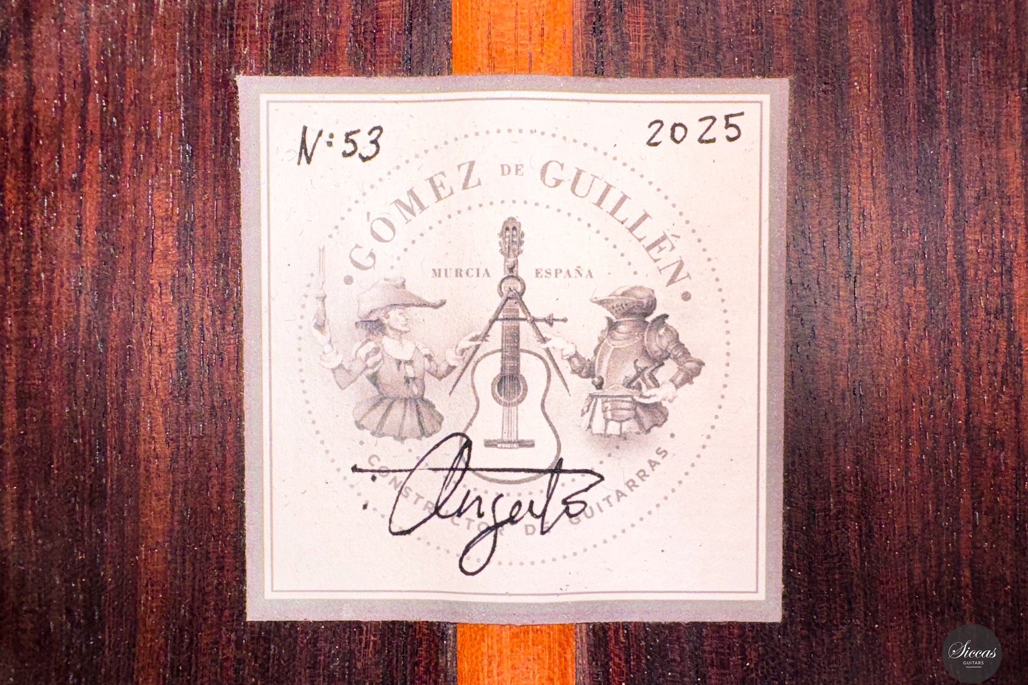 Ángel Gómez de Guillén is a Spanish guitar maker living in Murcia, located in the southeast of Spain. As an enthusiastic guitarist, the transition to guitar making was an obvious one for him. Working with great established Spanish guitar makers such as Carlos Juan Busquiel, Stephen Hill, and Oscar Muñoz, he gained a vast knowledge of the complex tradition of Spanish guitar making. Ángel Gómez de Guillén now builds guitars in his own workshop, working very traditionally following the example of the great masters before him. His guitars are very responsive, have a precise tone and generous volume.