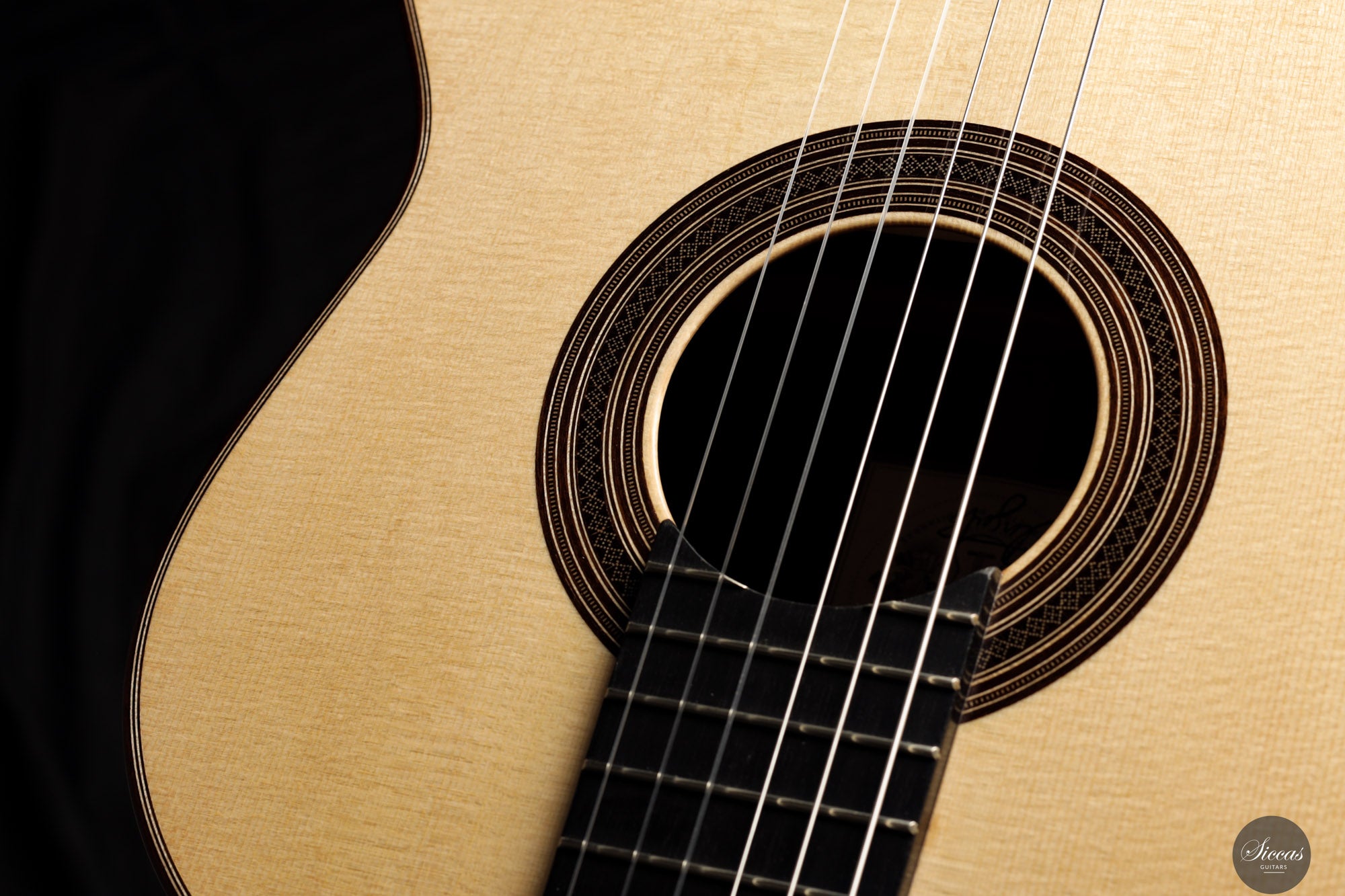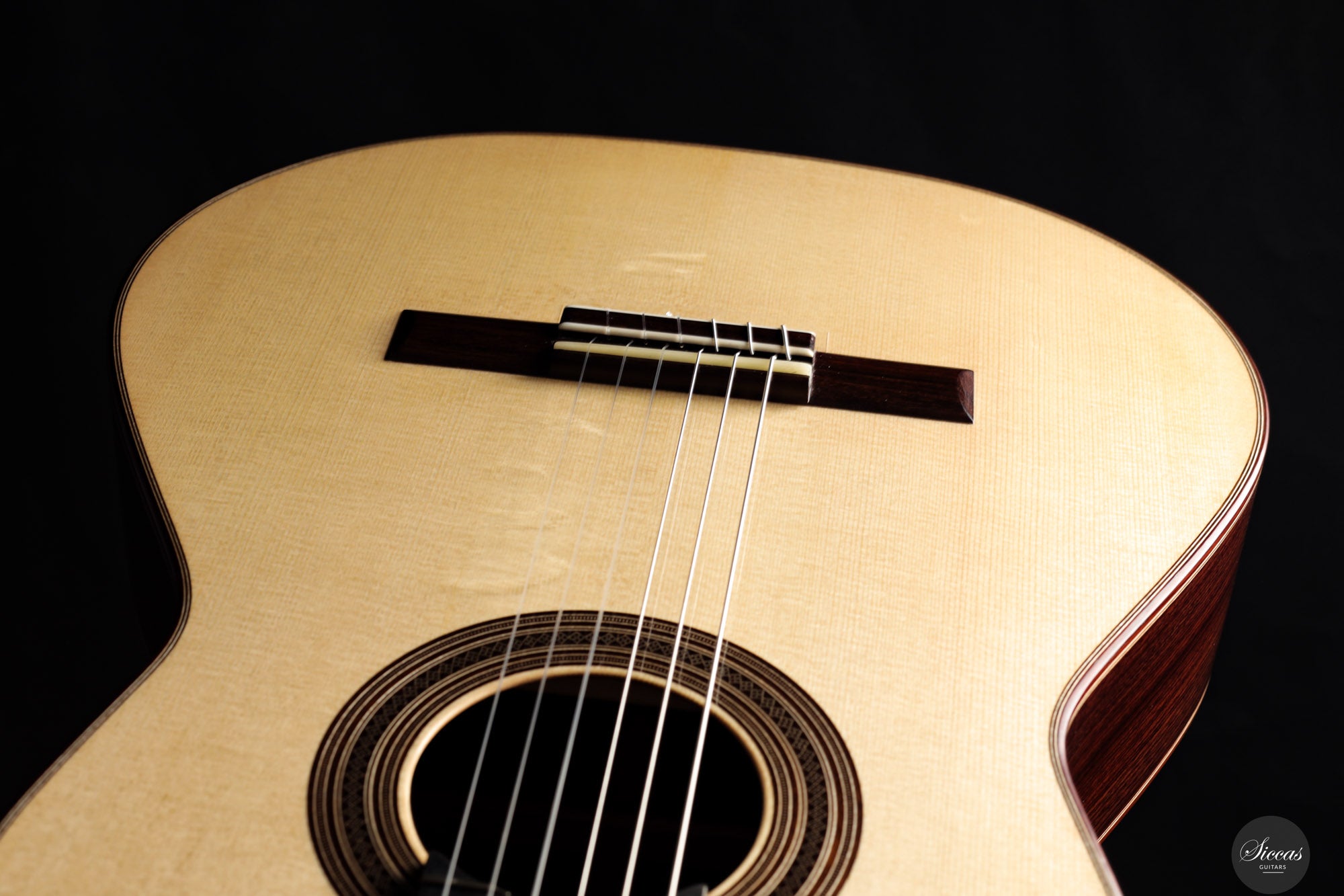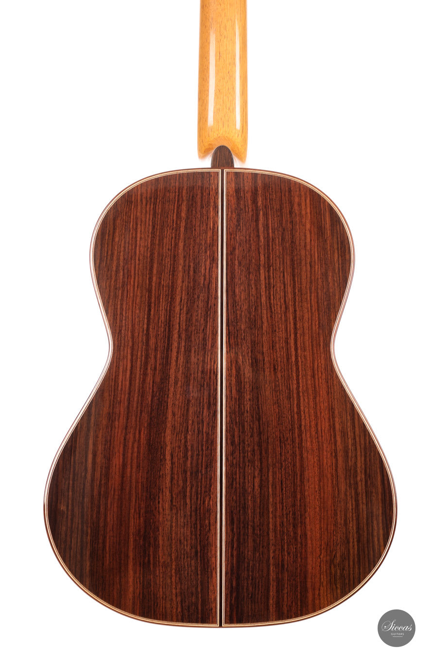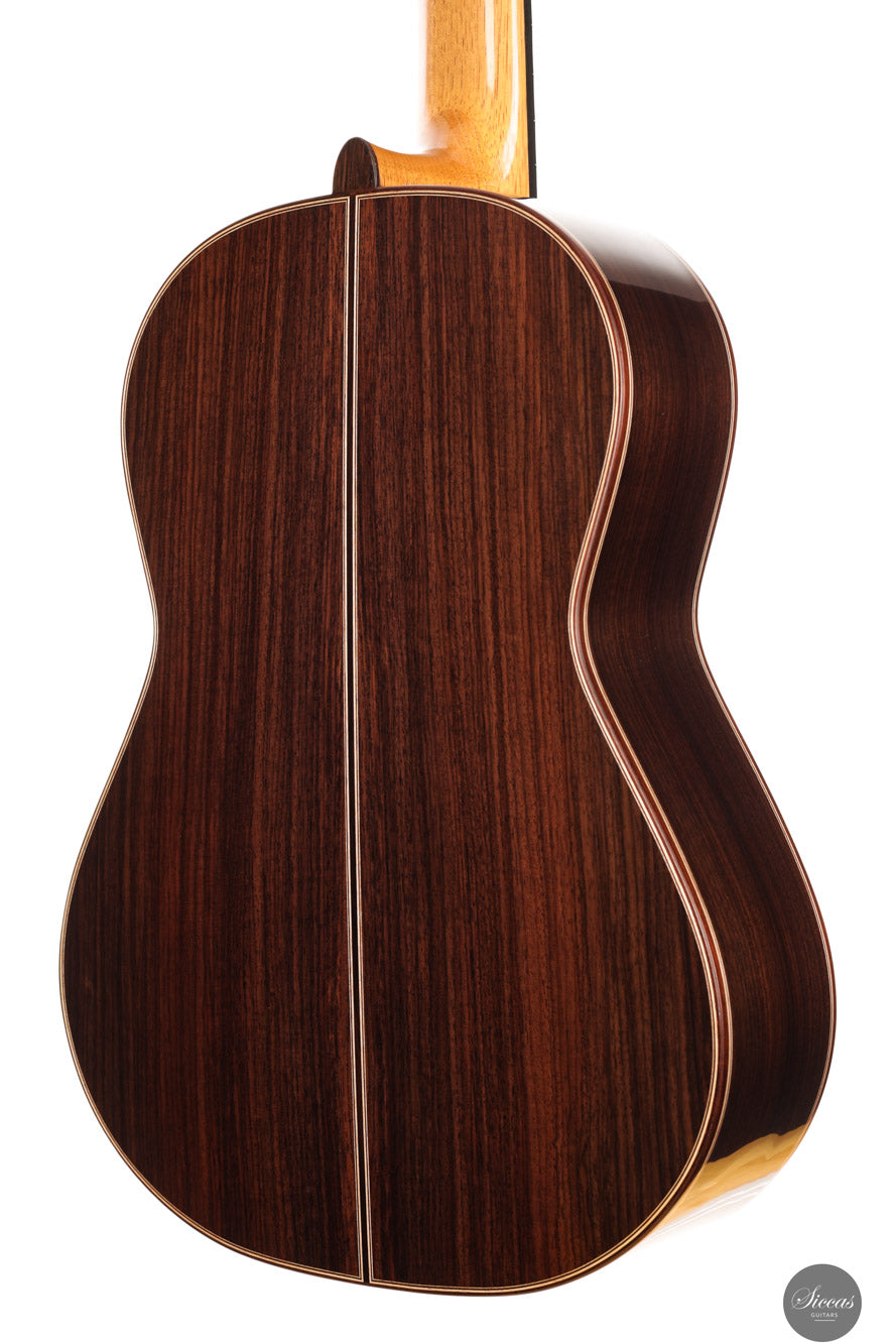 This traditionally built guitar with a spruce top is an amazing instrument that carries the Spanish tradition at its finest level. It is remarkably responsive, offering crystal-clear yet sweet trebles, paired with warm and mature basses. It is an easy-to-play instrument suitable for both professional guitarists and avid enthusiasts. The sense of responsiveness that this guitar provides, along with its sonorous tones, is truly inspiring for the guitarist and allows for fantastic dynamic expression.