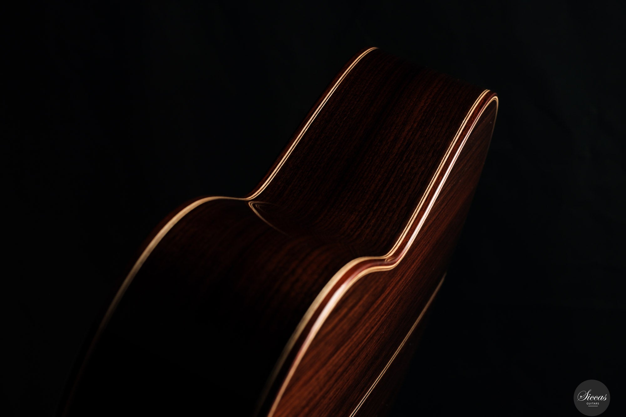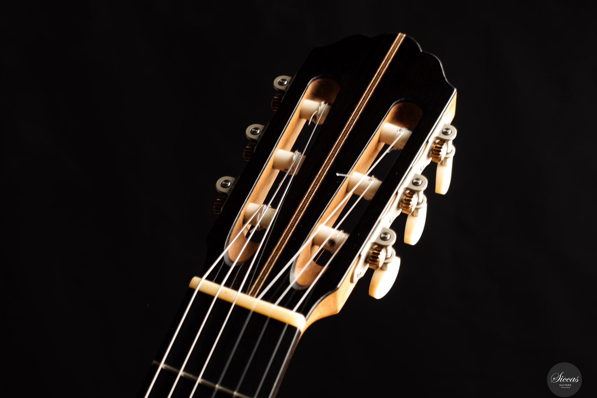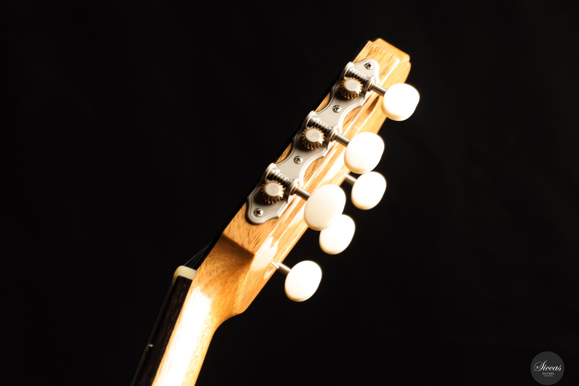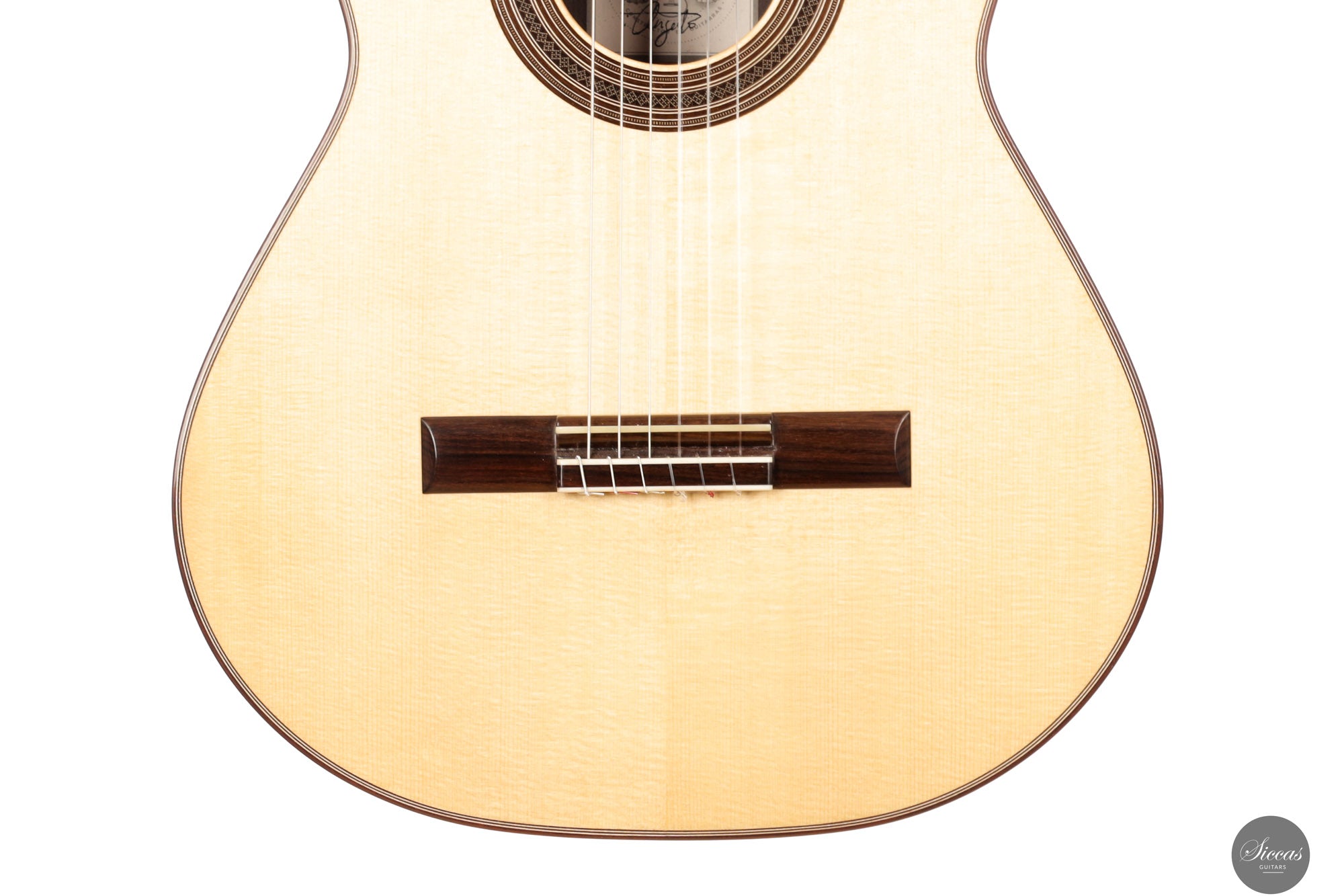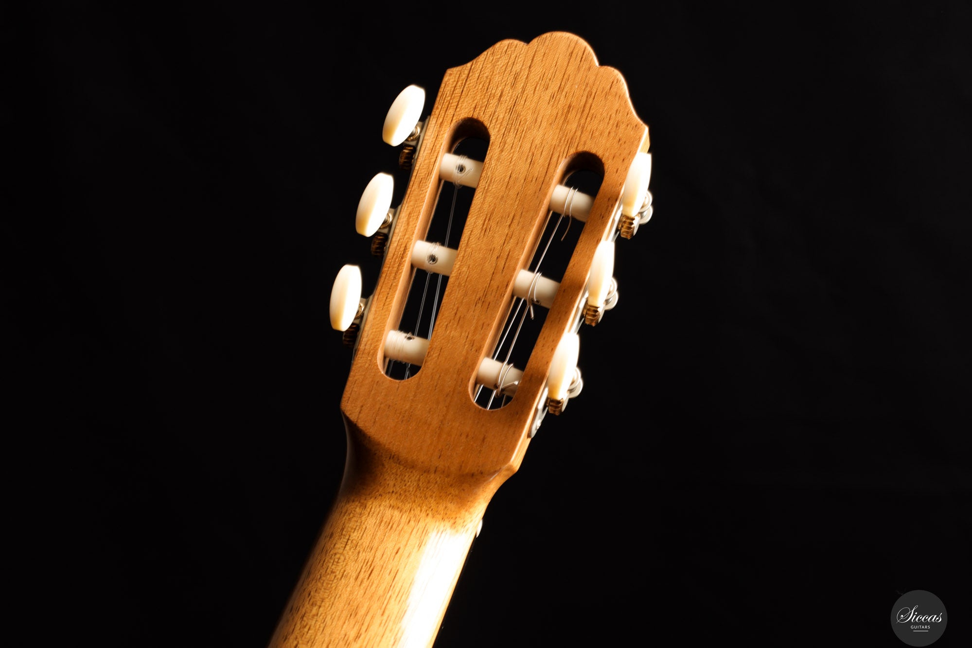 This traditionally built guitar with a spruce top is an amazing instrument that carries the Spanish tradition at its finest level. It is remarkably responsive, offering crystal-clear yet sweet trebles, paired with warm and mature basses. It is an easy-to-play instrument suitable for both professional guitarists and avid enthusiasts. The sense of responsiveness that this guitar provides, along with its sonorous tones, is truly inspiring for the guitarist and allows for fantastic dynamic expression.