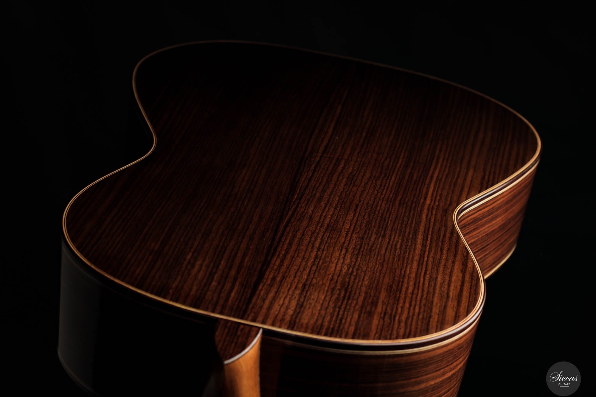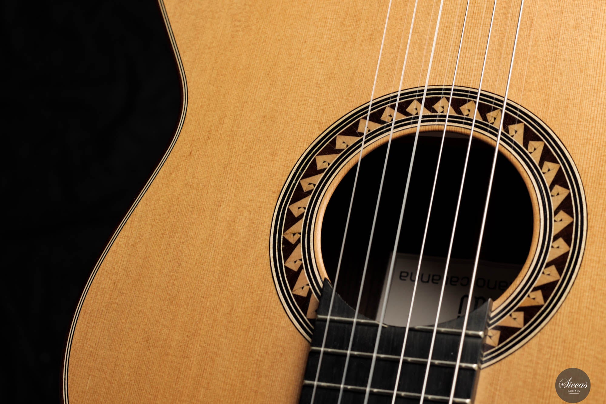 Diese Gitarre, die 2022 gefertigt wurde und als New Old Stock (NOS) gilt, da sie nie Grazianos Werkstatt verlassen hat, ist ein Beispiel für die außergewöhnliche Handwerkskunst eines unter dem renommierten Daniele Chiesa ausgebildeten Gitarrenbauers. Sie verbindet traditionelle Bauweisen mit akribischer Liebe zum Detail und ergibt eine Gitarre, die sehr lebendige Höhen und reiche, knackige Bässe erzeugt. Jedes Zupfen offenbart die überlegenen klanglichen Qualitäten des Instruments, ein Zeugnis für die Fähigkeiten, die sein Hersteller verfeinert hat. Obwohl die Gitarre oberflächliche Nagelspuren aufweist, unterstreichen die Wahl der Materialien und die letzten Schliffe, was ein engagierter Gitarrenbauer erreichen kann. Diese Gitarre bietet einen bemerkenswerten Wert und bietet ein Maß an Leistung und Kunstfertigkeit, das in dieser Preisklasse selten ist, und macht sie zu einer ausgezeichneten Wahl für Musiker, die sowohl Qualität als auch Charakter in ihrem Instrument suchen.