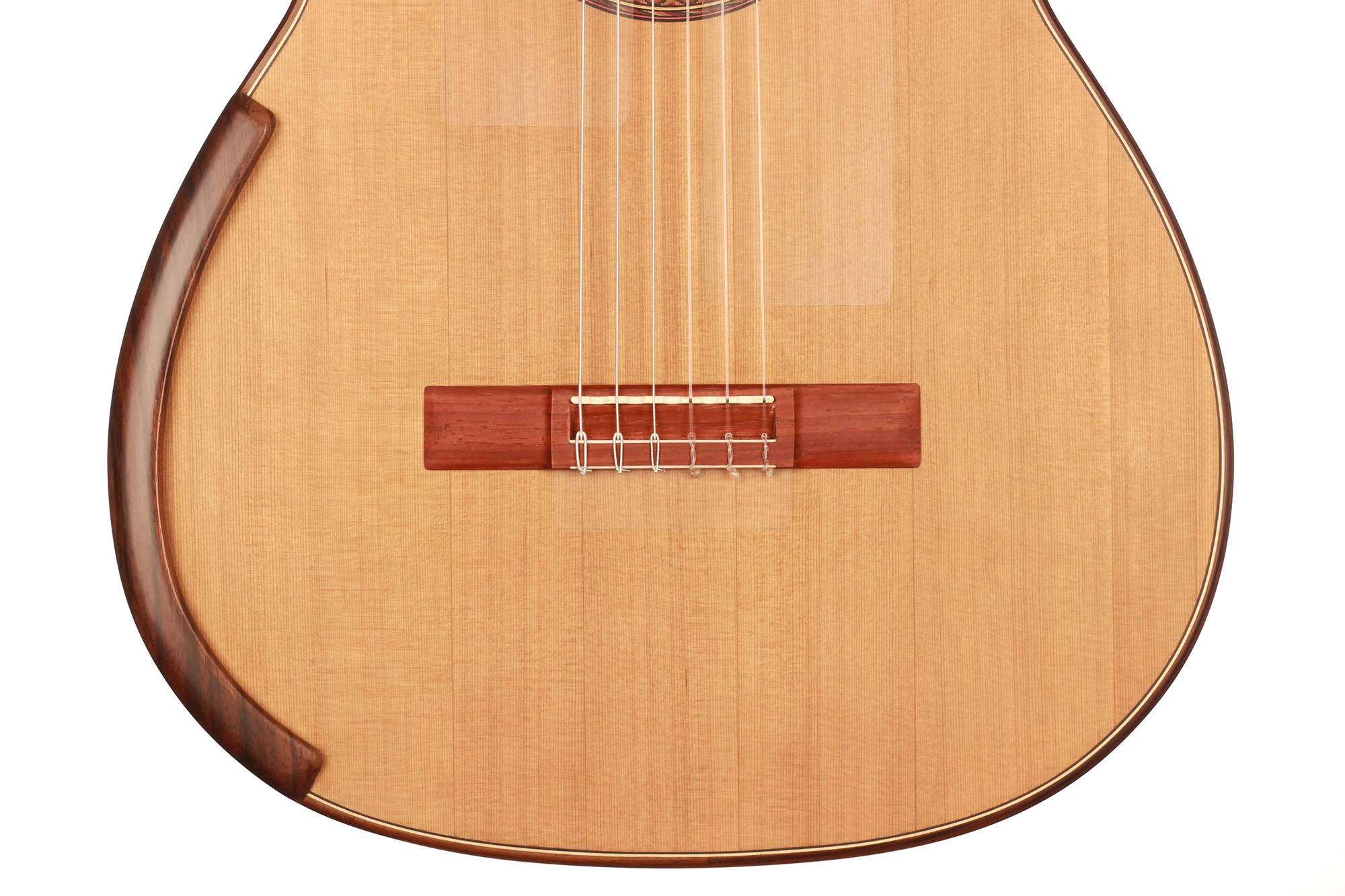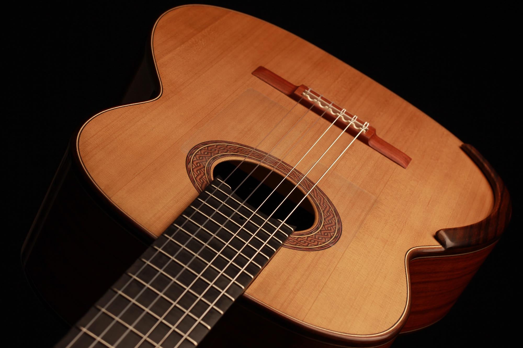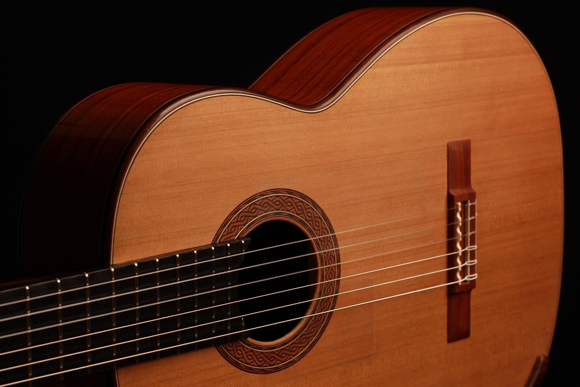 Die klassische Gitarre mit ihren weichen Nylonsaiten und ihrem charakteristischen Timbre ist zum Symbol der Kammermusik, der spanischen Tradition und des Konzertrepertoires geworden. Ihre moderne Form prägte Antonio de Torres im 19. Jahrhundert, indem er den Standard für Korpus, Fächerbeleistung und die 65-Zentimeter-Mensur setzte, die bis heute verwendet werden. Instrumente dieser Kategorie eröffnen eine reiche Palette von den feinen romantischen Miniaturen Tárregas bis zu den majestätischen Konzerten Rodrigos. Hier finden Sie Gitarren, die historische Kontinuität bewahren und zugleich zu neuen Interpretationen anregen.