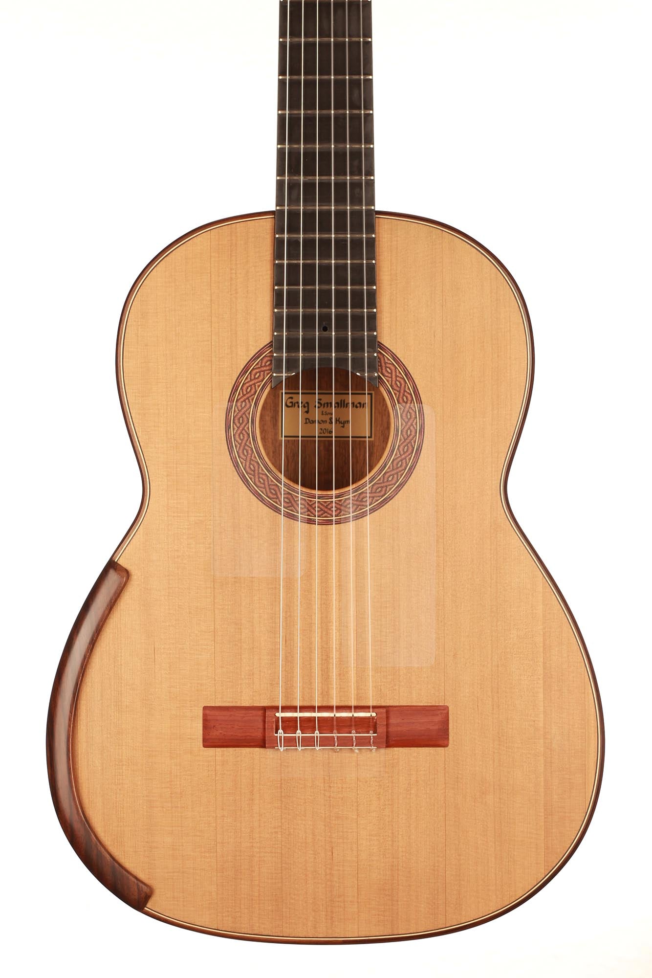 Greg Smallman ist wahrscheinlich der erste Name, an den Sie denken, wenn an australischen Gitarrenbau, die moderne Konzertgitarre par excellence, John Williams und die Generationen von Musikern denkt, die ihm folgten. Kurz gesagt, Smallman revolutionierte die Welt der klassischen Gitarre mit einem neuen Gitarren-Konzept und kombinierte eine extrem dünne Zederndecke, eine kohlefaserverstärkte Gitter-Bebalkung, doppelte Boden und Zargen, sowie einen abnehmbaren Hals. All dies führt zu einer Gitarre von sensationeller und bemerkenswerter Kraft und Spielbarkeit.
