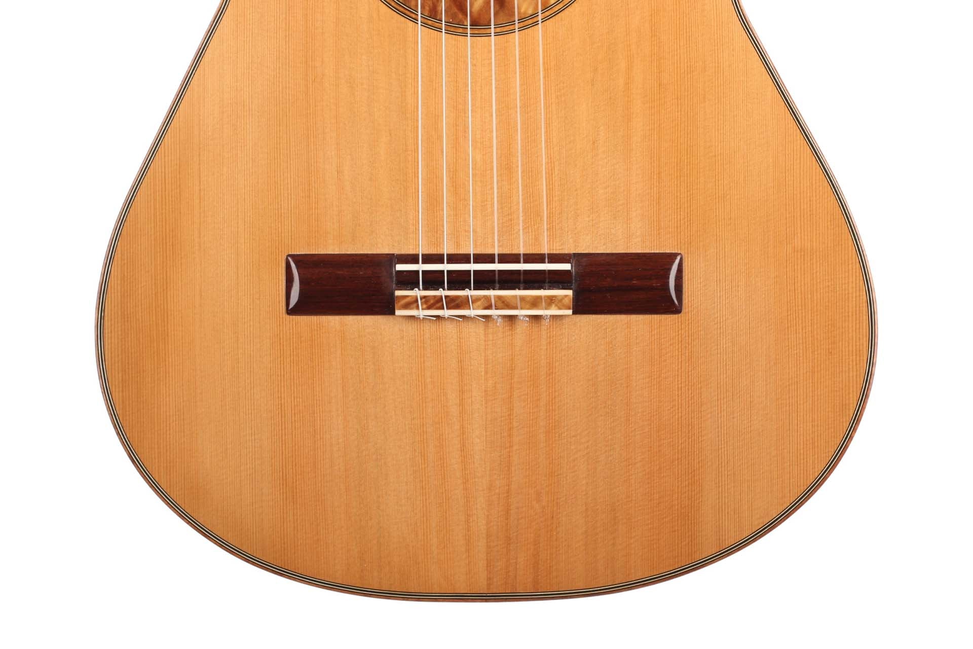 Gitarrenbauer: José Luis RomanillosBaujahr: 1979Decke: SpruceBoden und Zargen: Indian rosewoodDeckenoberfläche: French polishKorpusoberfläche: French polishLuftresonanz: G / G sharpGewicht (g): 1410Mechaniken: RodgersZustand: Excellent