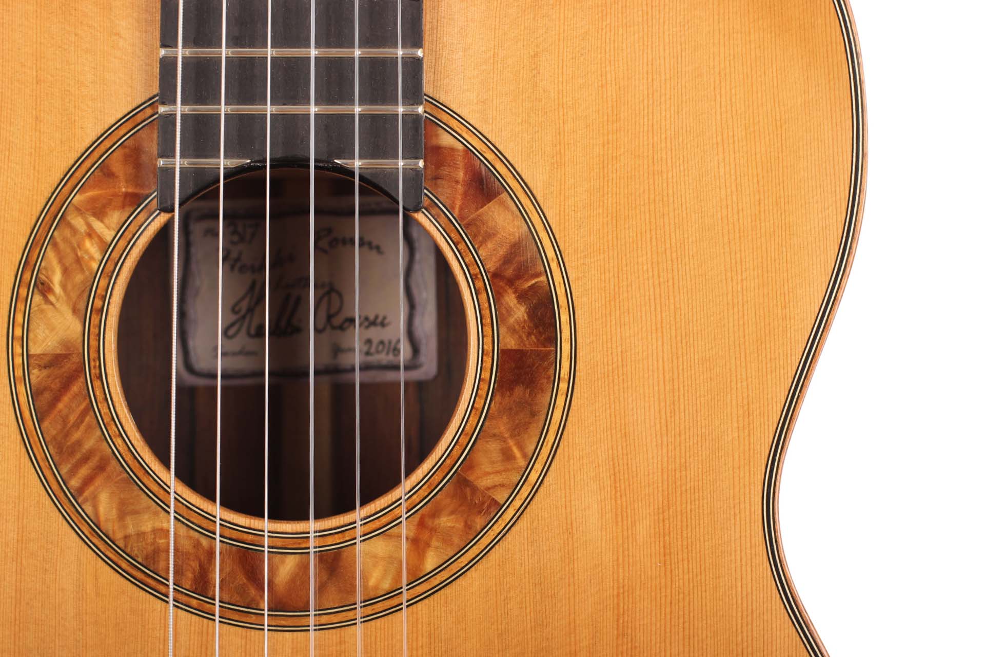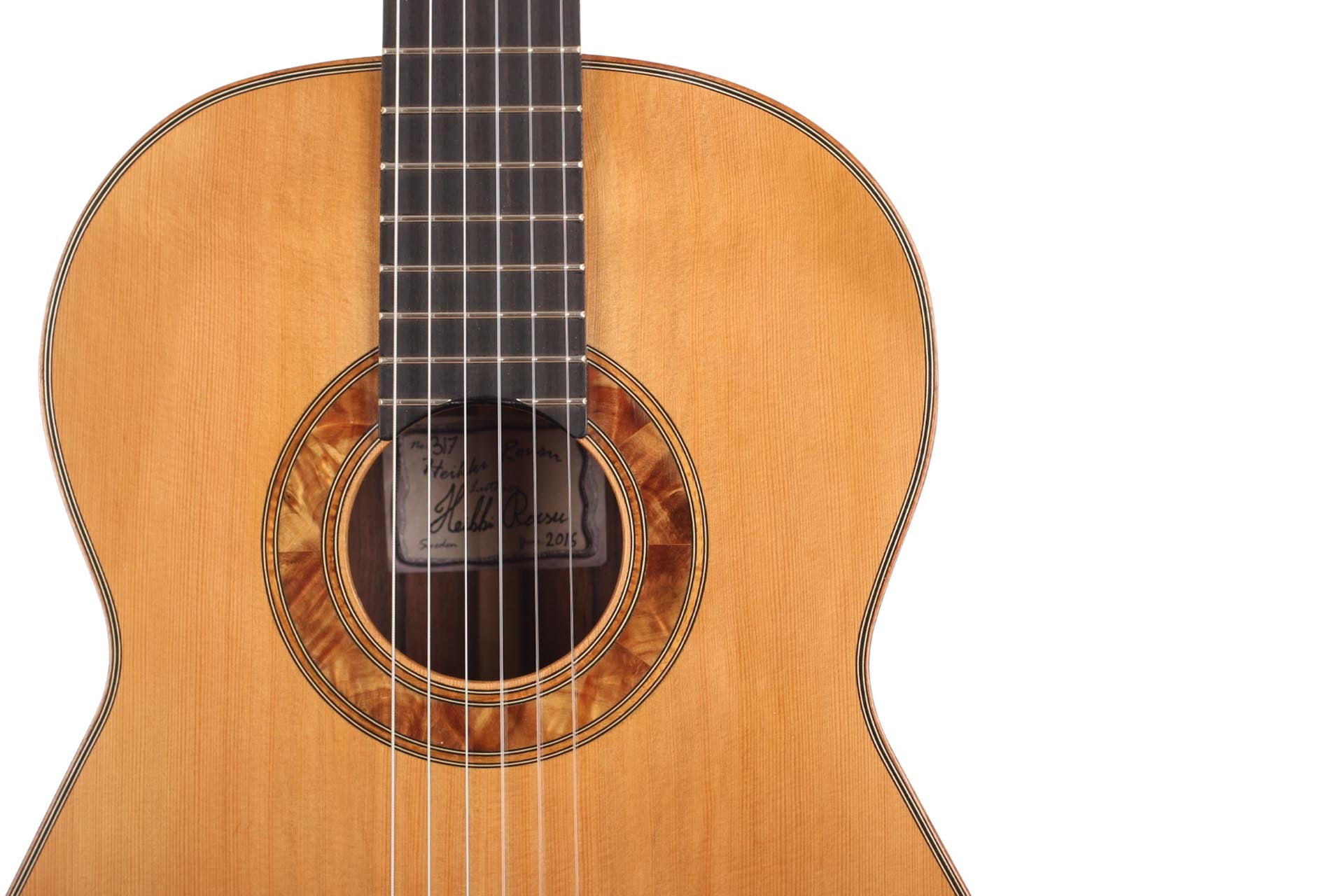 Der schwedische Gitarrenbauer Heikki Rousu baut seit 1990 Gitarren und hat mittlerweile über 300 Instrumente gebaut. Diese Gitarre wurde 2016 gebaut und hat eine Decke aus Zeder. Für Boden und Zargen wurde Madagaskarpalisander gewählt. Das Instrument wurde mit einer Schellackhandpolitur veredelt. Die Mechaniken sind von Rubner. Ein Hartschalenkoffer von Hiscox ist inklusive.