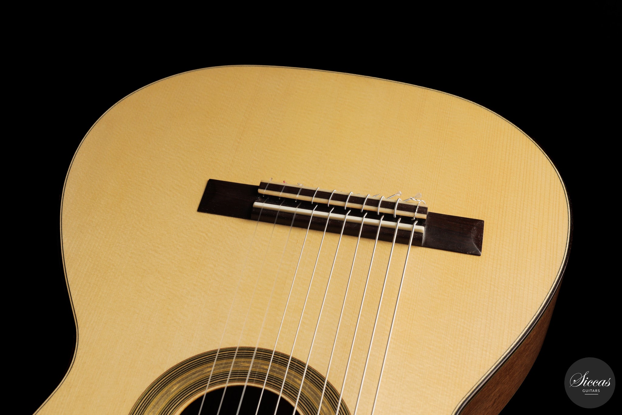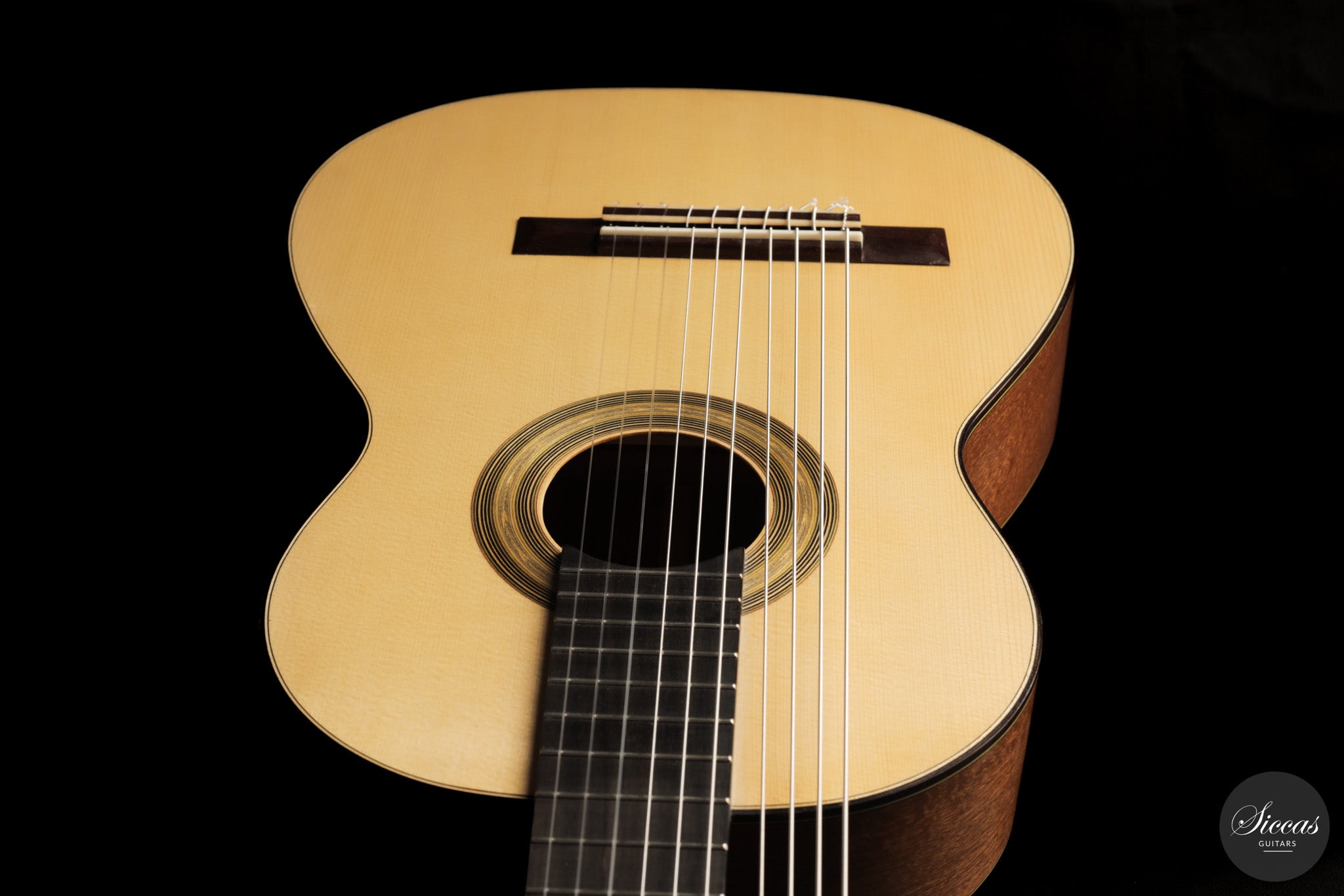Die Fichtendecke sorgt für eine präzise und direkte Ansprache, während die vierteilige Konstruktion von Boden und Zargen aus Sapele mit einem Mittelstreifen aus Madagascar-Palisander eine stabile klangliche Basis schafft und zugleich eine eigenständige visuelle Wirkung entfaltet. Die mechanischen Wirbel ermöglichen eine zuverlässige und präzise Stimmung, was bei Instrumenten mit erweitertem Saitensatz von besonderer Bedeutung ist. Unterschiedliche Stimmungen lassen sich flexibel realisieren, wodurch sich die Gitarre für ein breites Repertoire eignet.