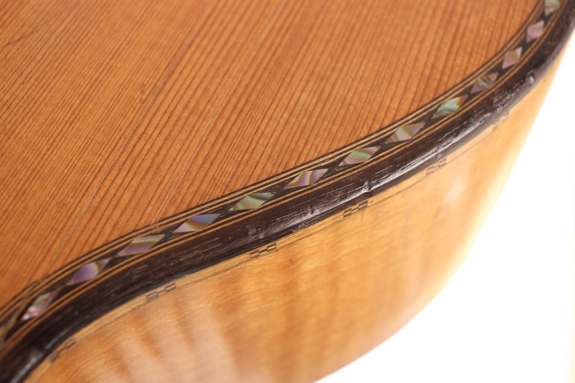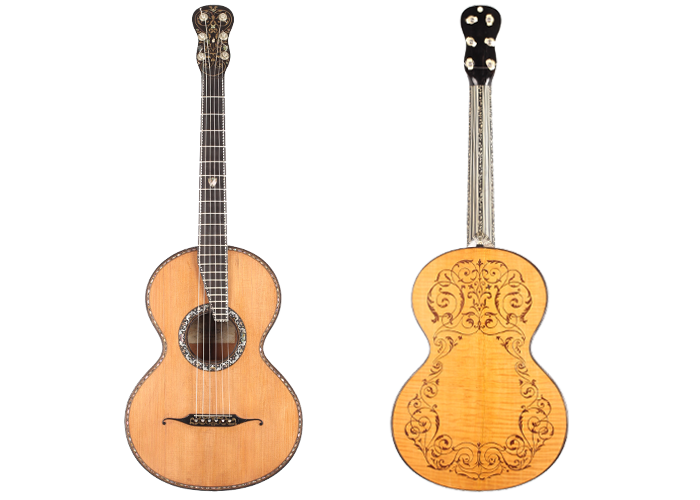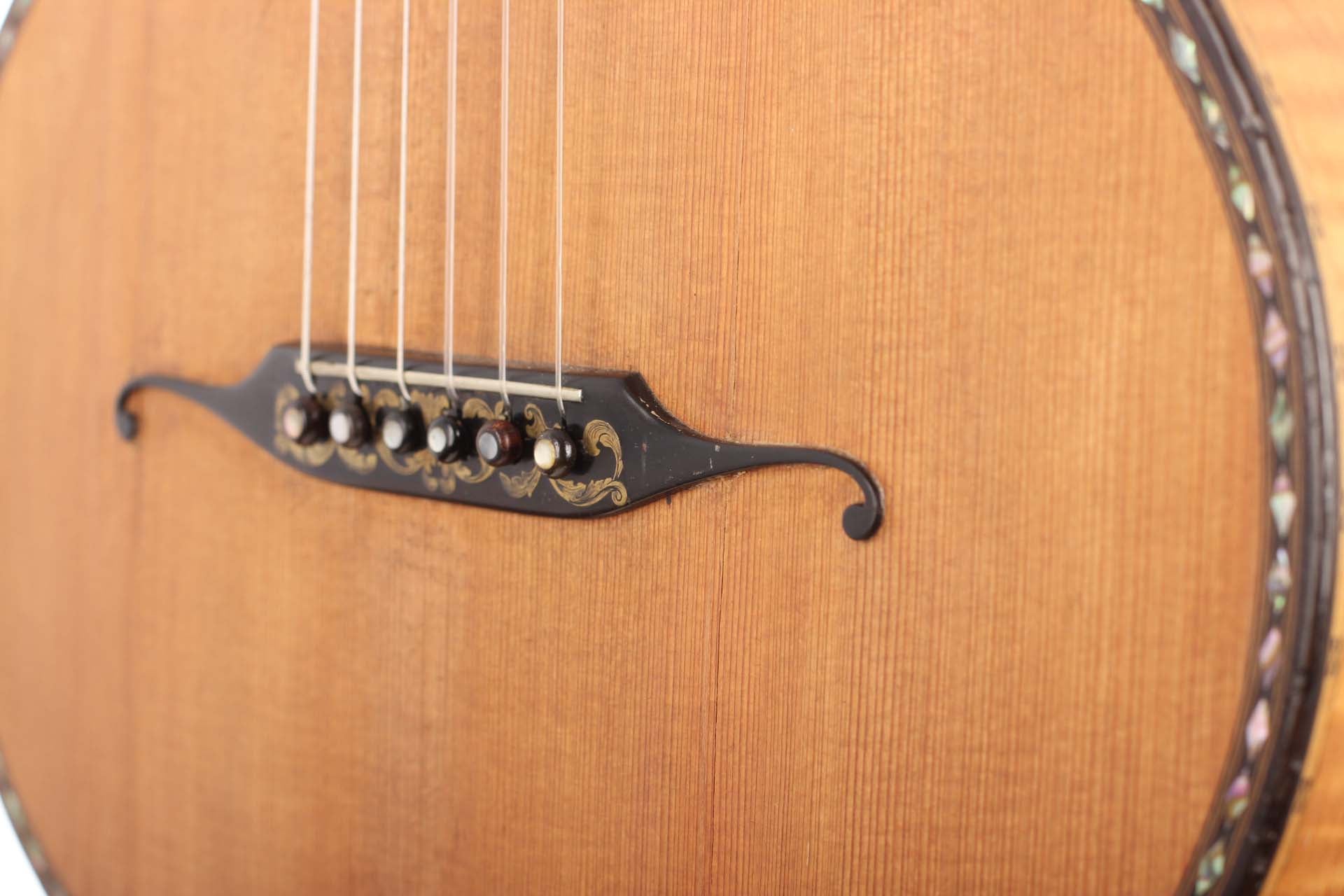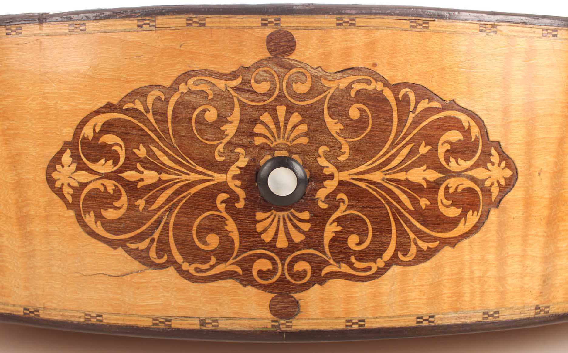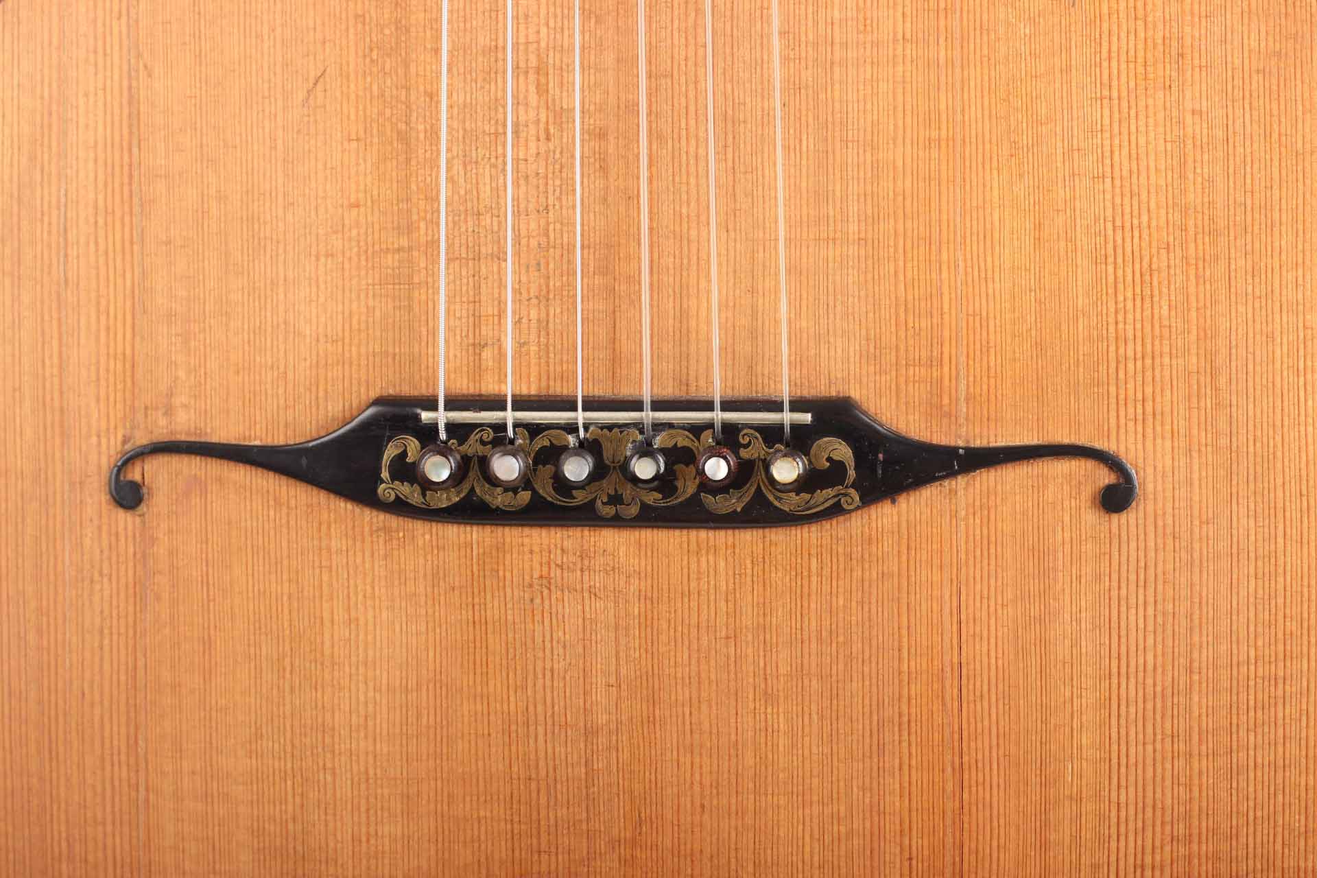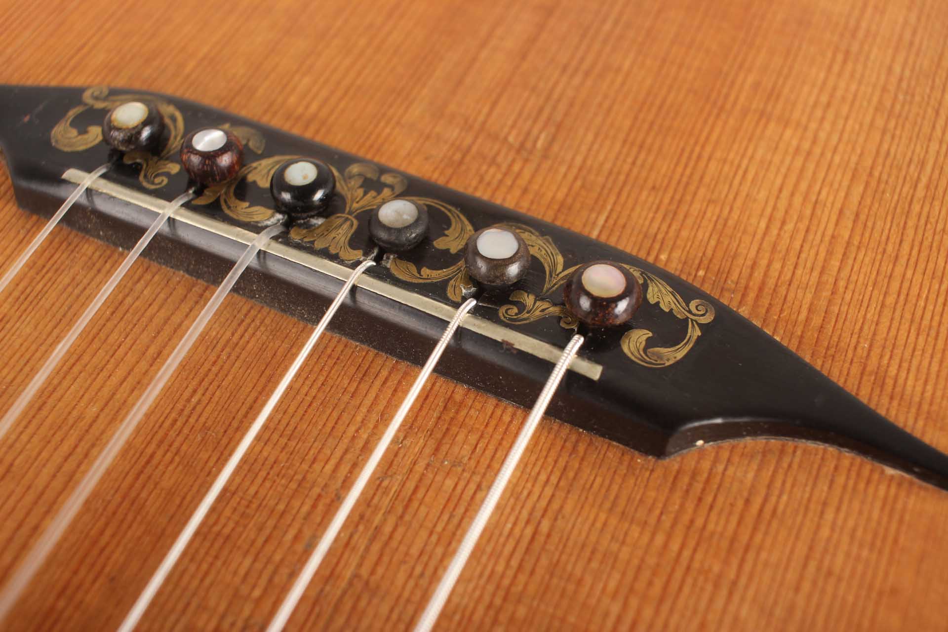 Henri Rudert wurde von 1810 geboren - das genaue Geburtsdatum ist nicht bekannt - und verstarb 1888 in Warschau, Polen. Rudert ist bekannt für seine außerordentlichen Fähigkeiten als Zupf- und Streichinstrumentenbauer. Für seine Arbeit wurde er im Jahre 1857 in Warschau mit einer Goldmedaille ausgezeichnet. Diese Gitarre aus dem Jahr 1841 ist eine der seltenen erhaltenen Instrumente, die meisten seiner Meisterwerke wurden im Zweiten Weltkrieg zerstört. Die Decke ist aus Fichte - Boden/Zargen sind aus Ahorn das Innen mit Fichte laminiert wurden. Reichlich verziert wurde die Gitarre an praktisch allen äußeren Bauteilen mit Perlmutt, Knochen und feinen Holzeinlagen. Die Gitarre befindet sich in einem sehr guten restaurierten Zustand. Ein Hartschalenkoffer ist inklusive.