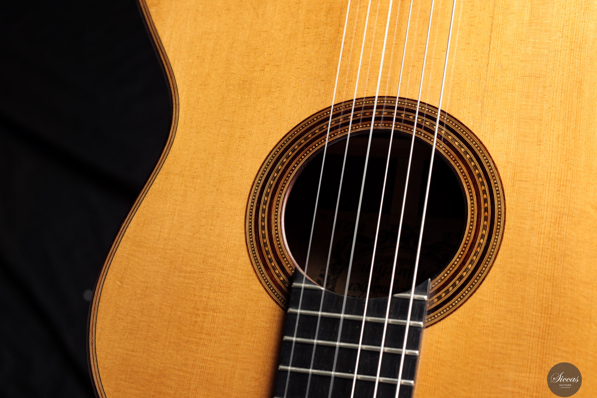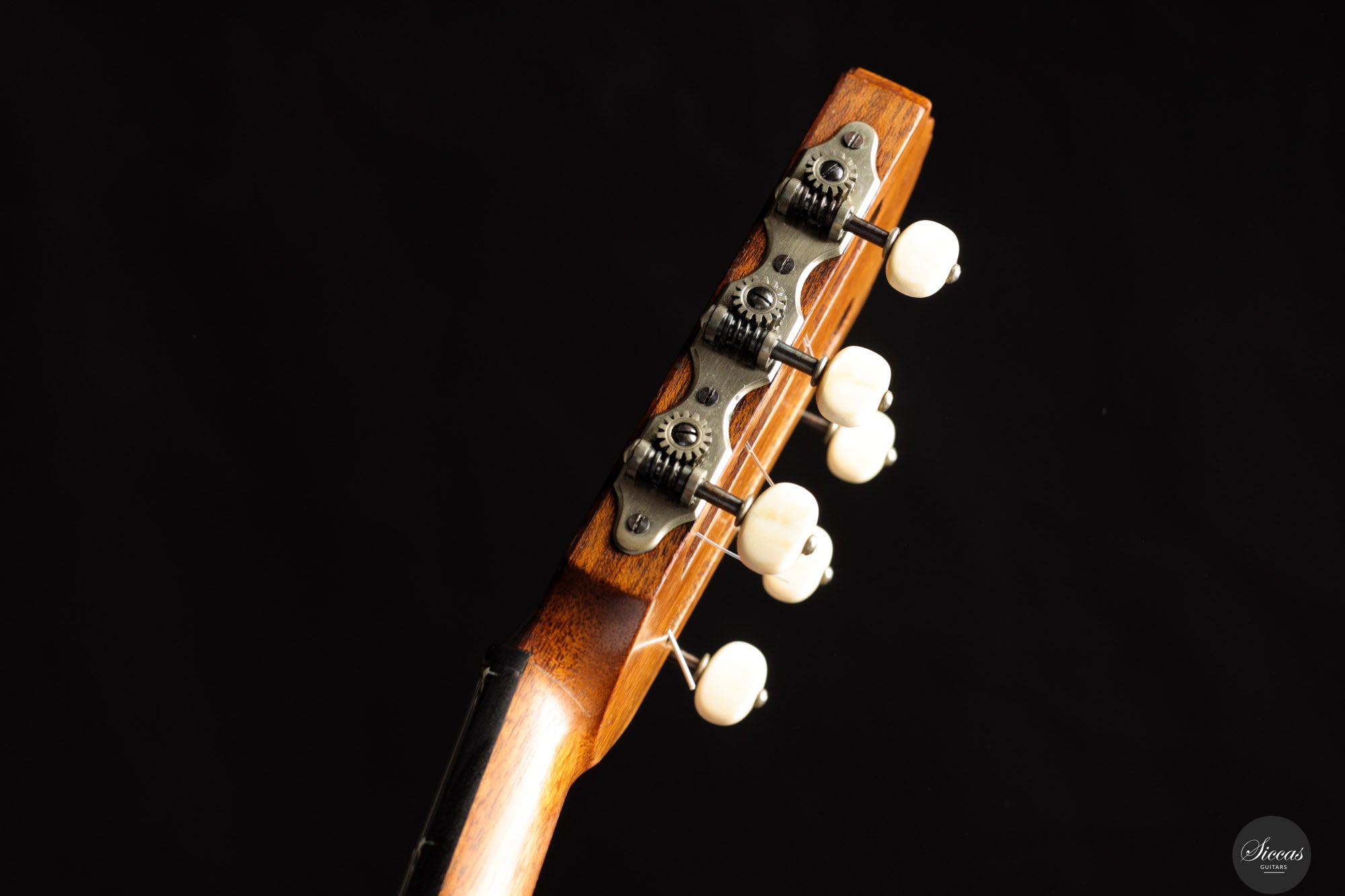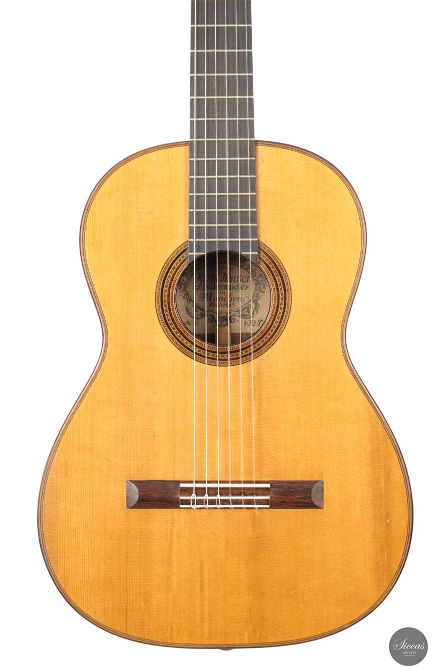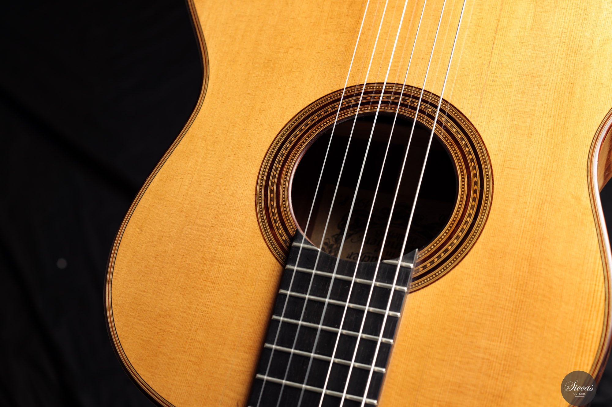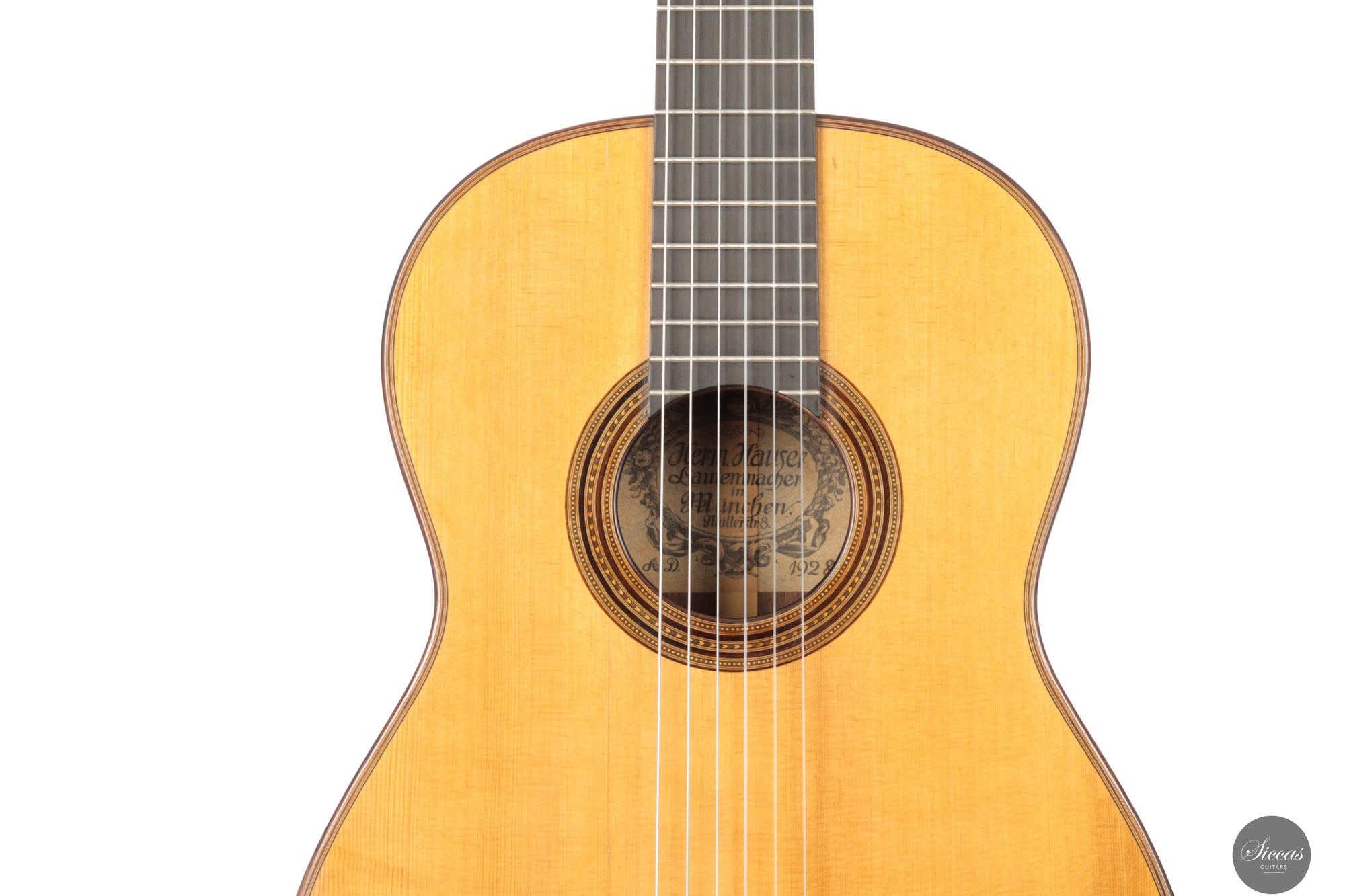Diese Gitarre von Hermann Hauser® I aus dem Jahr 1928 ist ein seltenes und frühes Beispiel des sogenannten Segovia-Modells, entstanden in der Übergangszeit zu seiner spanisch orientierten Bauweise. Die Kopfplattenform erinnert deutlich an Segovias berühmte Manuel Ramírez von 1912 – eine stilistische wie klangliche Referenz, die sich im gesamten Instrument widerspiegelt. Unter den Instrumenten der 1920er Jahre von Hauser® I gehört dieses zu den ausdrucksstärksten in Bezug auf einen authentisch spanischen Klangcharakter.