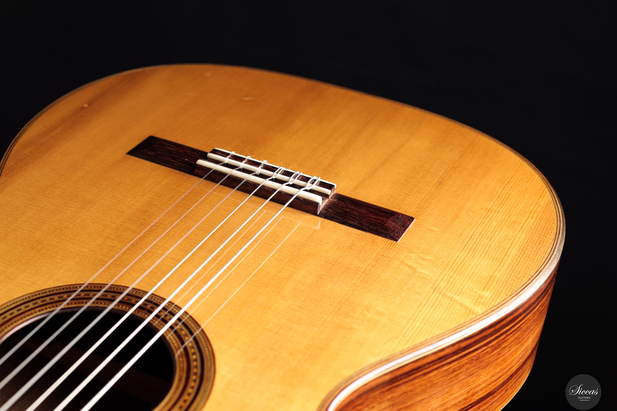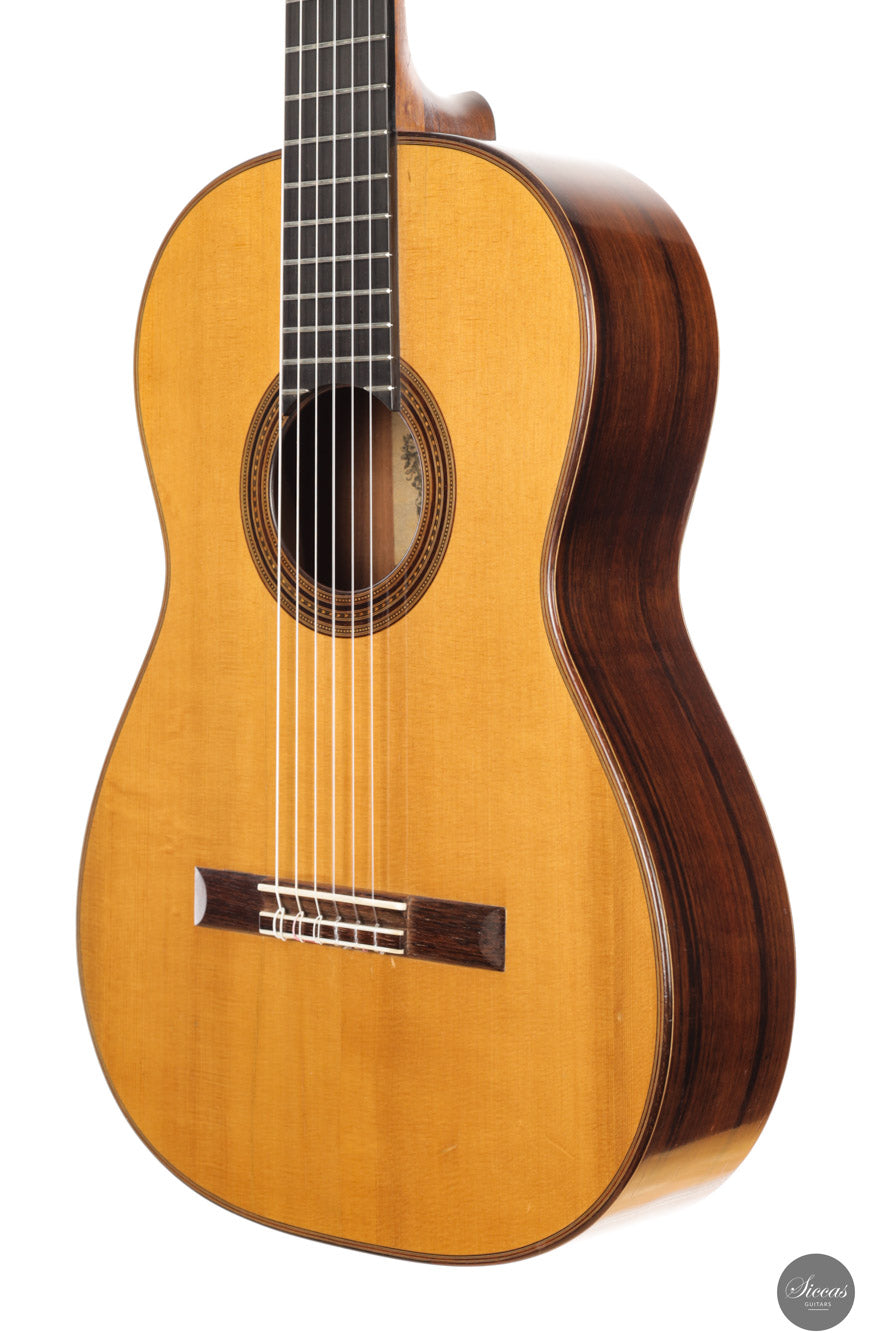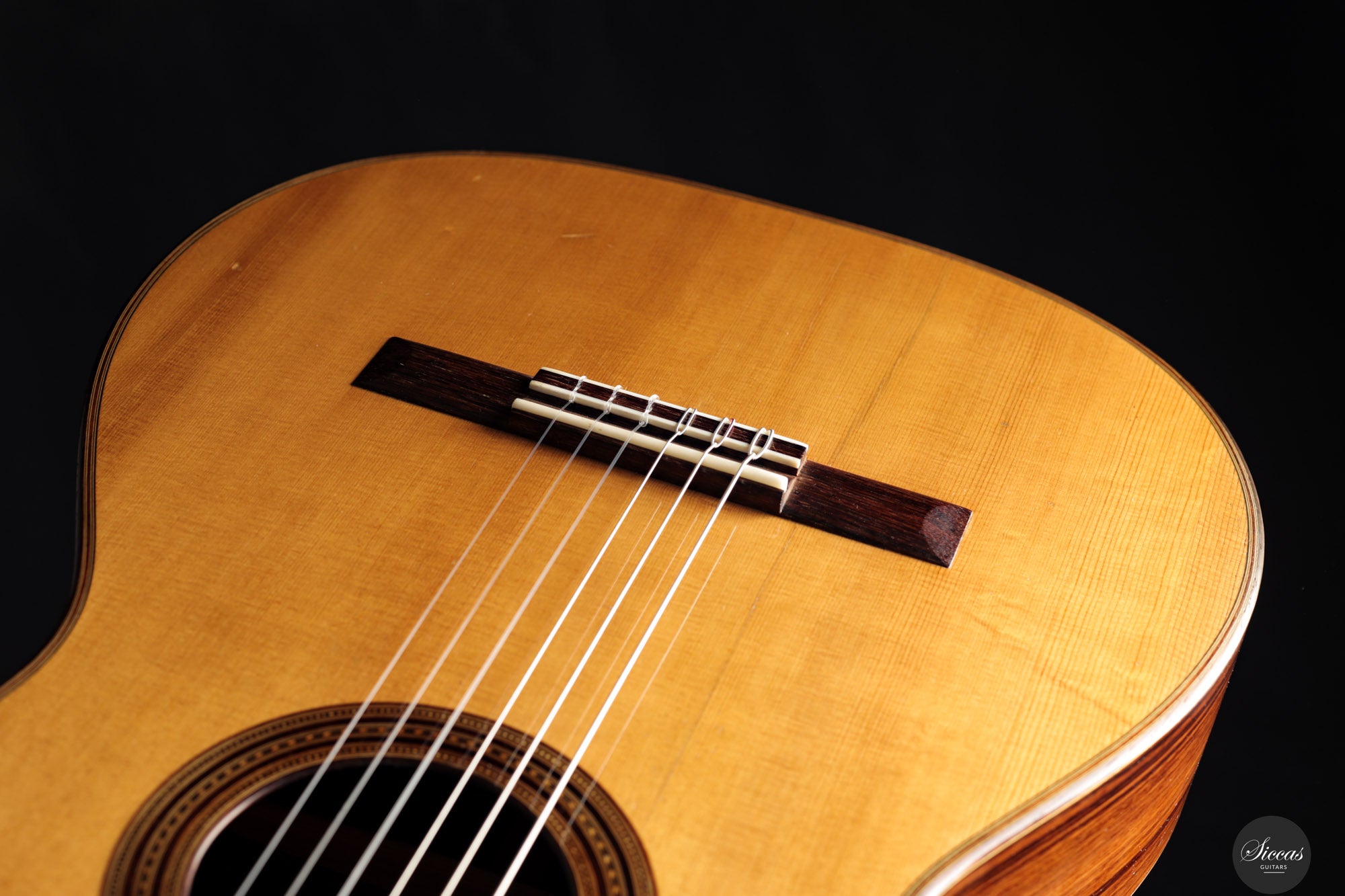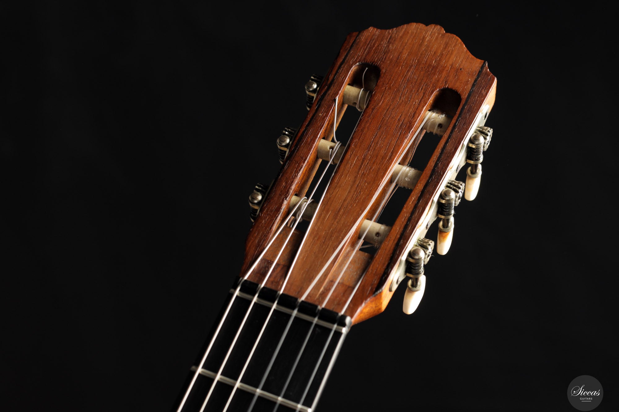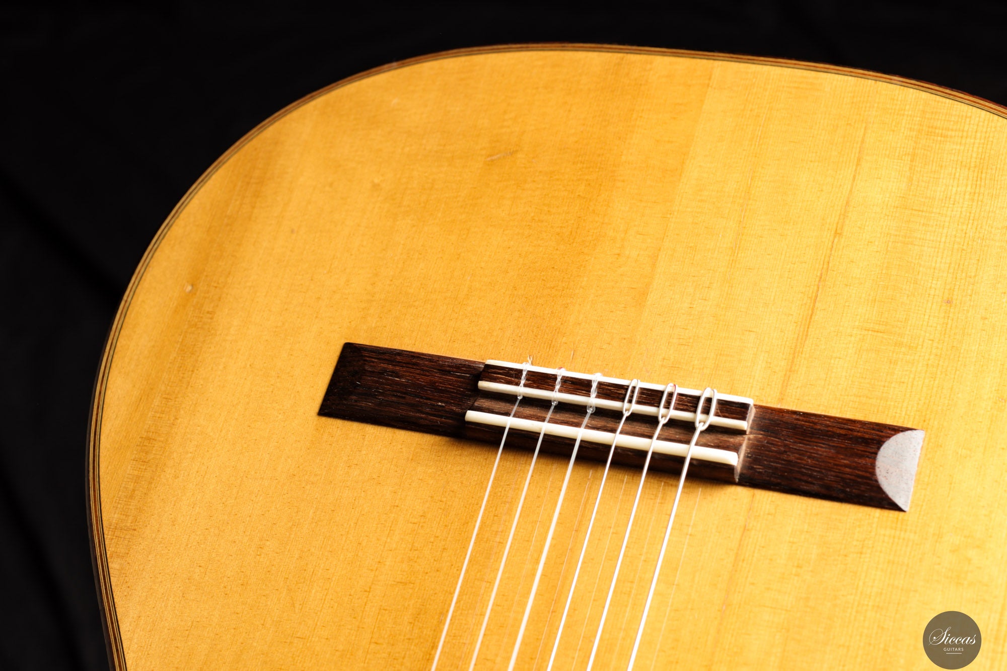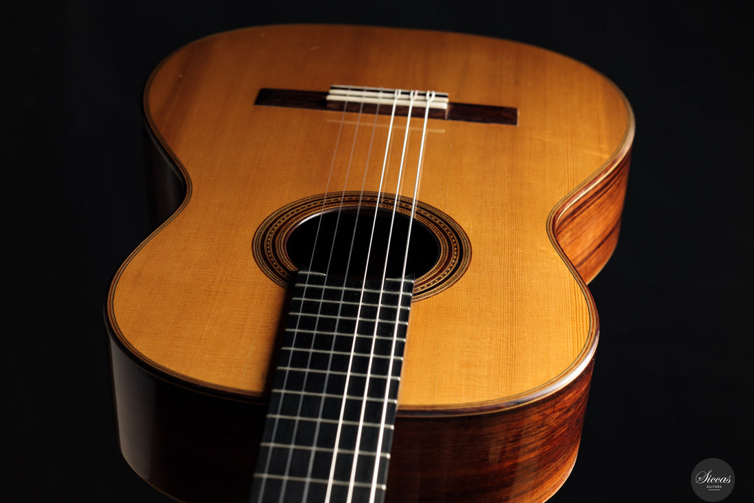 Diese Gitarre von Hermann Hauser® I aus dem Jahr 1928 ist ein seltenes und frühes Beispiel des sogenannten Segovia-Modells, entstanden in der Übergangszeit zu seiner spanisch orientierten Bauweise. Die Kopfplattenform erinnert deutlich an Segovias berühmte Manuel Ramírez von 1912 – eine stilistische wie klangliche Referenz, die sich im gesamten Instrument widerspiegelt. Unter den Instrumenten der 1920er Jahre von Hauser® I gehört dieses zu den ausdrucksstärksten in Bezug auf einen authentisch spanischen Klangcharakter.