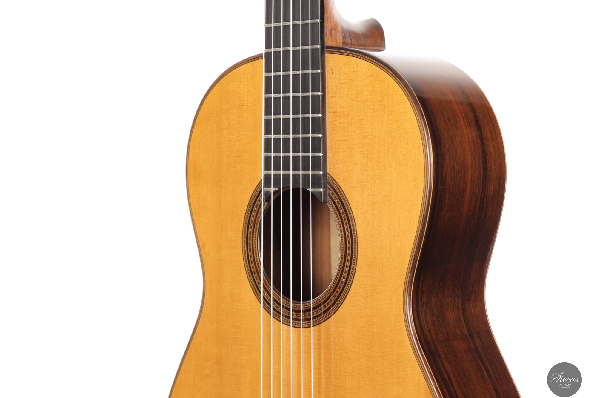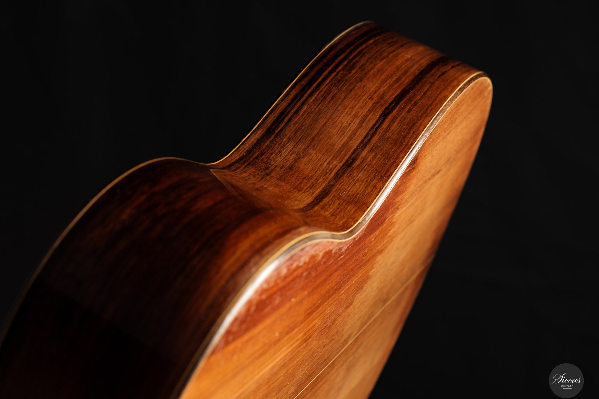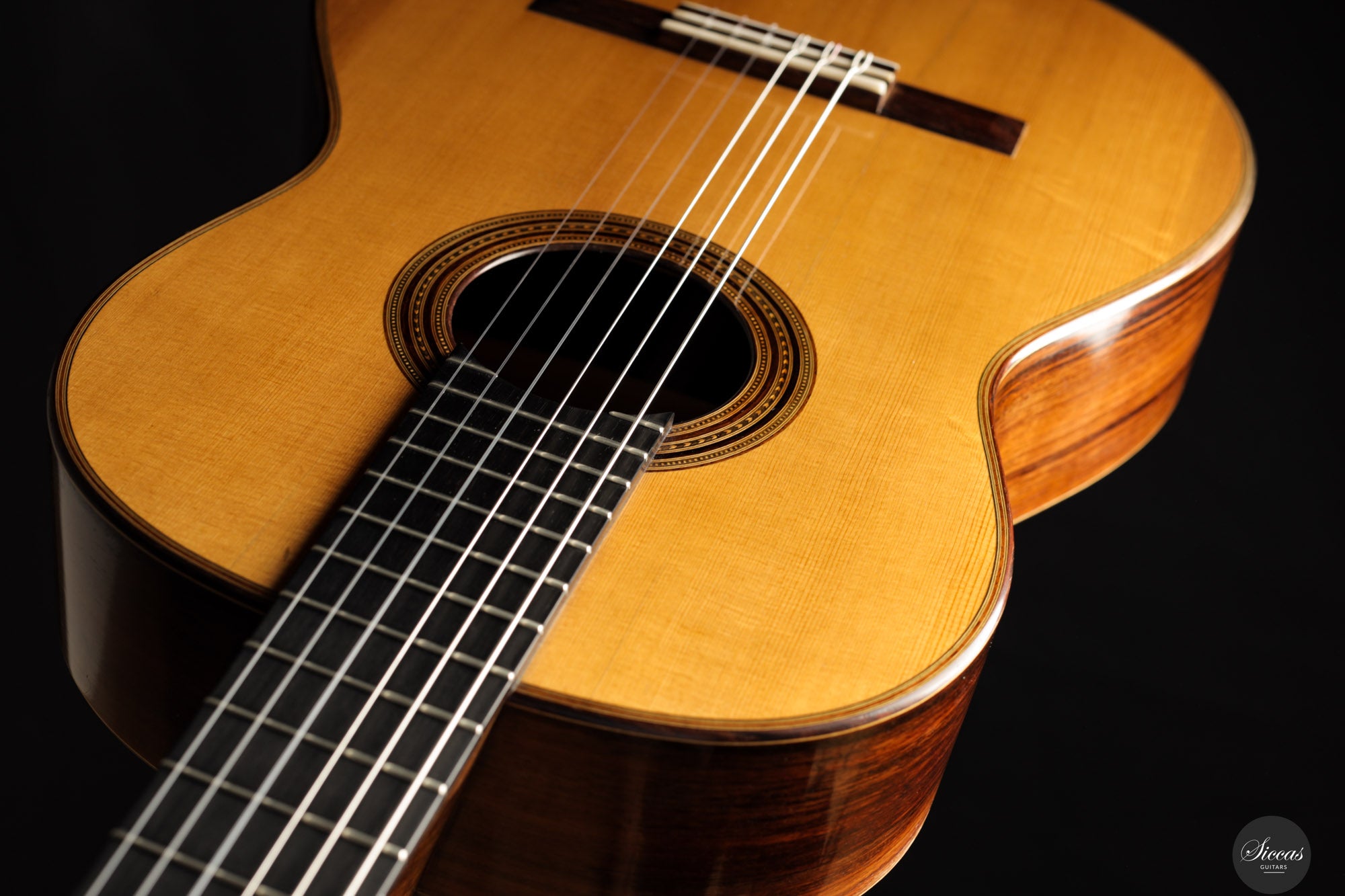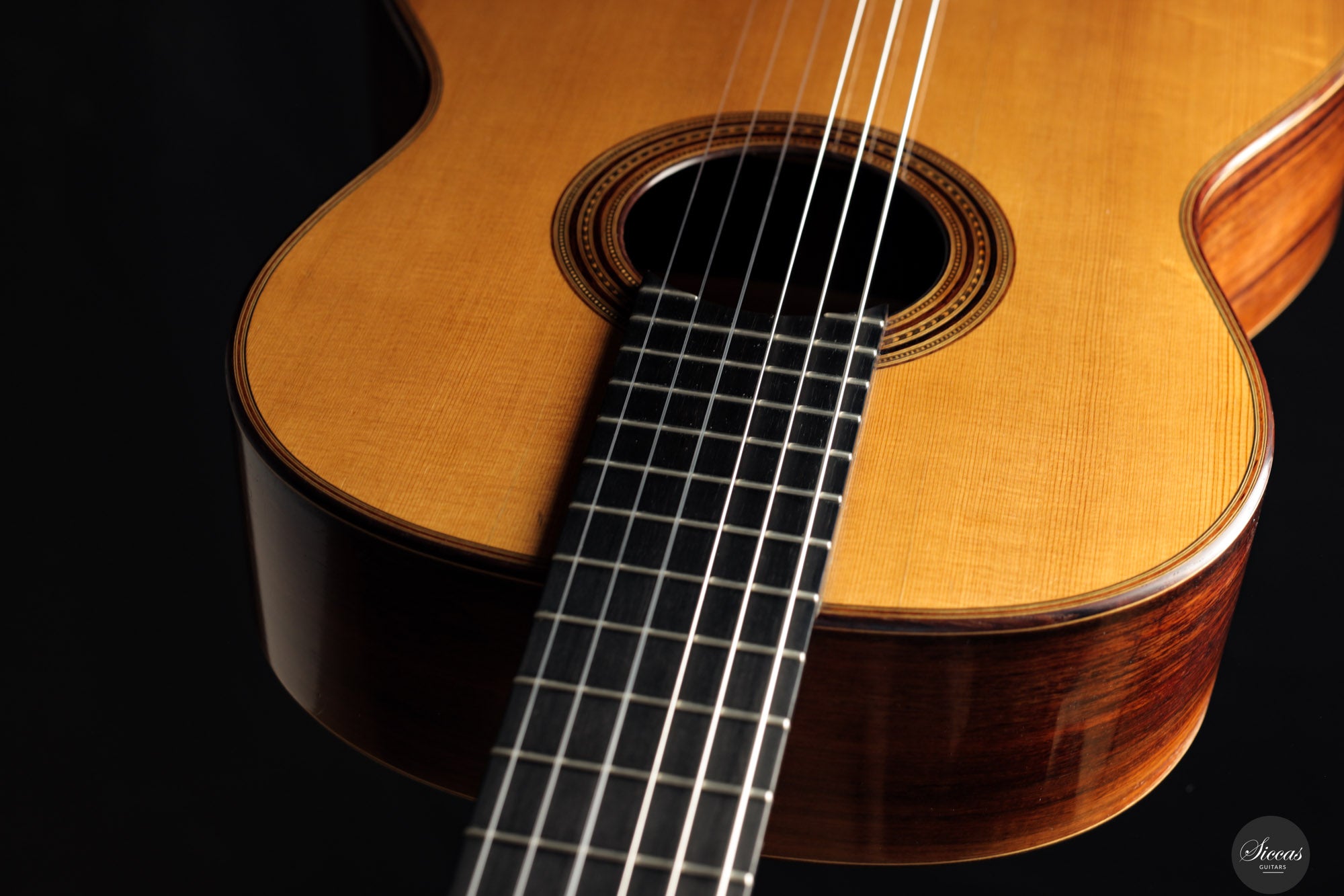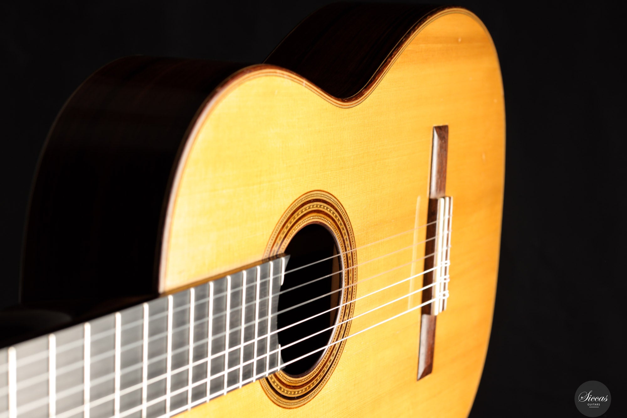Diese Gitarre von Hermann Hauser® I aus dem Jahr 1928 ist ein seltenes und frühes Beispiel des sogenannten Segovia-Modells, entstanden in der Übergangszeit zu seiner spanisch orientierten Bauweise. Die Kopfplattenform erinnert deutlich an Segovias berühmte Manuel Ramírez von 1912 – eine stilistische wie klangliche Referenz, die sich im gesamten Instrument widerspiegelt. Unter den Instrumenten der 1920er Jahre von Hauser® I gehört dieses zu den ausdrucksstärksten in Bezug auf einen authentisch spanischen Klangcharakter.