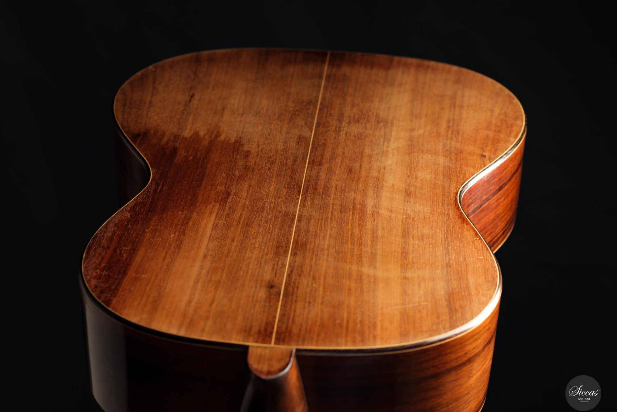 Die Gitarre befindet sich gemessen an ihrem Alter in sehr gutem Zustand. Mehrere Risse an Decke und Boden wurden fachgerecht repariert. Es bestehen keine strukturellen Schäden, und alle Bestandteile, einschließlich der Originalmechaniken, sind funktionstüchtig und stabil.