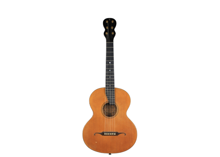 Diese Terz-Gitarre wurde im Jahr 1919 gebaut. Die Wiener Gitarren Hermann Hauser ® I zeichnen sich als besonders leicht zu spielende Instrumente aus. Sie haben einen kräftigen und langanhaltenden Klang. Durch seine Vielfältigkeit kann dieses Instrument sowohl als Soloinstrument als auch kammermusikalisch eingesetzt werden. Die zweiteilige Decke besteht aus Fichte die von dunklen und hellen Einlagen umrandet wird, ebenso wie auch das Schallloch. Der zweiteilige Boden sowie der aus zwei Teilen bestehende Zargen sind aus stark geflammtem Ahorn. Der Kopf ist mit einem deutschen Anschäfter mit dem Hals verbunden. Der Hals ist mit dem Korpus verschraubt und individuell einstellbar. Das Griffbrett besitzt einen Nullbund und reicht schwebend bis über das Schallloch.