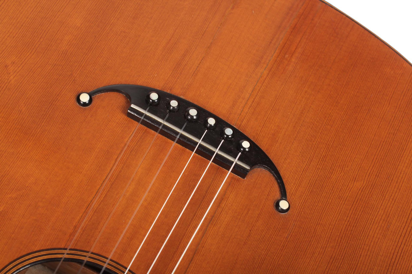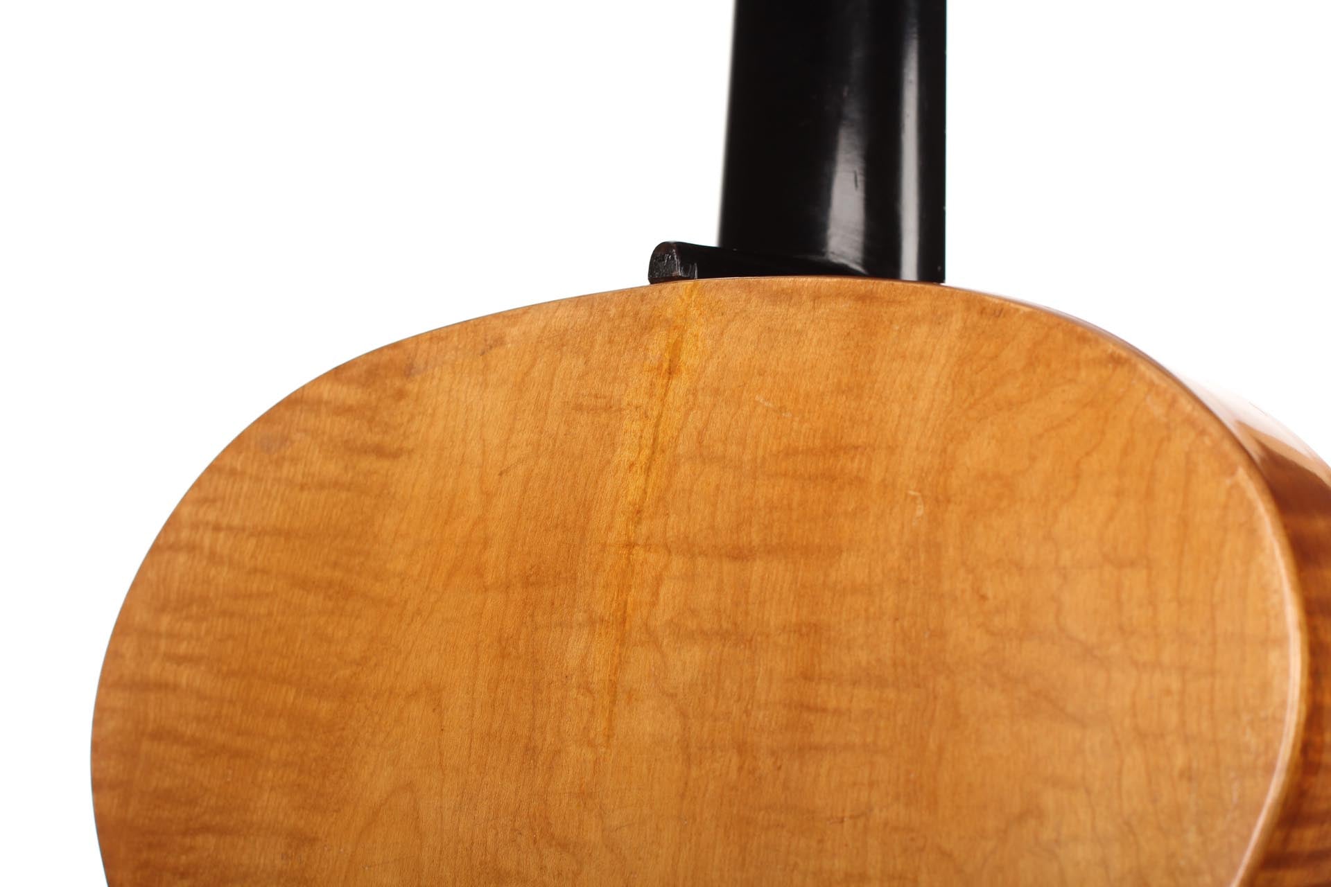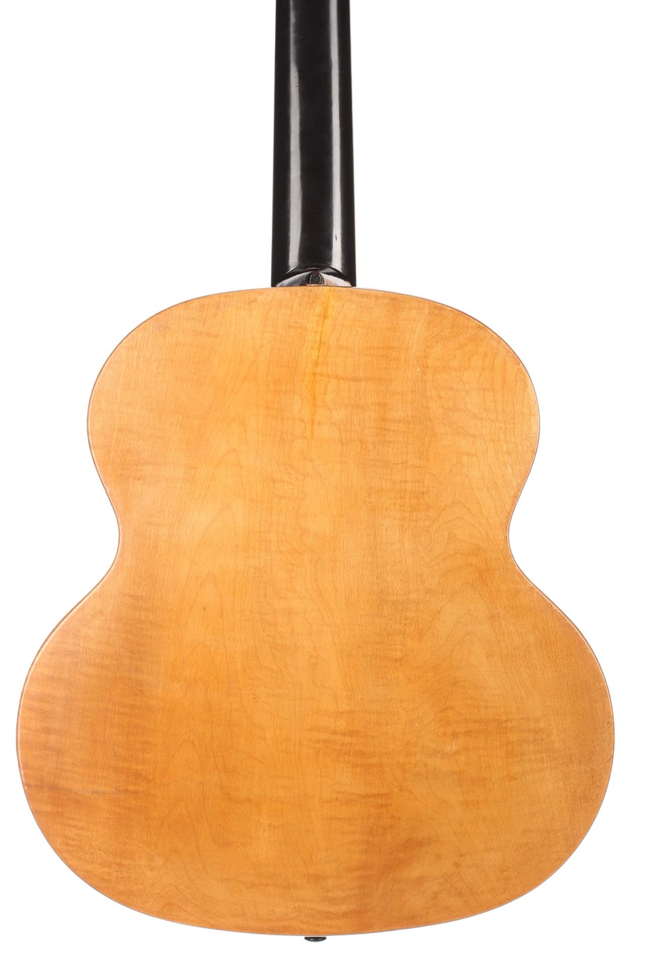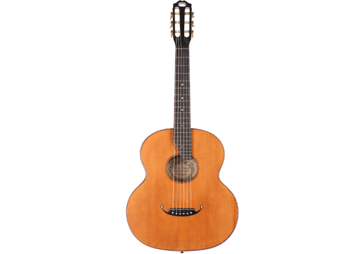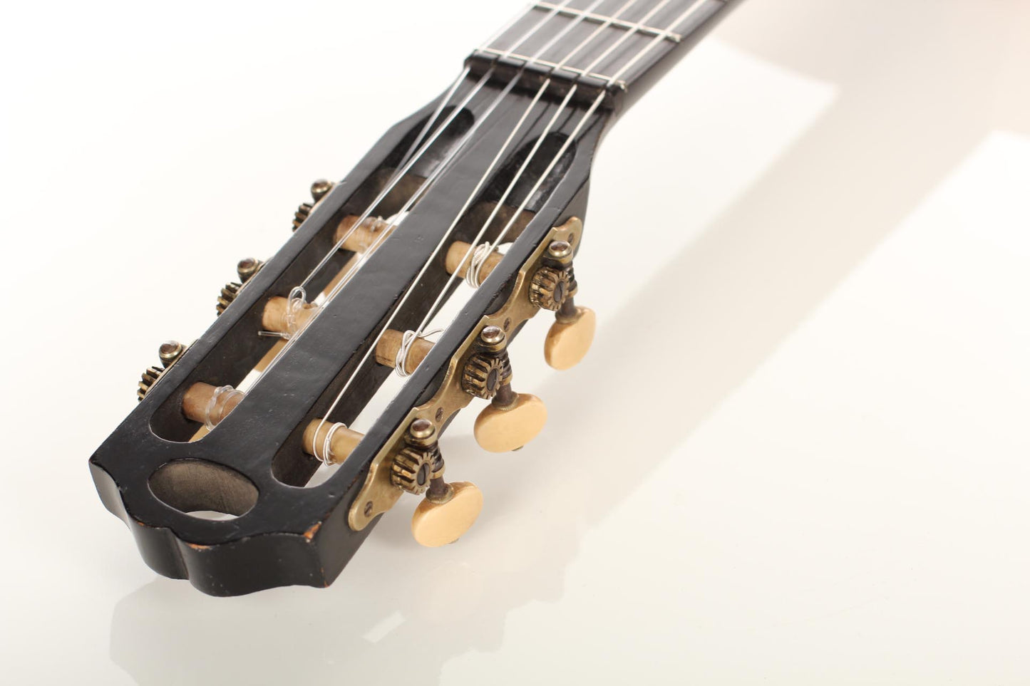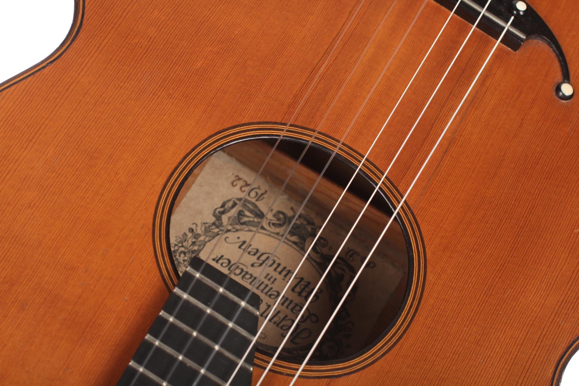 Diese Terz-Gitarre wurde im Jahr 1922 gebaut. Die Wiener Gitarren Hermann Hauser ® I zeichnen sich als besonders leicht zu spielende Instrumente aus. Sie haben einen kräftigen und langanhaltenden Klang. Durch seine Vielfältigkeit kann dieses Instrument sowohl als Soloinstrument als auch kammermusikalisch eingesetzt werden. Die einteilige Decke besteht aus Fichte die von dunklen und hellen Einlagen umrandet wird, ebenso wie auch das Schallloch. Der zweiteilige Boden sowie der aus zwei Teilen bestehende Zargen sind aus stark geflammtem Ahorn. Der Kopf ist mit einem deutschen Anschäfter mit dem Hals verbunden. Der Hals ist mit dem Korpus verschraubt und individuell einstellbar. Das Griffbrett besitzt einen Nullbund und reicht schwebend bis über das Schallloch. Die weist Reparturen auf der Decke und dem Boden auf. Die originalen Mechaniken sind von Reischl-Landstorfer.