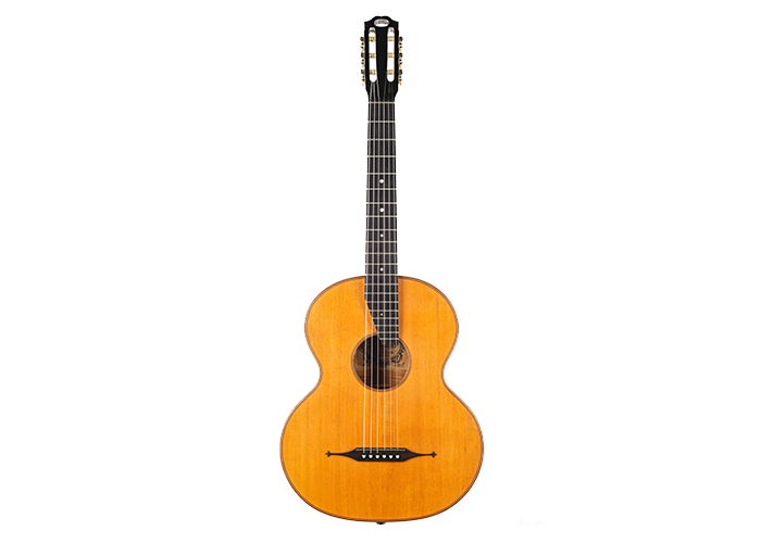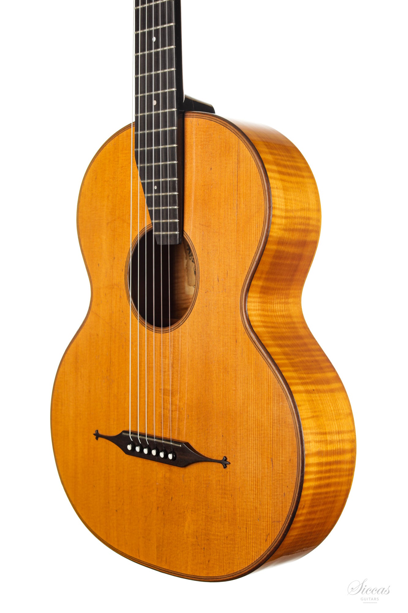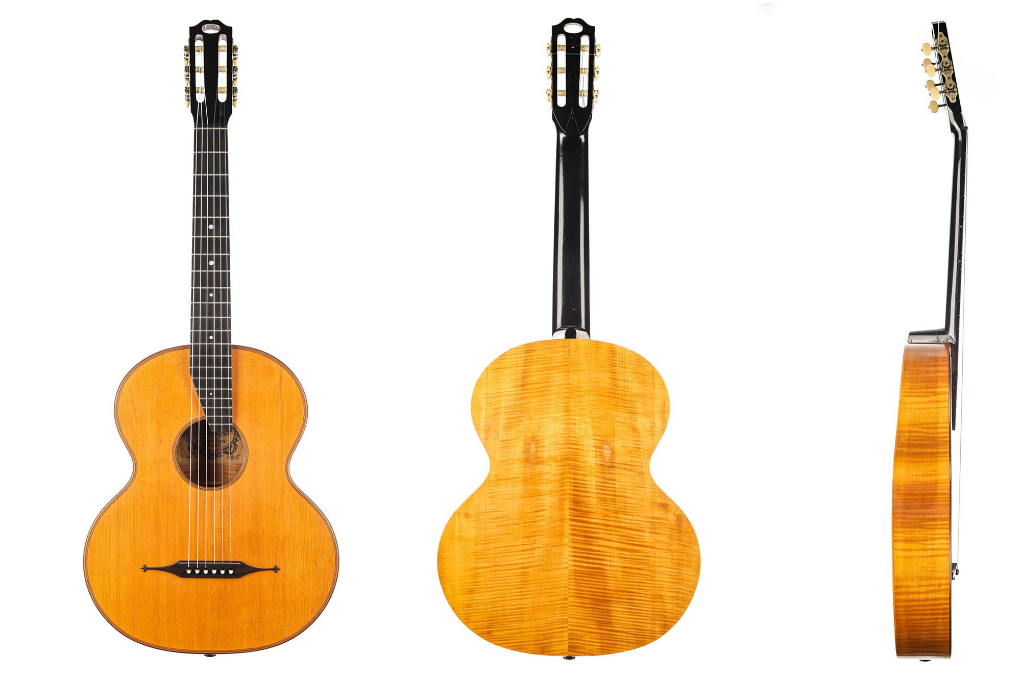 This superb romantic guitar has a big voice. The clarity of sound, impressive power, and transparency in the phrasing make it a truly charismatic and fascinating instrument. Whether for a collector, studio recording, concerts on period instruments, or simply to play at home, this charming and complex instrument will captivate the musician.