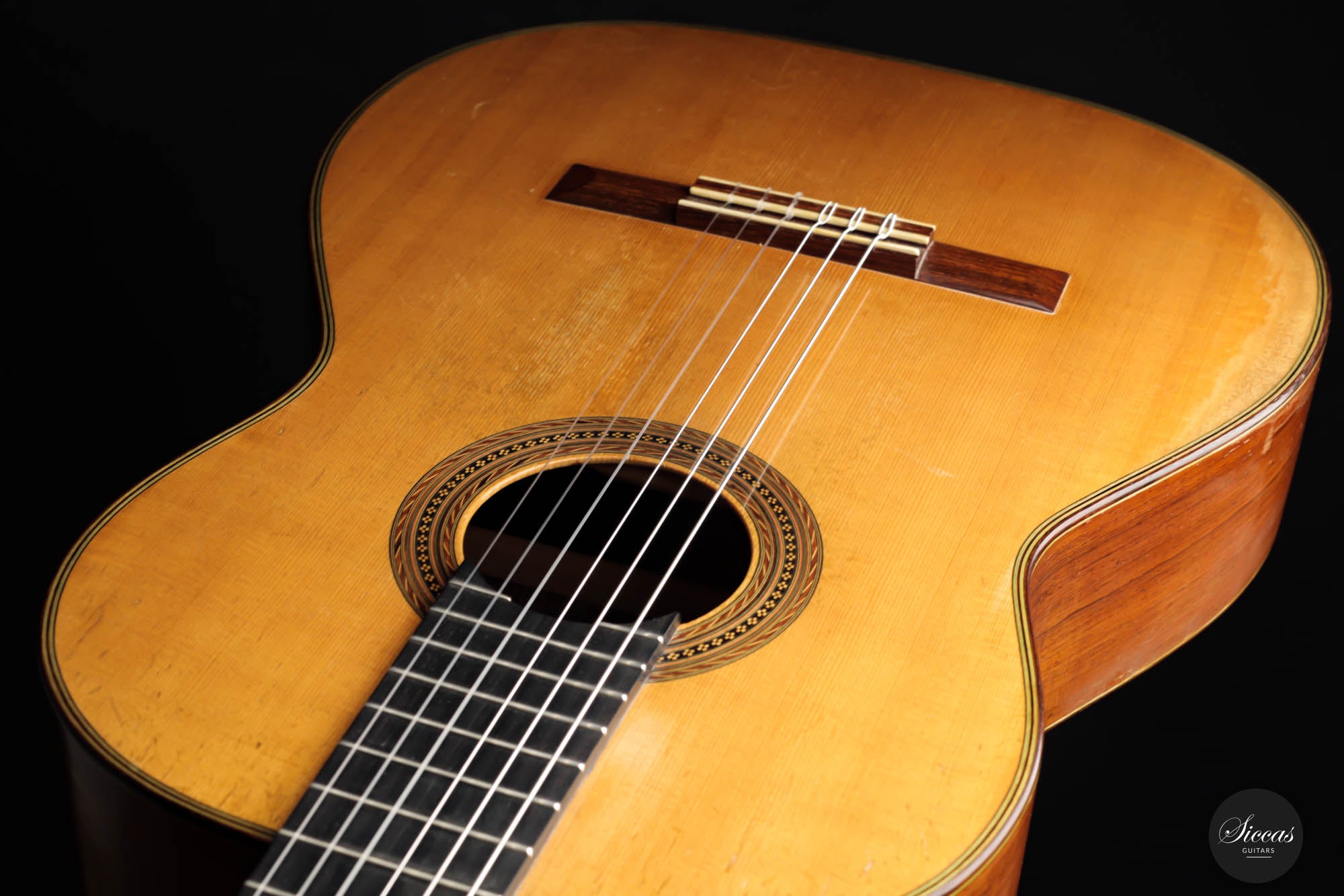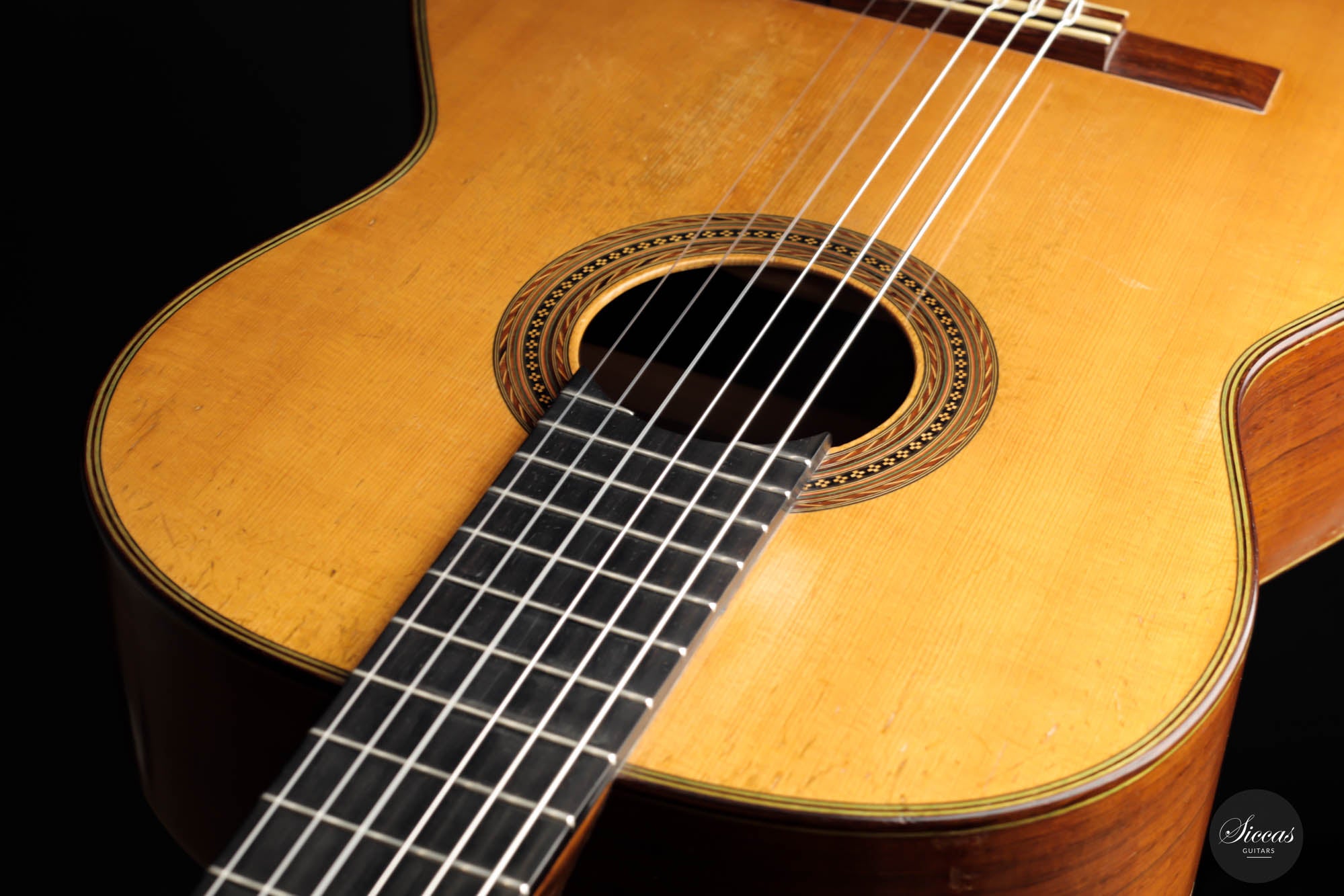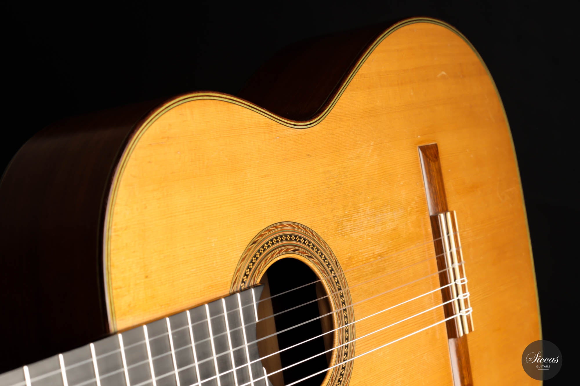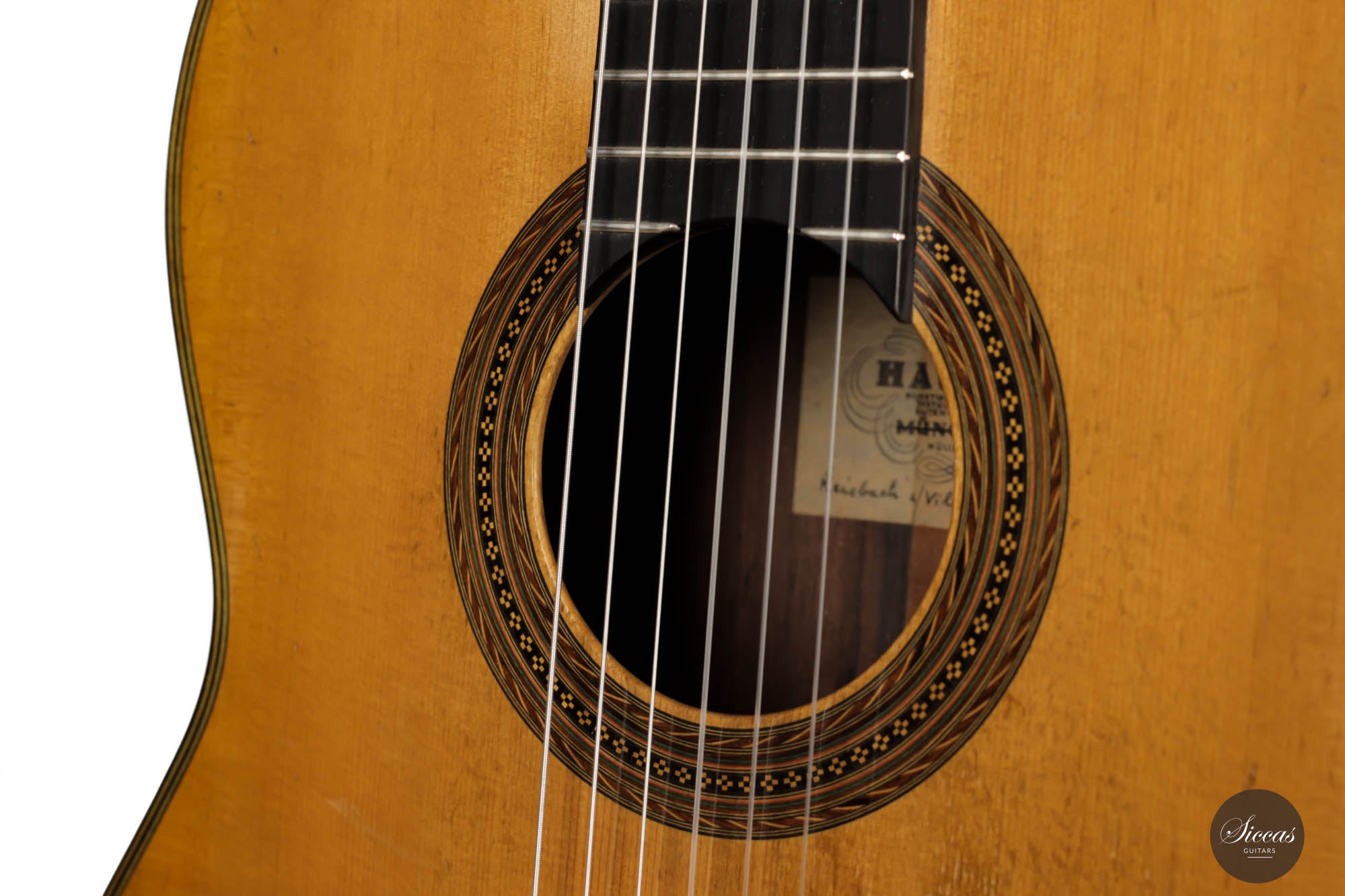 This outstanding instrument is a great example of the work of Hermann Hauser II, considered one of the most important luthiers of the twentieth century. It has a very clear and bell-like fundamental sound with exceptionally good separation. Moreover, this guitar is characterized by its particularly lyrical, warm, and charming trebles combined with deep and focused basses. The honey-colored spruce top and back and sides made of the finest Indian rosewood complete the elegance of this guitar's appearance.