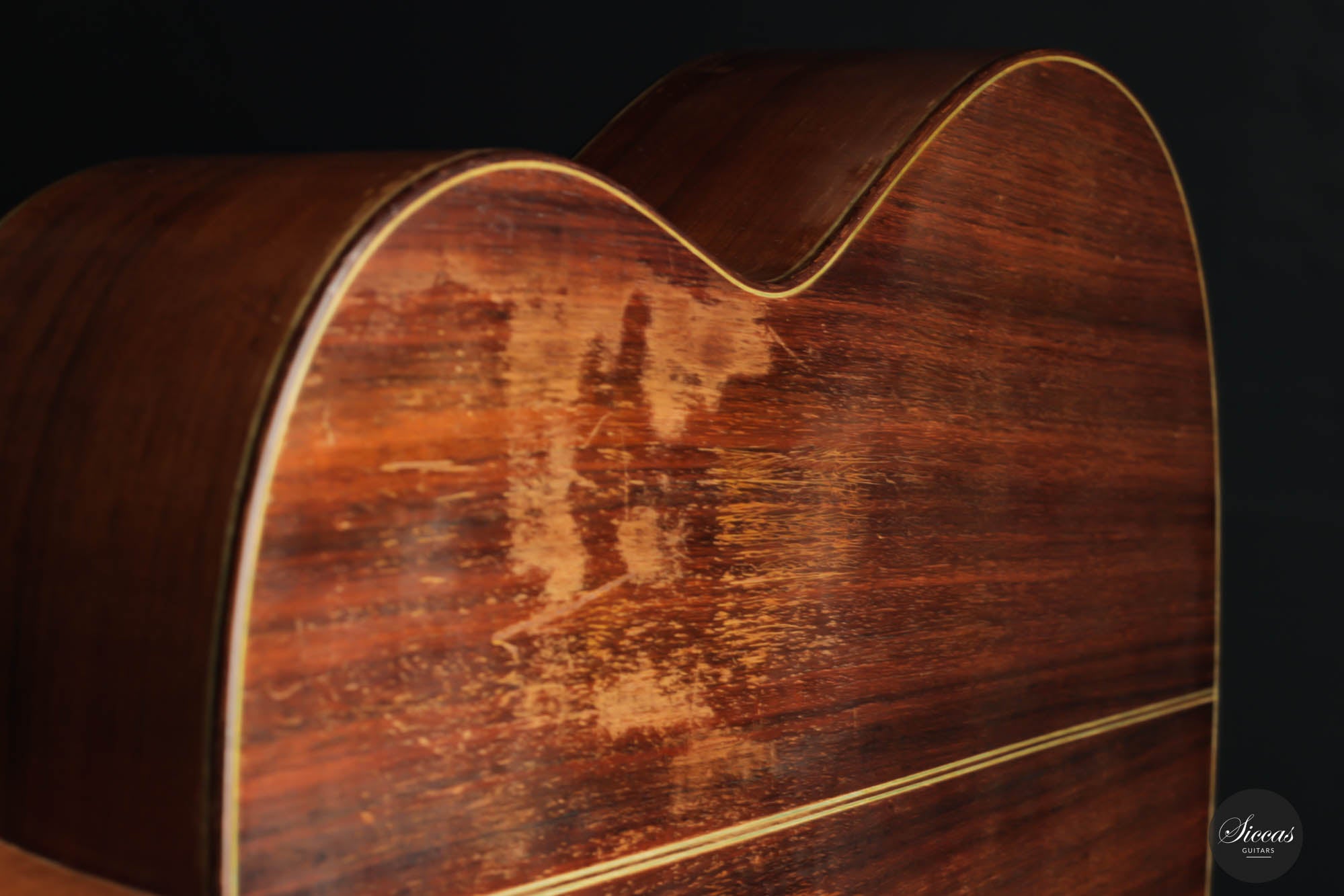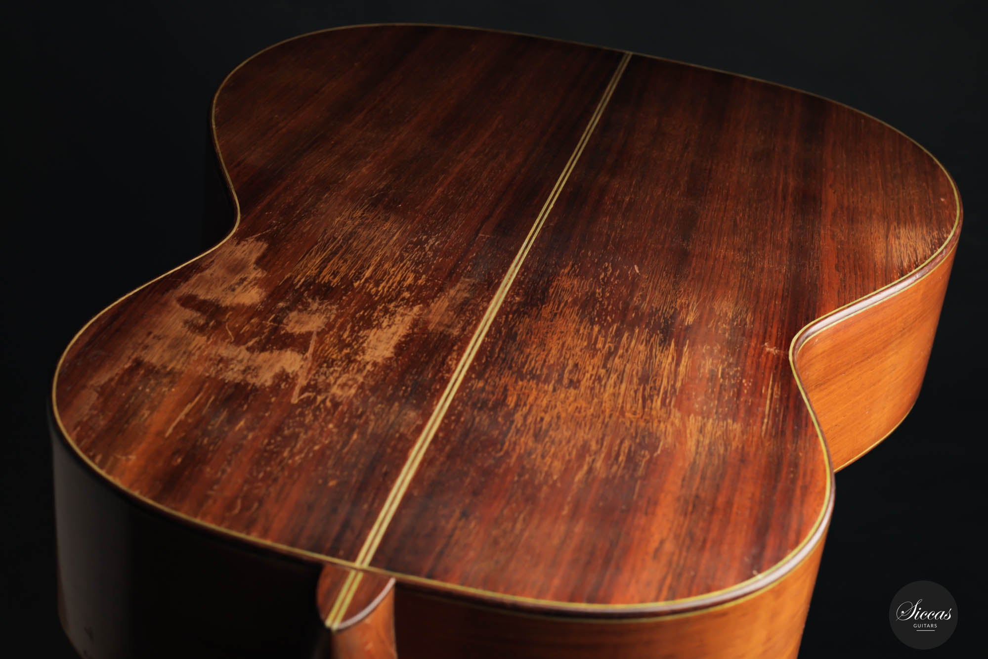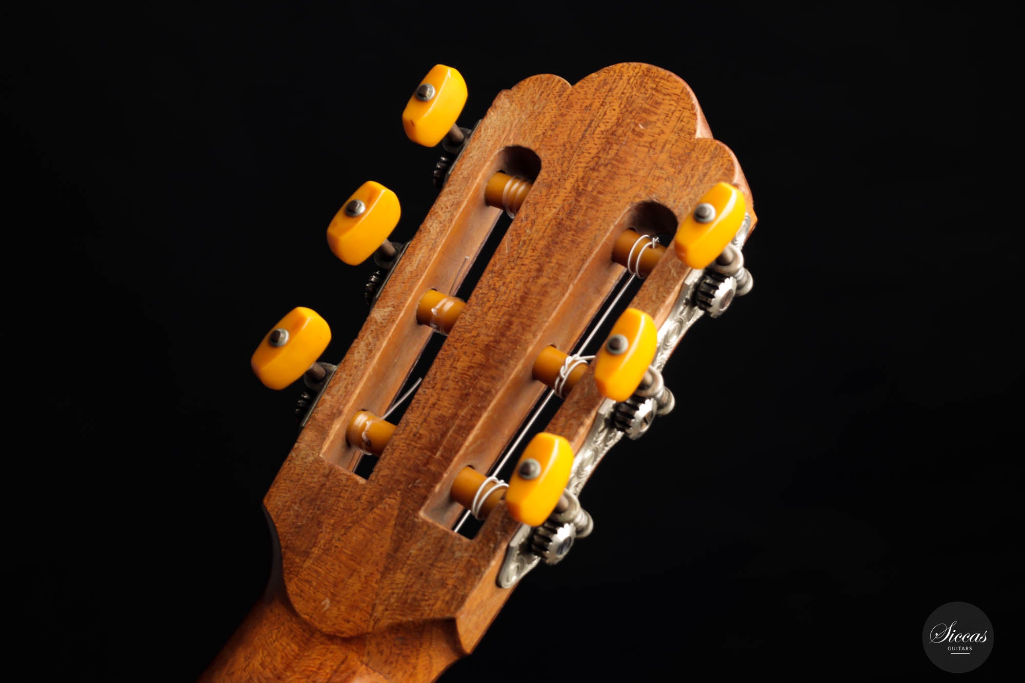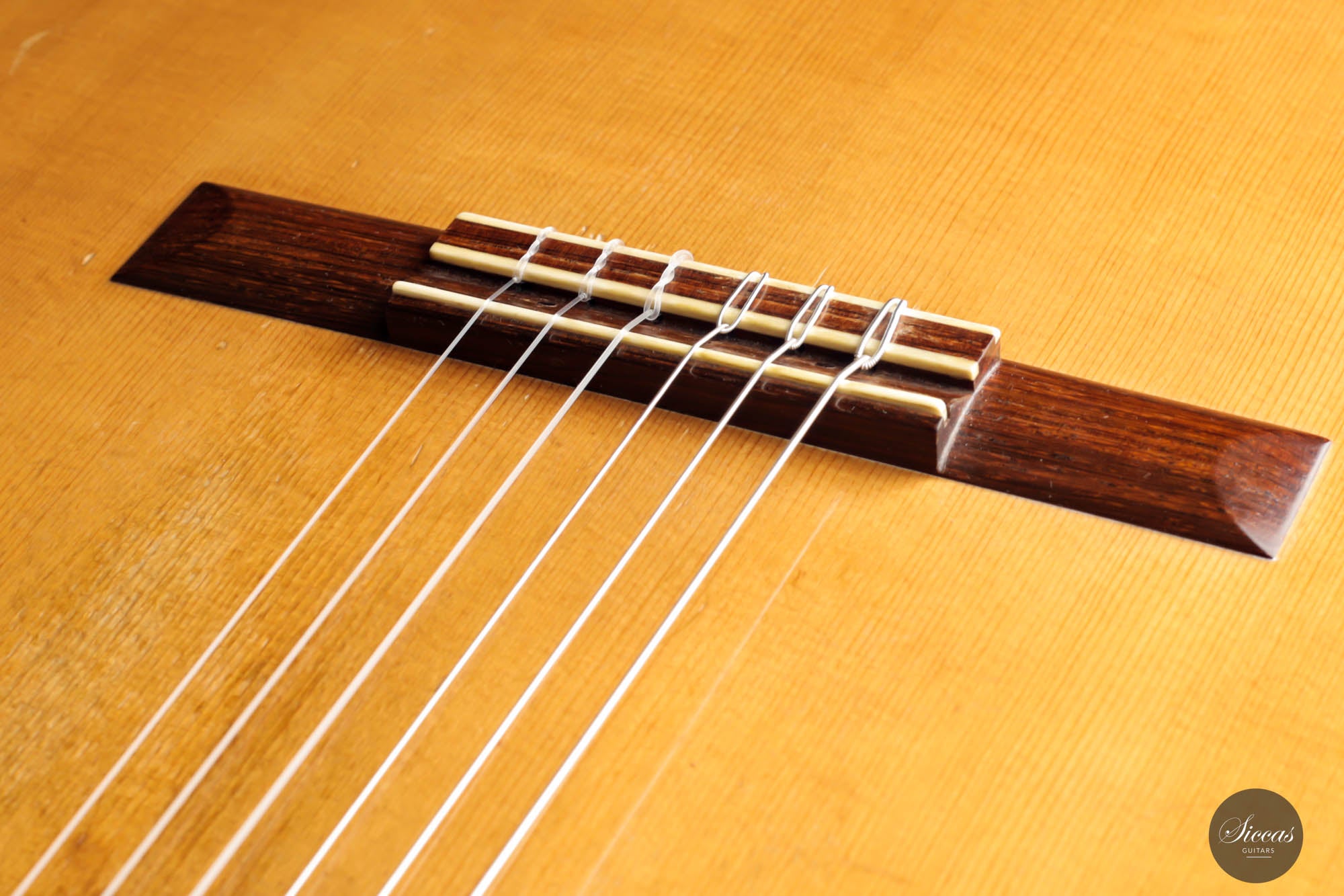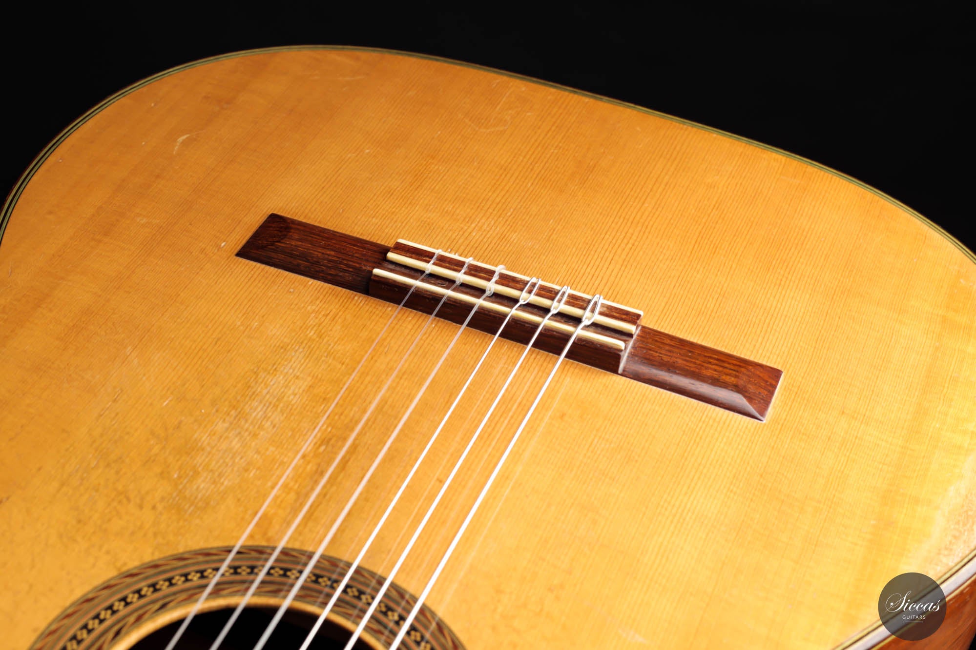 This outstanding instrument is a great example of the work of Hermann Hauser II, considered one of the most important luthiers of the twentieth century. It has a very clear and bell-like fundamental sound with exceptionally good separation. Moreover, this guitar is characterized by its particularly lyrical, warm, and charming trebles combined with deep and focused basses. The honey-colored spruce top and back and sides made of the finest Indian rosewood complete the elegance of this guitar's appearance.