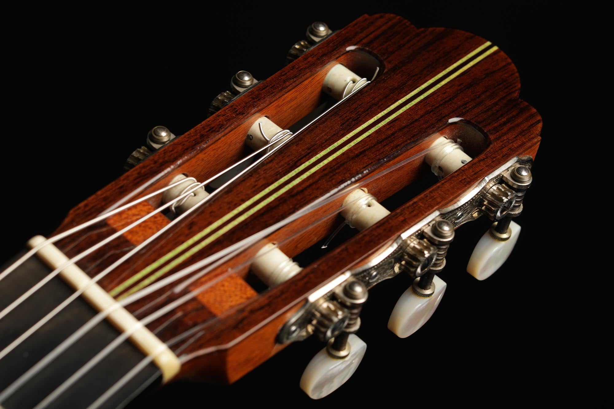 This pristine and perfectly preserved Hermann Hauser ® II from 1976 is an extremely well-preserved example of the German master's finest guitars. The guitar is in mint condition and there are no traces of playing or cracks to be found on the entire instrument. It has a magnificent rosette with red and green marquetry and the varnish is also the original. From the fine carvings of the headstock to the flawless inlays, everything is of the highest quality craftsmanship. A true work of art.