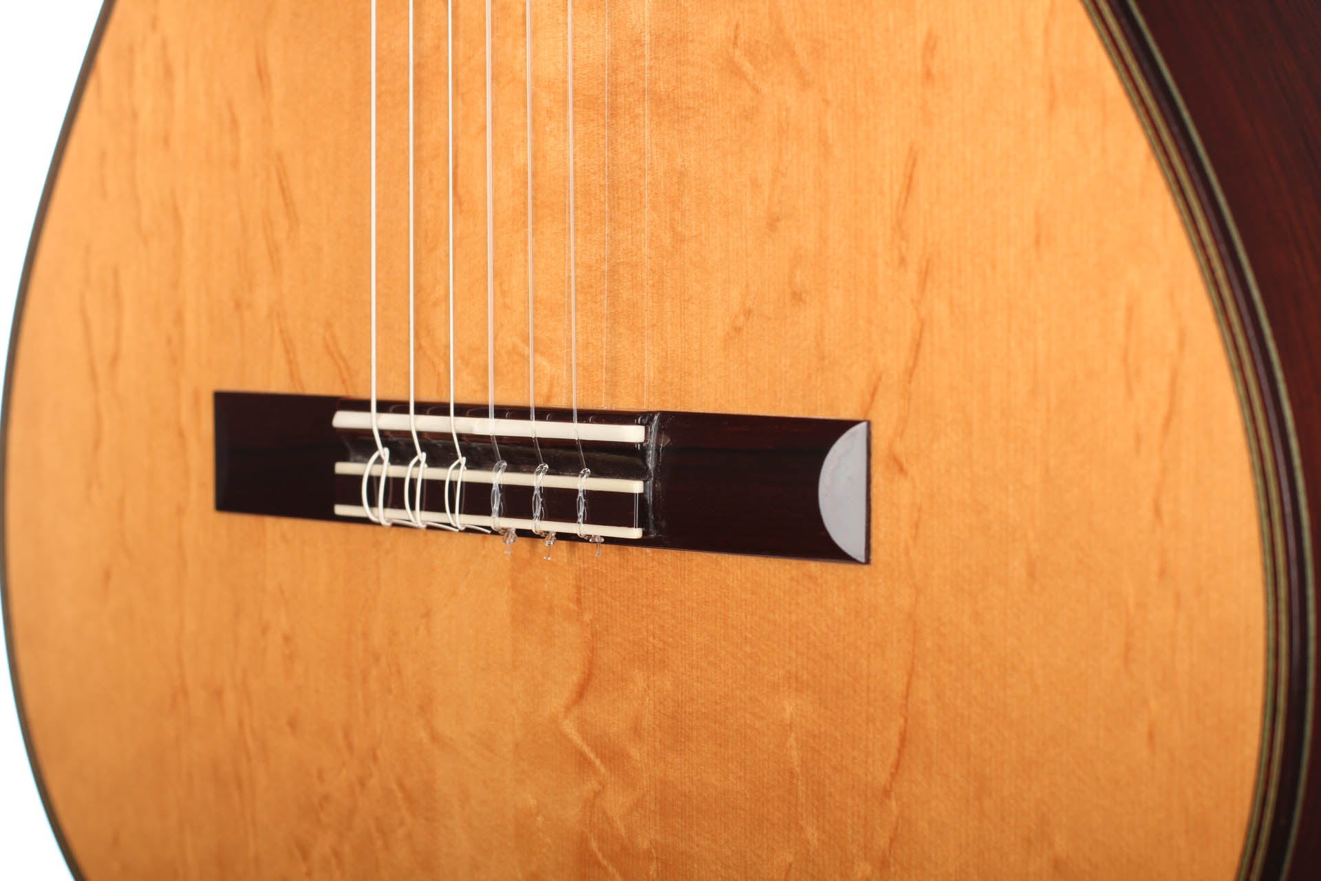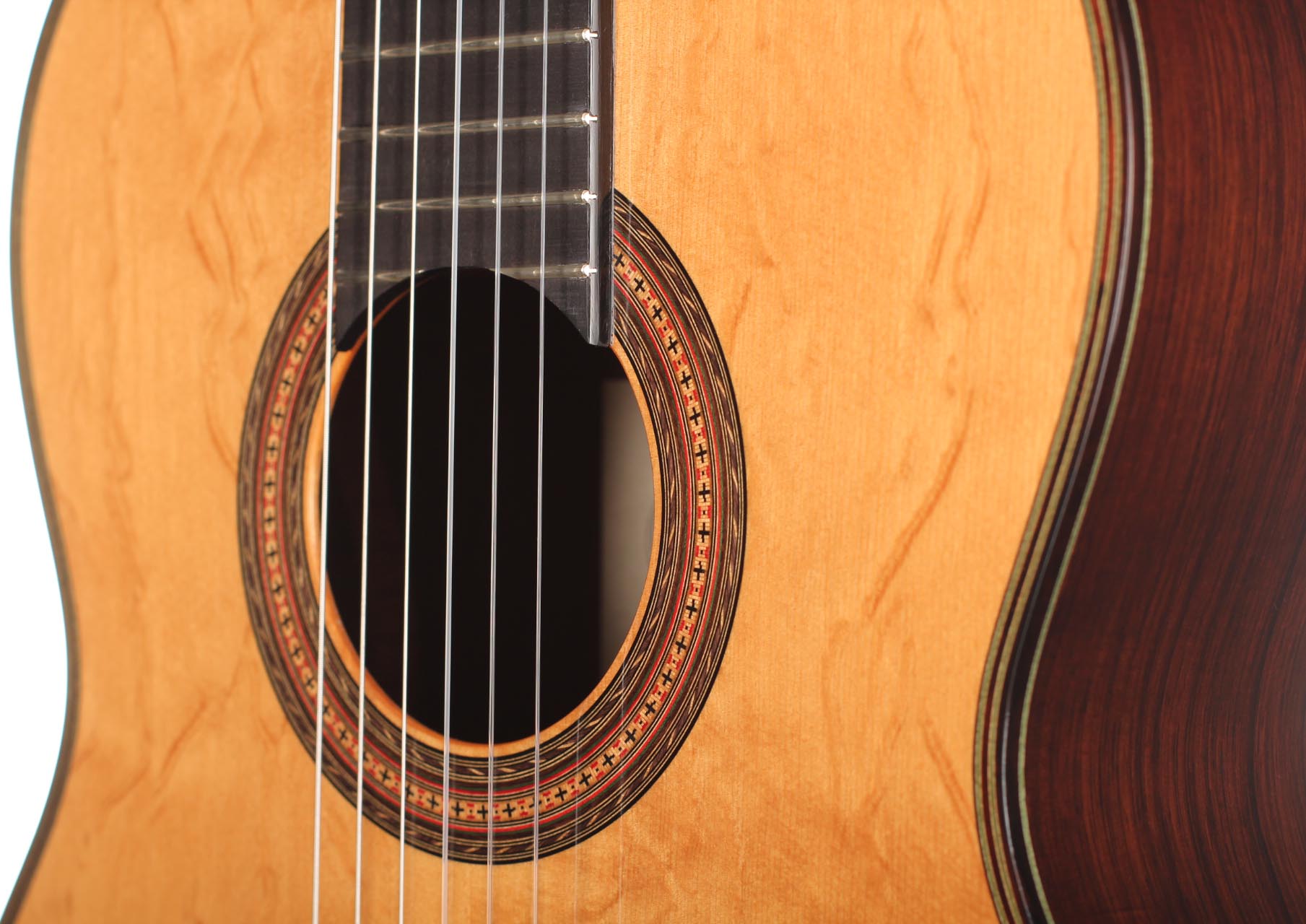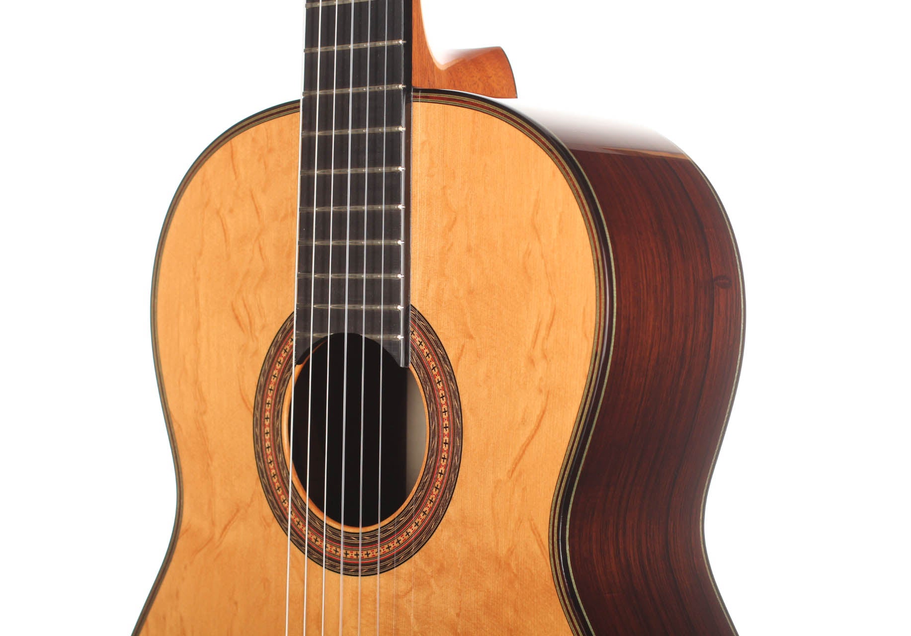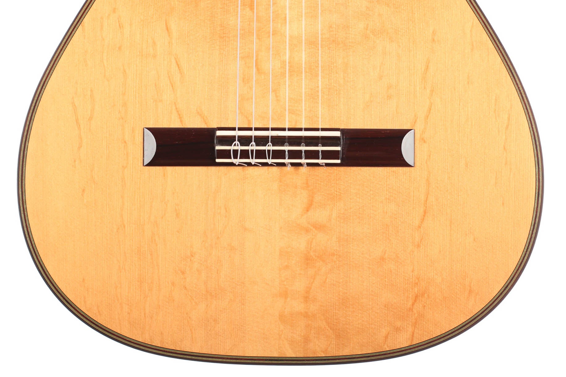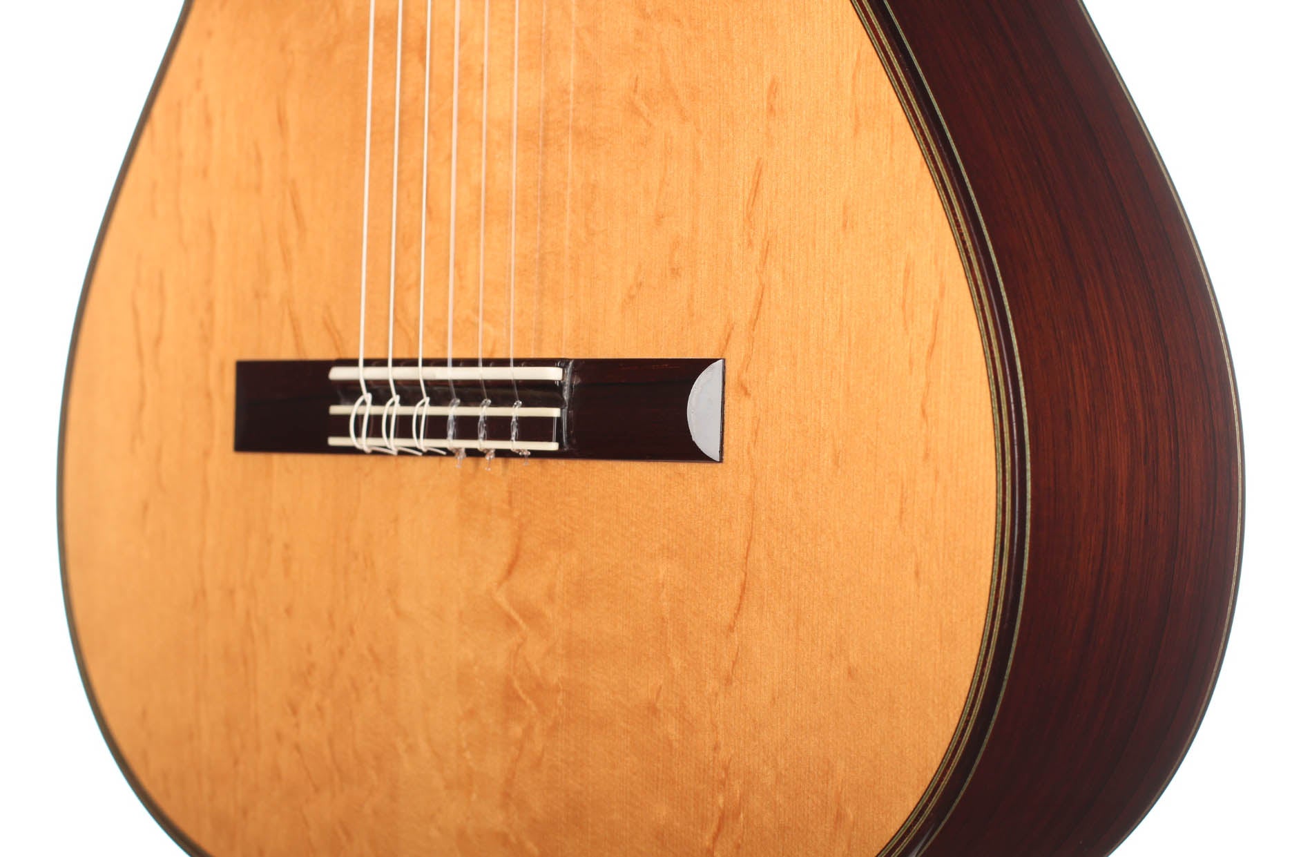 Die klassische Gitarre mit ihren weichen Nylonsaiten und ihrem charakteristischen Timbre ist zum Symbol der Kammermusik, der spanischen Tradition und des Konzertrepertoires geworden. Ihre moderne Form prägte Antonio de Torres im 19. Jahrhundert, indem er den Standard für Korpus, Fächerbeleistung und die 65-Zentimeter-Mensur setzte, die bis heute verwendet werden. Instrumente dieser Kategorie eröffnen eine reiche Palette von den feinen romantischen Miniaturen Tárregas bis zu den majestätischen Konzerten Rodrigos. Hier finden Sie Gitarren, die historische Kontinuität bewahren und zugleich zu neuen Interpretationen anregen.