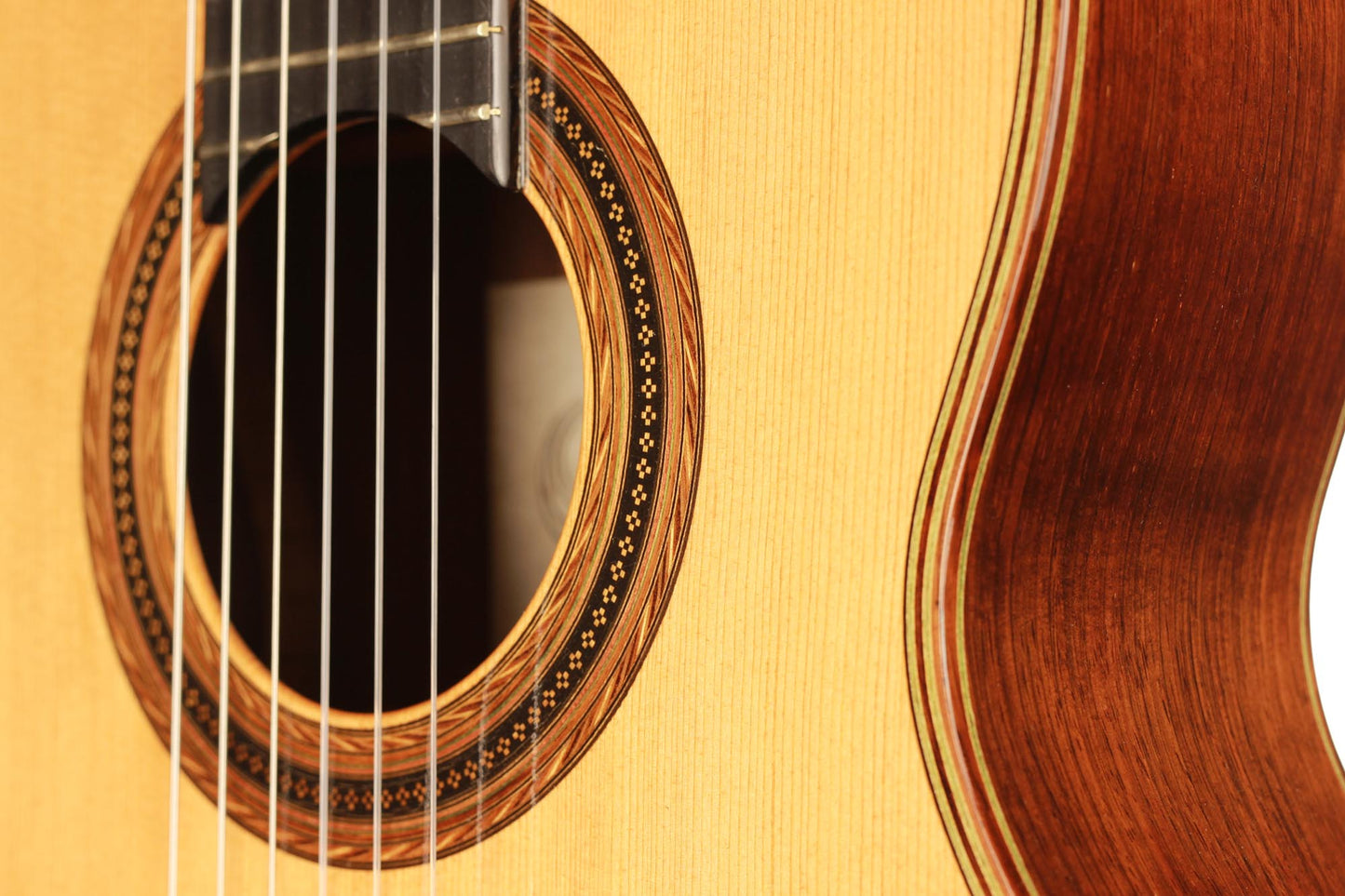 Die klassische Gitarre mit ihren weichen Nylonsaiten und ihrem charakteristischen Timbre ist zum Symbol der Kammermusik, der spanischen Tradition und des Konzertrepertoires geworden. Ihre moderne Form prägte Antonio de Torres im 19. Jahrhundert, indem er den Standard für Korpus, Fächerbeleistung und die 65-Zentimeter-Mensur setzte, die bis heute verwendet werden. Instrumente dieser Kategorie eröffnen eine reiche Palette von den feinen romantischen Miniaturen Tárregas bis zu den majestätischen Konzerten Rodrigos. Hier finden Sie Gitarren, die historische Kontinuität bewahren und zugleich zu neuen Interpretationen anregen.Alle Produkte der Kollektion ansehen -
