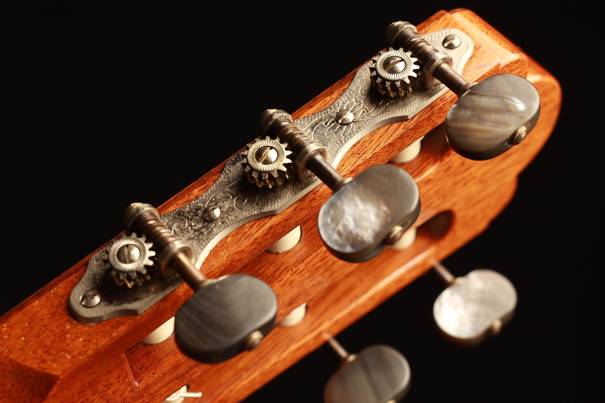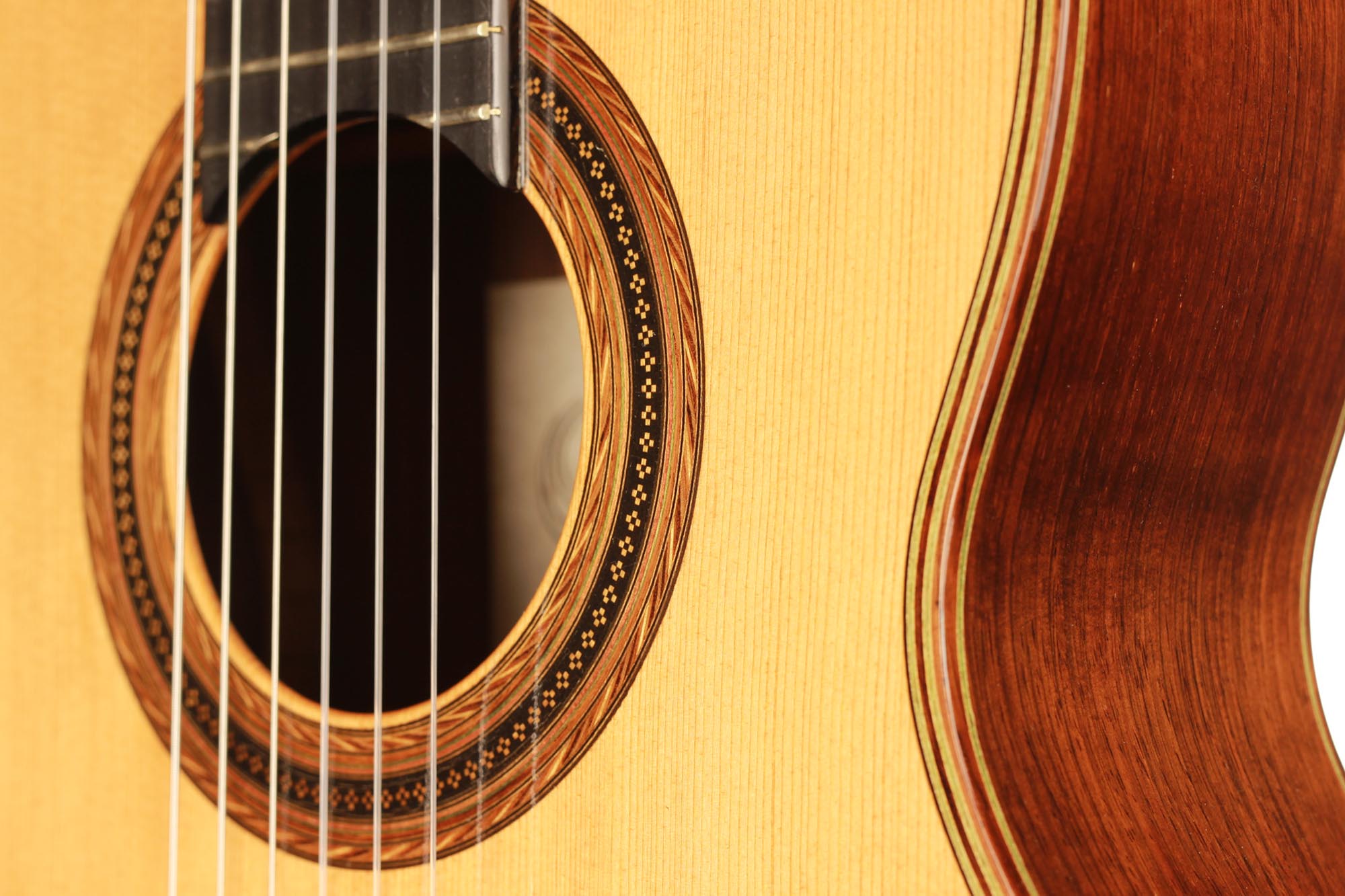 Diese 1993 von Hermann Hauser ® III gebaute Terzgitarre hat ähnliche Qualitäten wie eine Konzertmodell aus der Hauser ®werkstatt. Zusätzlich zu ihrem ohnehin schon unvergleichlich reichen Klang verfügt sie über einen sehr reaktionsschnellen und brillanten Charakter. Die Möglichkeiten der Klangfarben, die dieses Instrument bietet, sind hervorragend und die Spielbarkeit ist perfekt. Es ist ein einzigartiges Instrument mit einem erstaunlichen Klangcharakter.