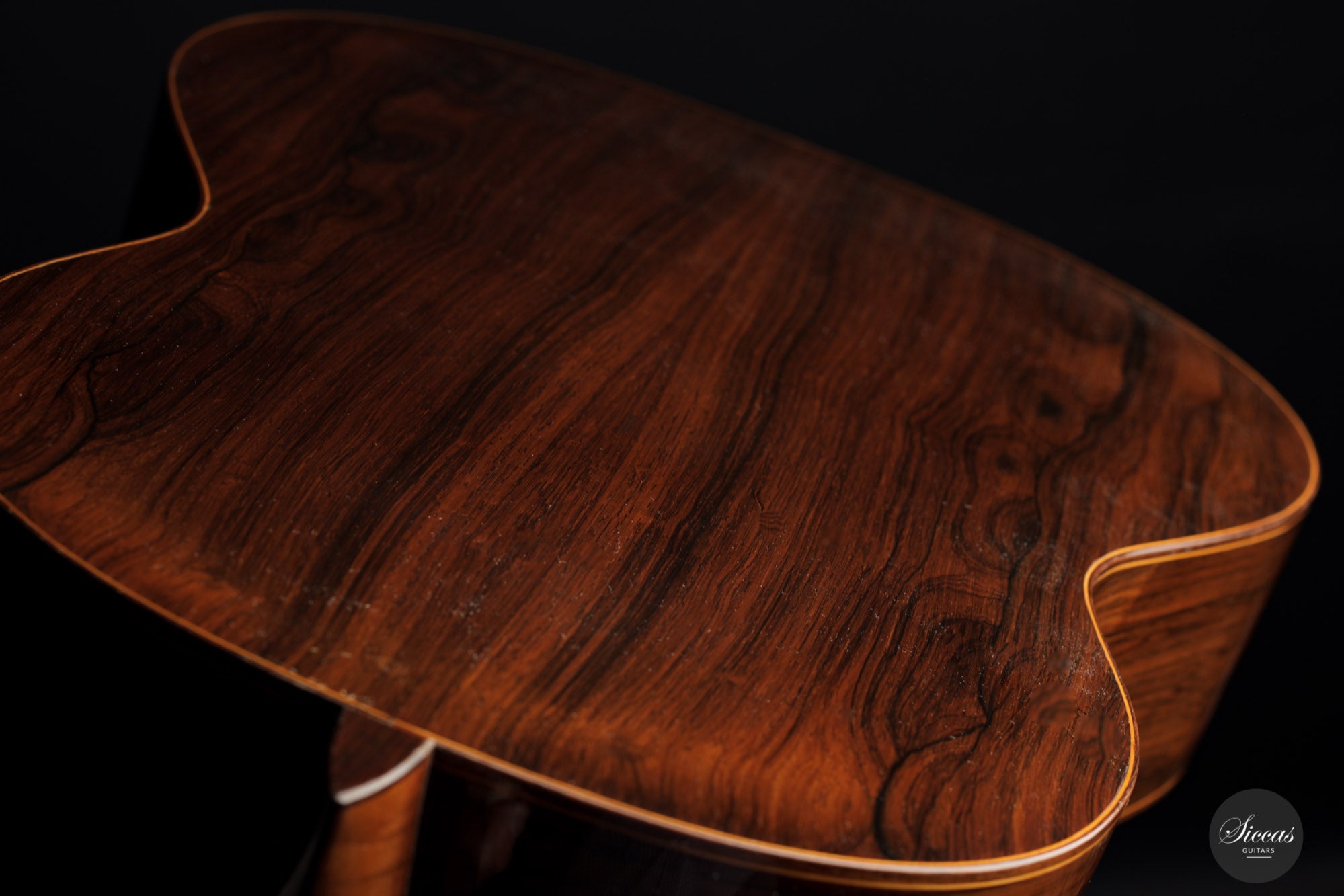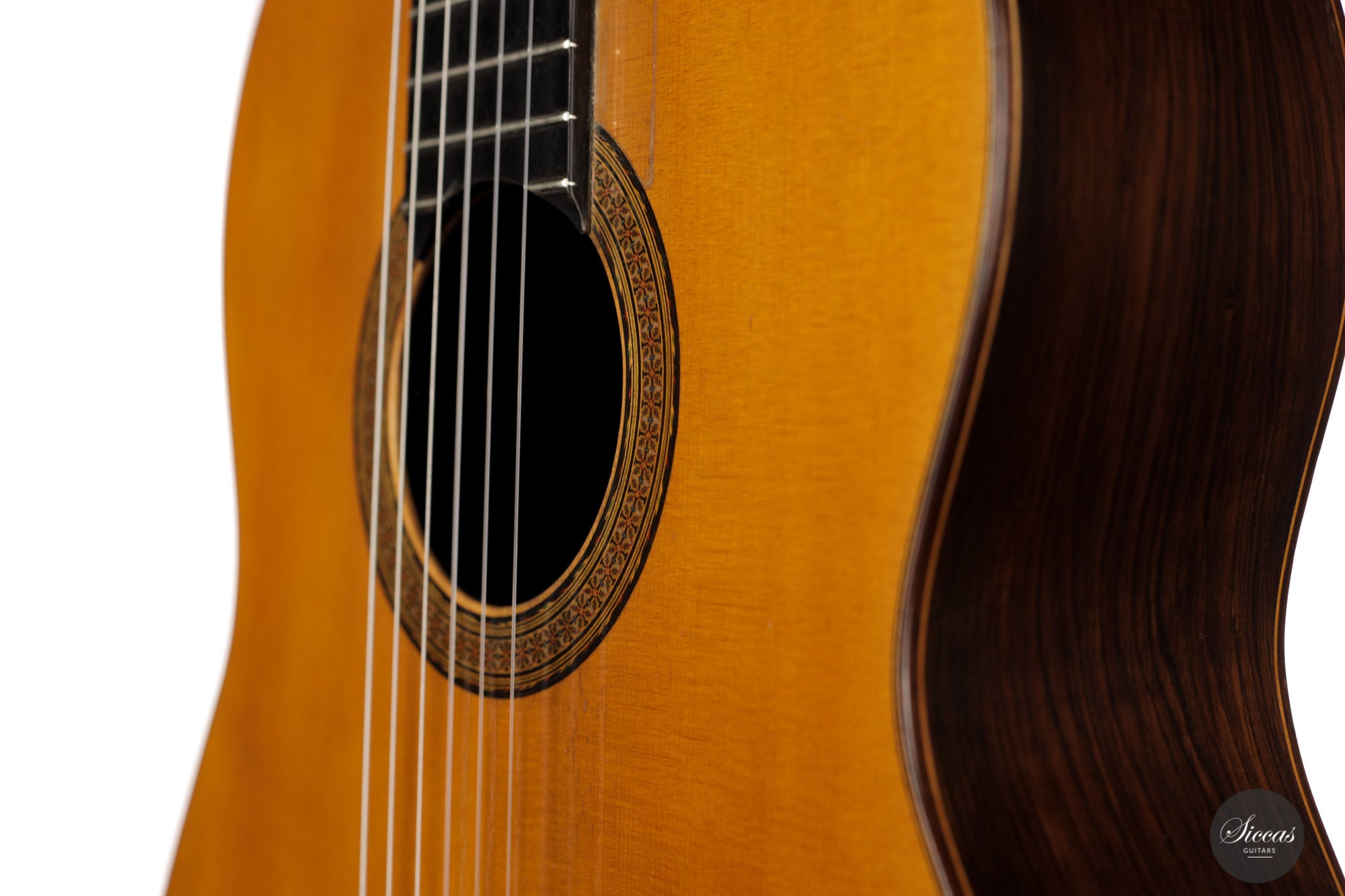 This most impressive guitar with spruce top and Brazilian rosewood back and sides (CITES certified) from 1961, number 193, belonged to Regino Sainz de la Maza. It bears the maestro's initials engraved on the headstock, making it probably Hernandez y Aguado's most remarkable and important guitar. Regino Sainz de la Maza (1896-1981) was a world-famous Spanish guitarist to whom the composer Joaquin Rodrigo dedicated his most famous work, the Concierto de Aranjuez, which was premiered by Sainz de la Maza in 1940.