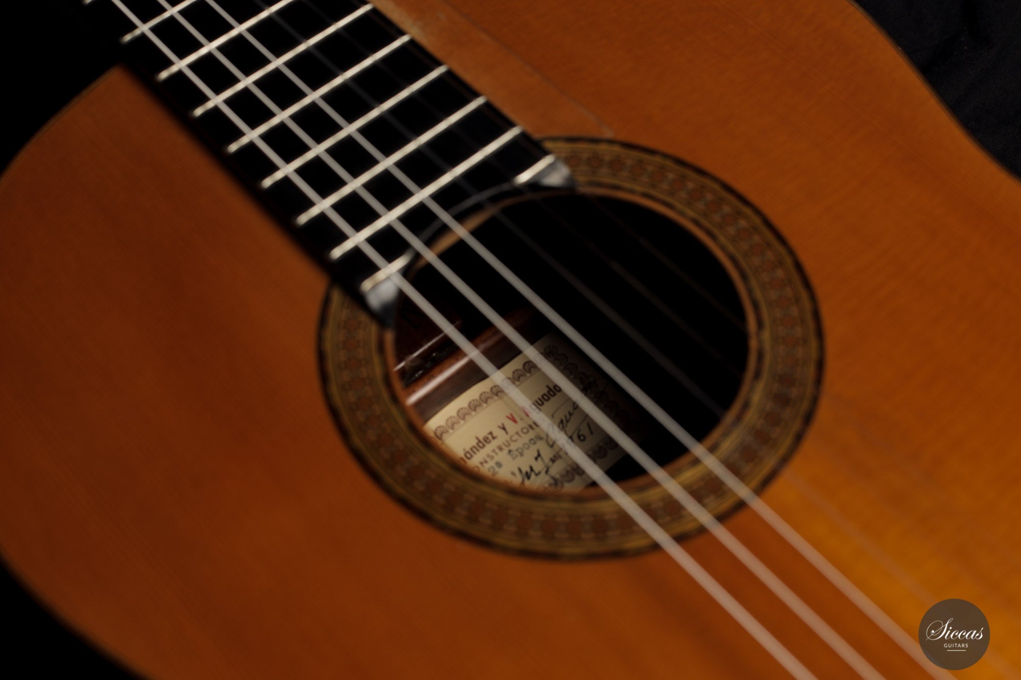 The two friends Santiago Diaz Martinez, better known as Manuel Hernandez, and Victoriano Aguado Rodriguez got to know each other while working together in a piano factory. After the factory closed, they founded their own company that initially focused on the restoration of furniture and pianos. They built their two first guitars privately between 1945 and 1948, which were also played and examined by Regio Sainz de la Maza. This was a very encouraging experience and the two friends decided to keep on building guitars. In 1948 Modesto Borreguero, who had worked in the workshop of the famous luthier Manuel Ramirez, joined Manuel Hernandez and Victoriano Aguado Rodriguez, and they started to increasingly focus on the making of guitars – with huge success. Famous artists, such as John Williams, Julian Bream, and Atahualpa Yupanqui played „HyA“guitars. With a total production of only 356 guitars, Hernandez y Aguado instruments are among the rarest and most sought-after guitars made in the twentieth century.