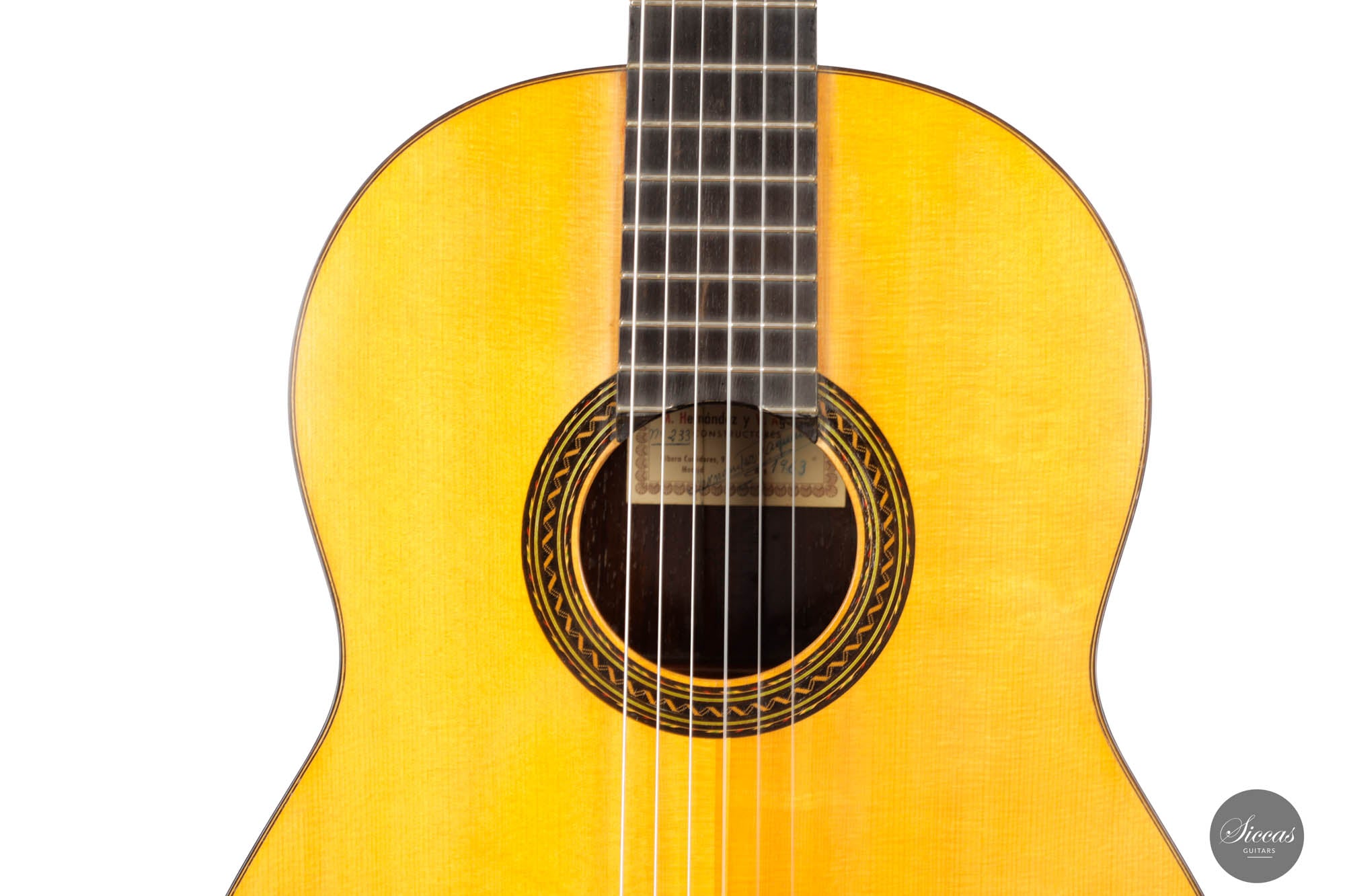 Manuel Hernandez, gebürtig Santiago Diaz Martinez, wurde 1895 in Valmojado, nahe Toledo, geboren. Nur zwei Jahre später, 1897, wurde Victoriano Aguado Rodriguez in Madrid geboren. Ihre Wege kreuzten sich in Madrid, wo sie in einer Klavierfabrik arbeiteten. Ihre tiefe Freundschaft führte zur Gründung eines eigenen Unternehmens, das sich ursprünglich auf die Restaurierung von Möbeln und Klavieren konzentrierte. Ihr Talent im Gitarrenbau wurde eher zufällig entdeckt, als der passionierte Gitarrist Victoriano Aguado Rodriguez zwischen 1945 und 1948 zwei Gitarren für sich selbst anfertigte. Diese Gitarren fielen Regino Sainz de la Maza, dem damaligen Gitarrenprofessor am Real Conservatorio in Madrid, auf, der die beiden ermutigte, ihre Fähigkeiten weiterzuentwickeln.