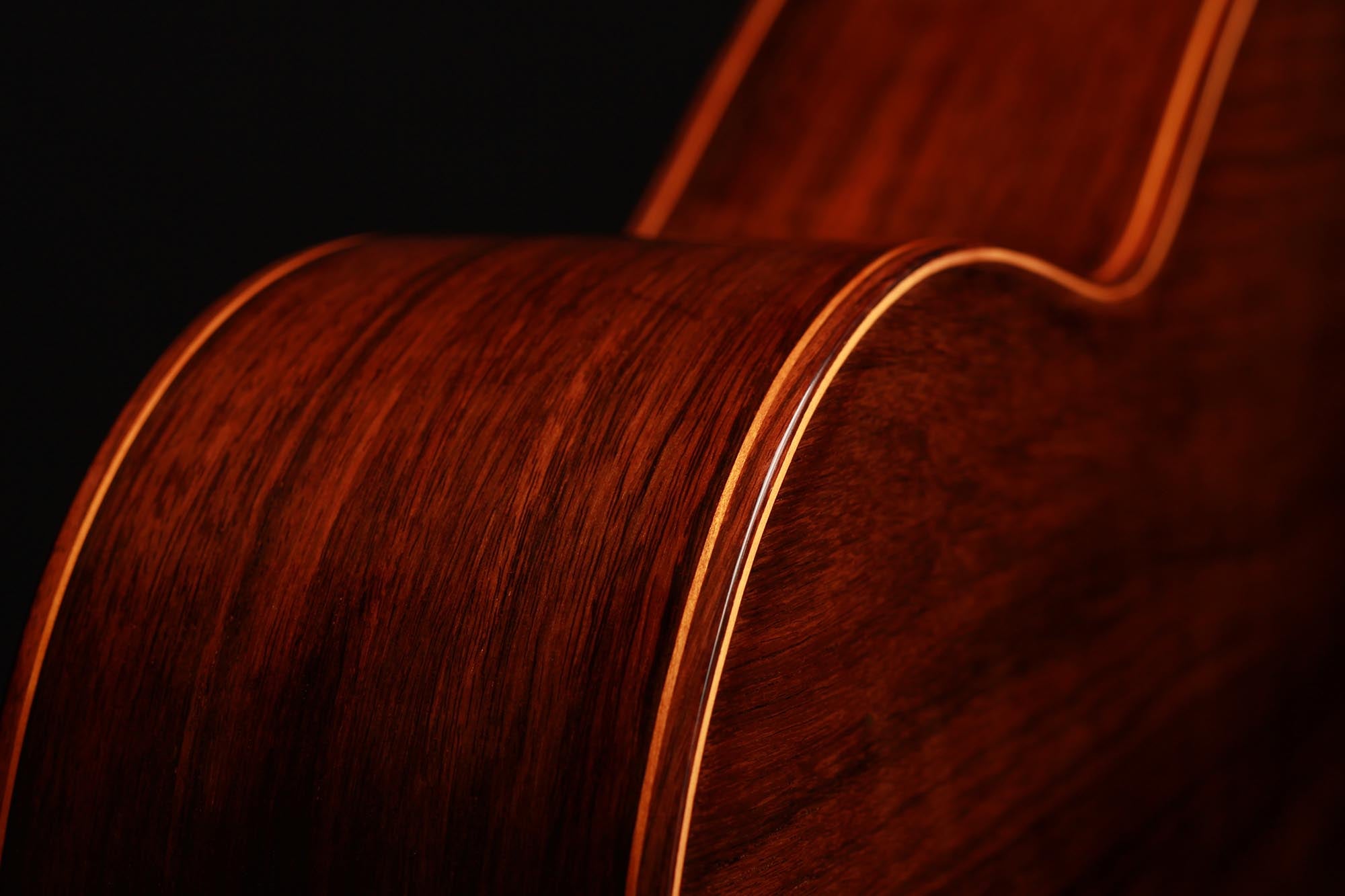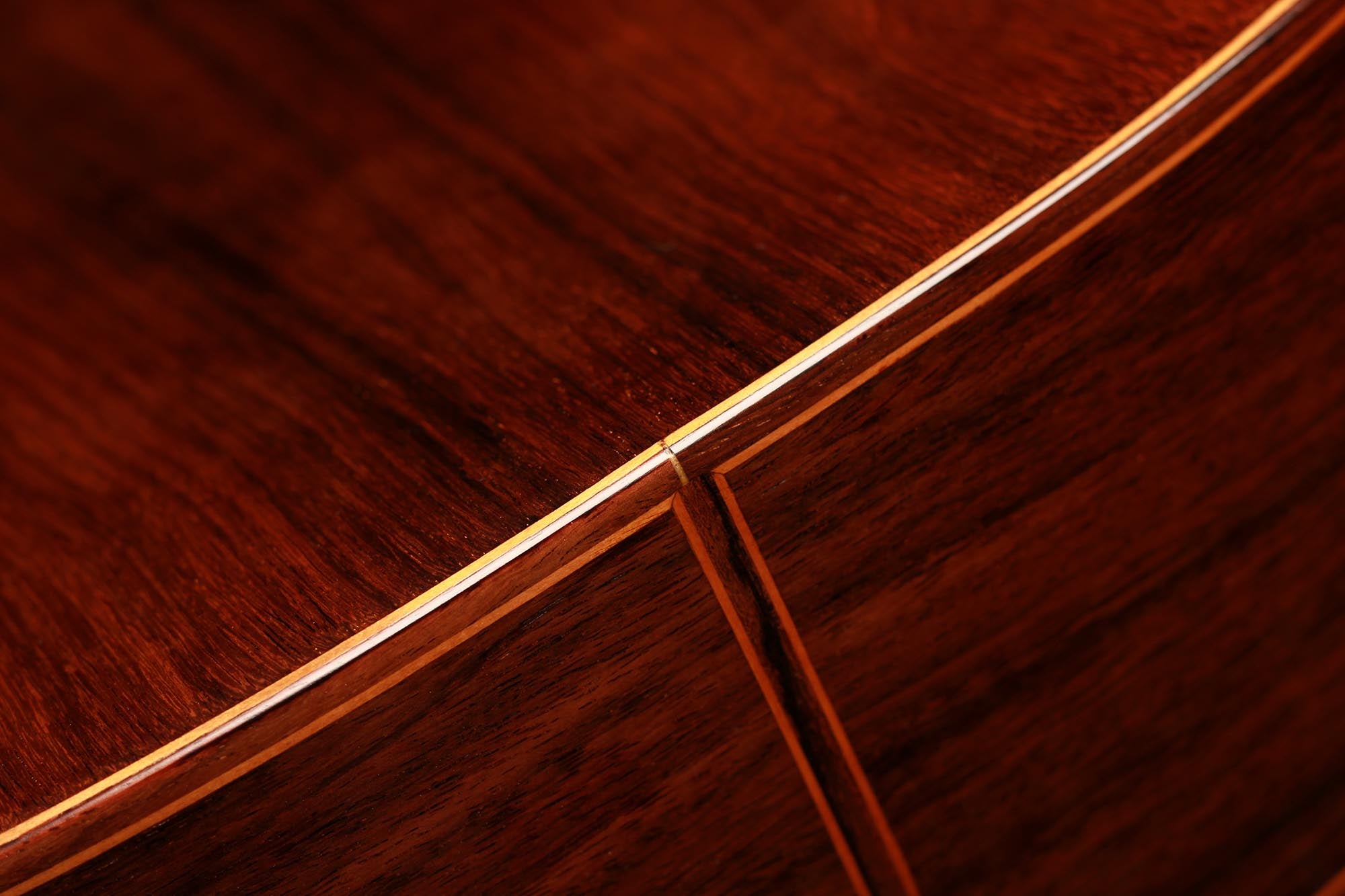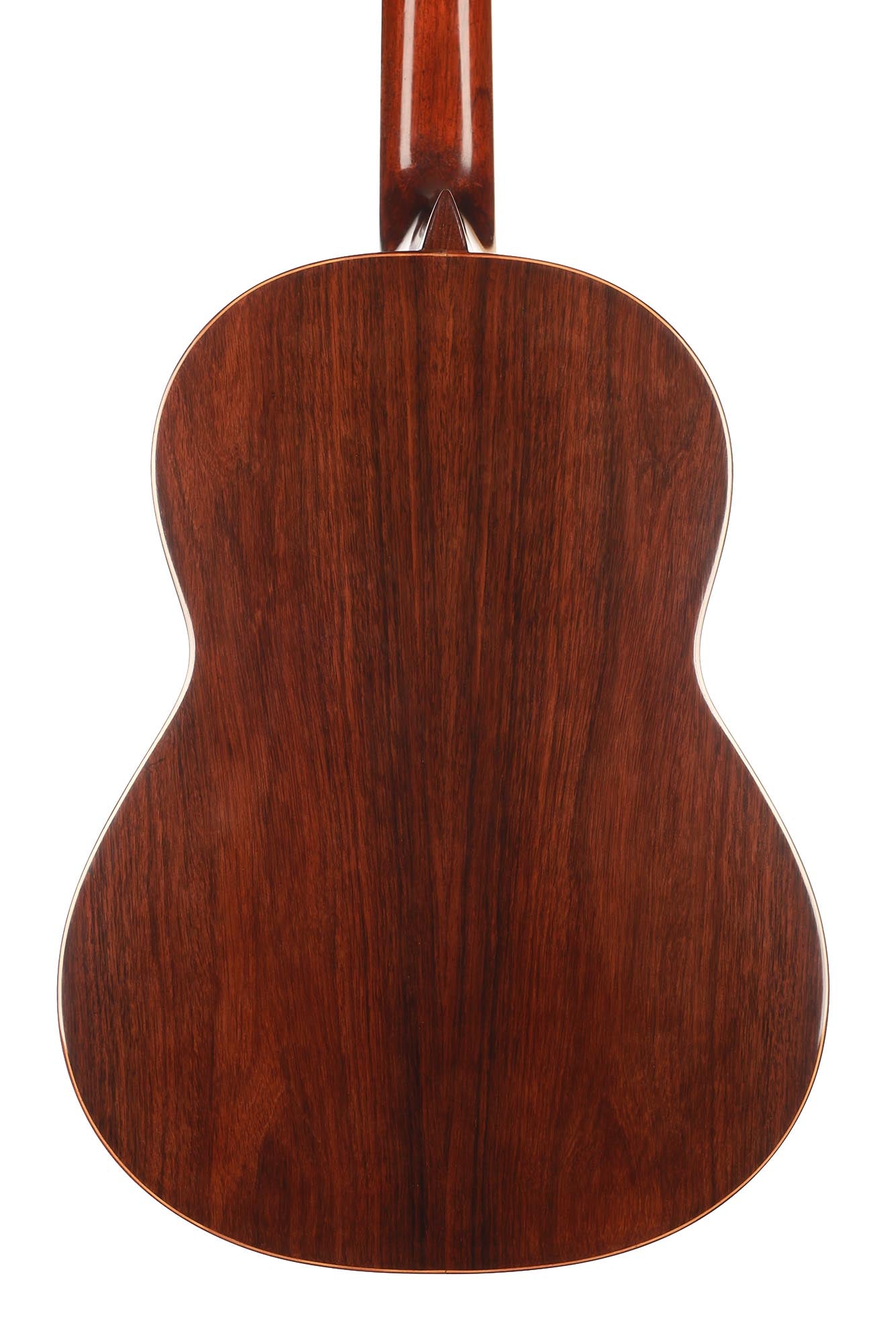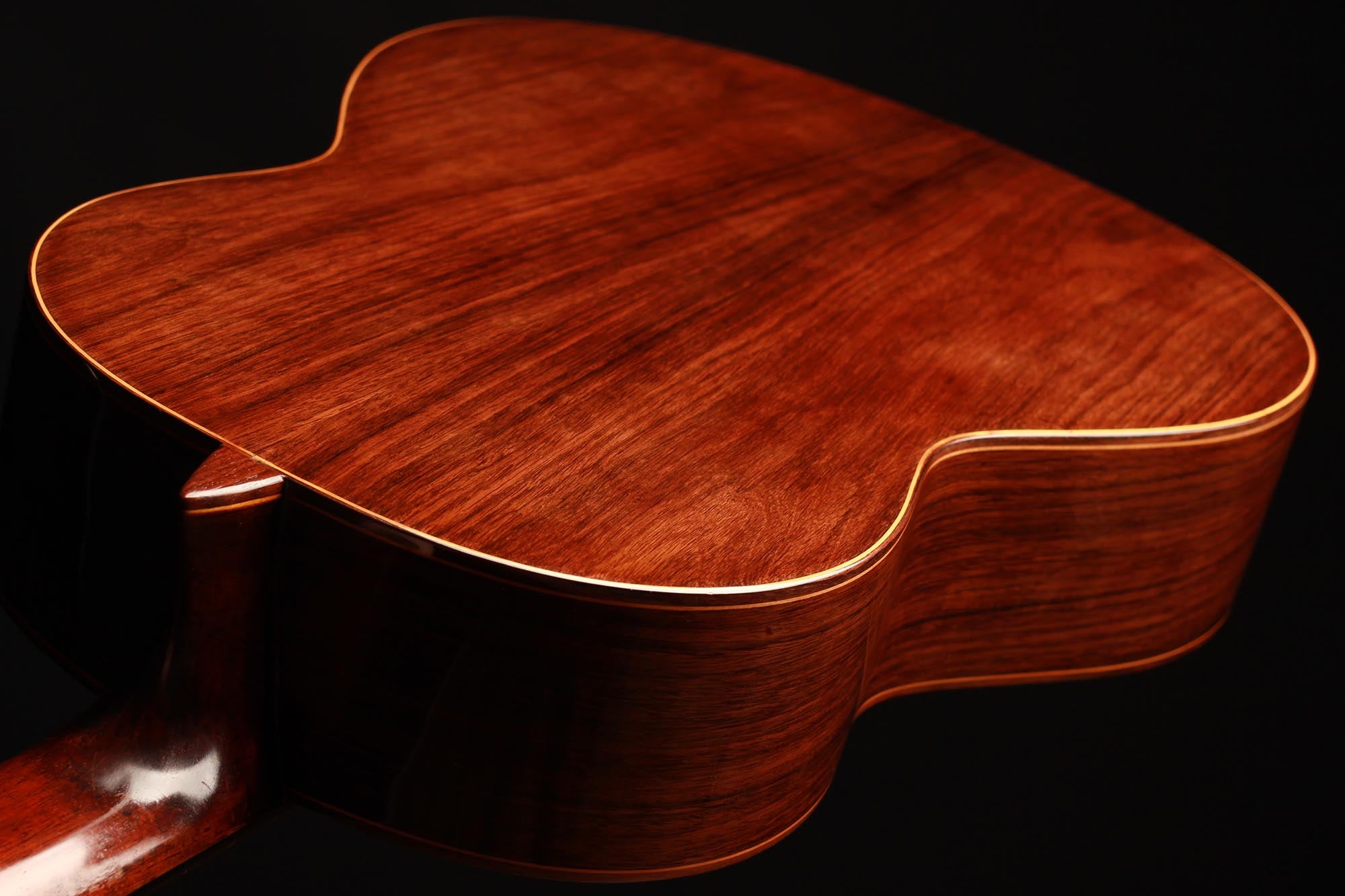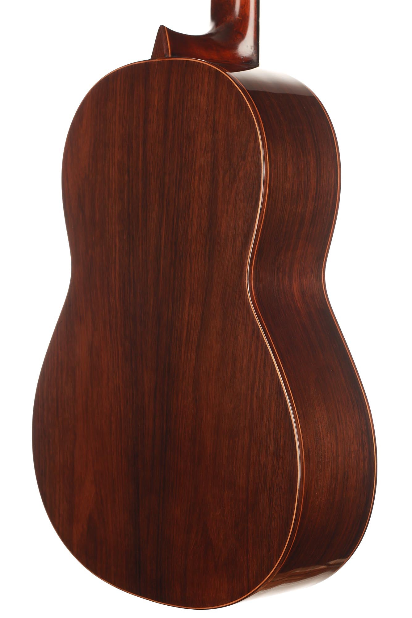 This beautiful guitar built in 1965 has an incredibly beautiful sound. It was built by the then workshop foreman under the supervision and according to the guidelines of Hernandez y Aguado, which is recognizable by the inscription "Construida por nuestro oficial" on the label. It is surprisingly light, and its responsiveness is outstanding. If one is looking for a guitar with a purely Spanish sound and an immediate sound production, this guitar is the right one. In addition, the setup is perfect and the playability for both right and left hands is at its best. This guitar has no cracks and is in very good condition. It has been re-varnished, and the bridge has been replaced, preserving the original decorative plate on the tying block. This instrument is equipped with Rodgers tuners and has a pure Spanish sound typical of the guitars from the workshop of the masters Hernandez y Aguado.