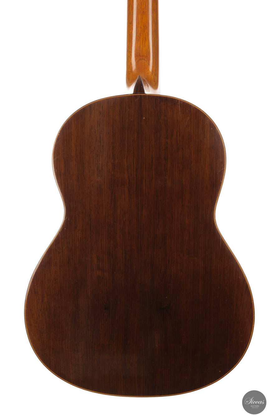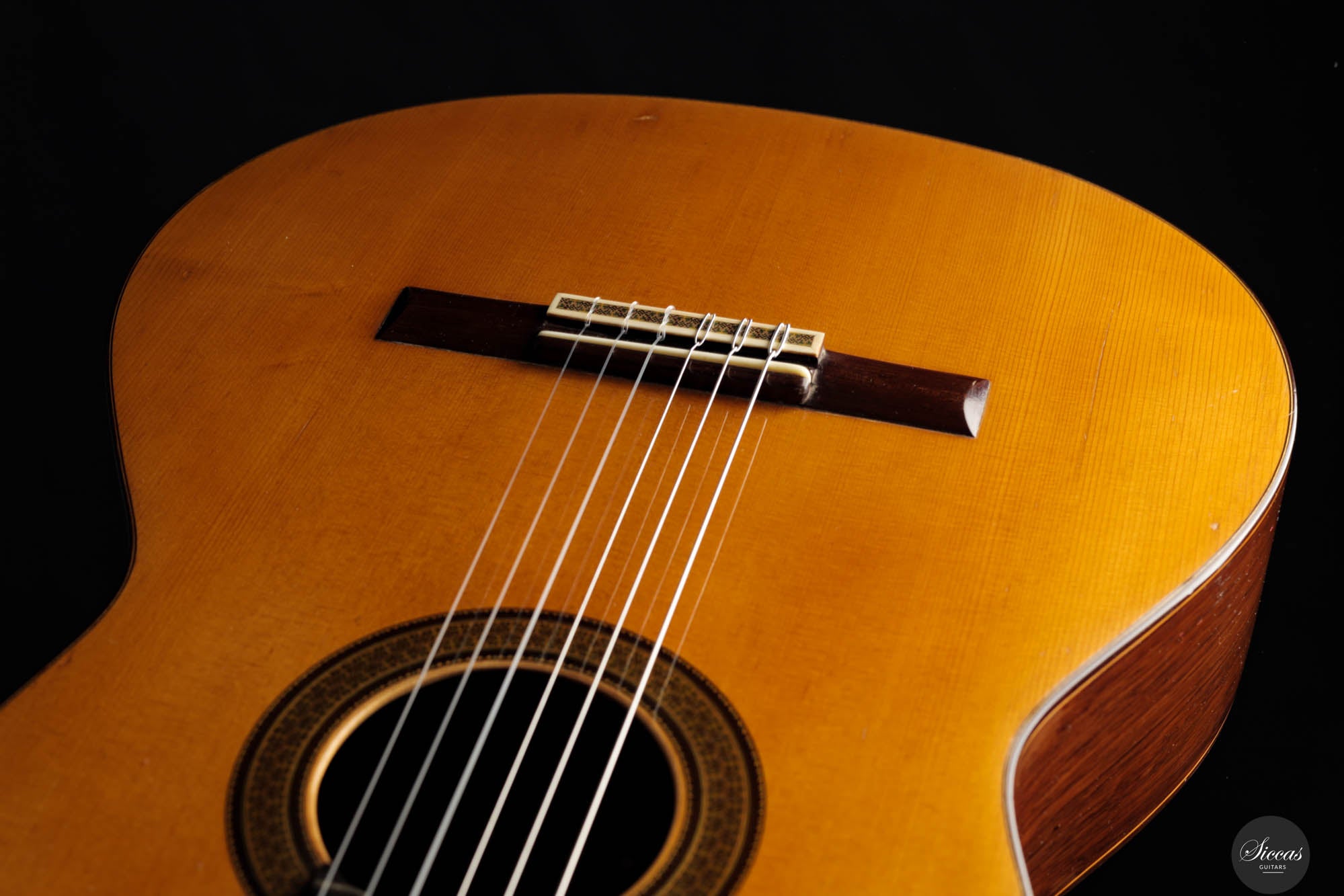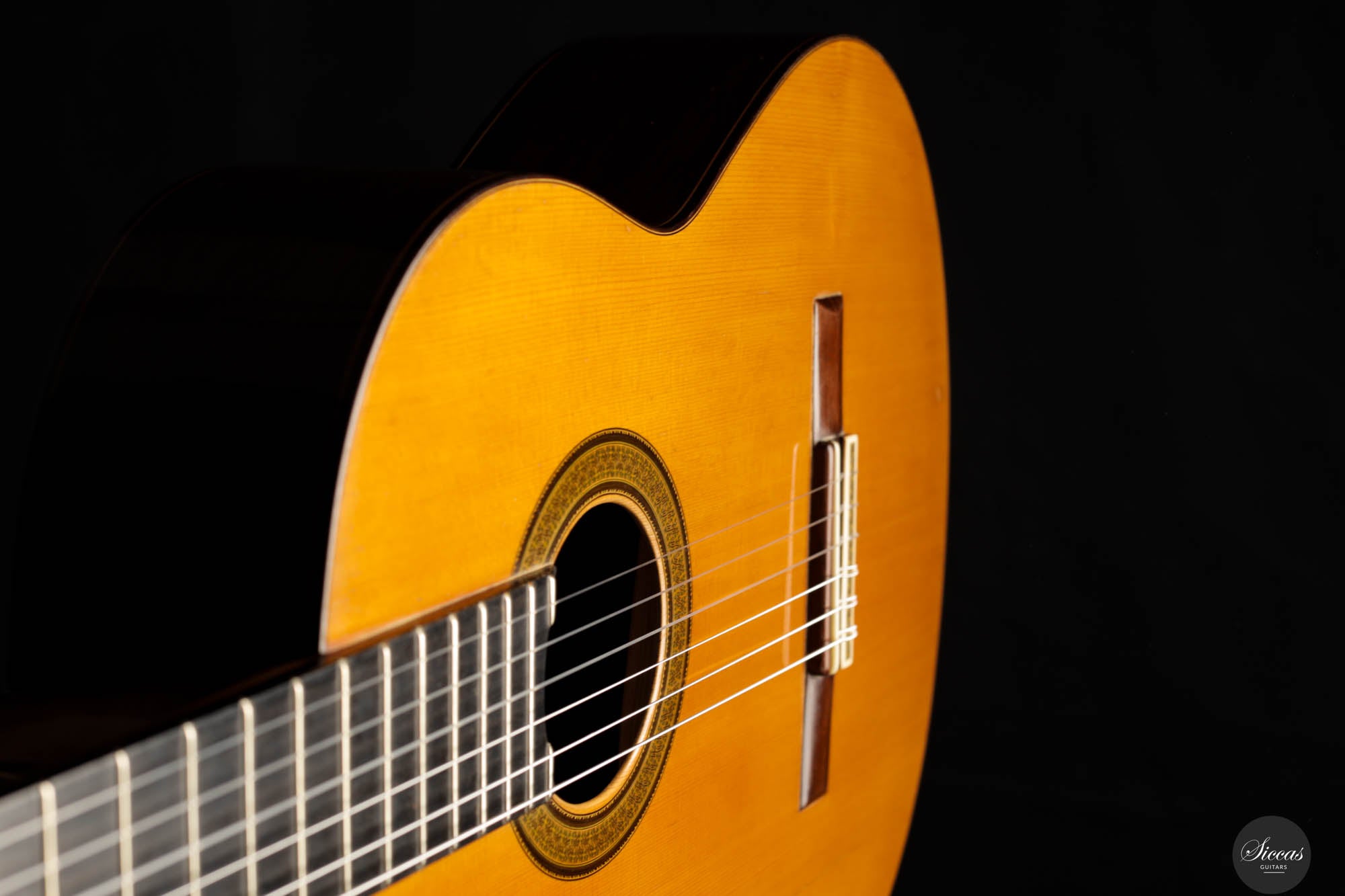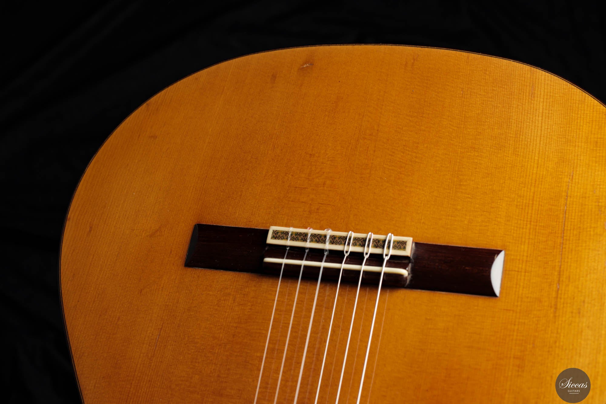 Dieses Meisterwerk wurde 1966 gebaut und ist trägt die Nummer 311. Sie wurde auf dem Etikett und auf der Innenseite des Instruments mit einem eleganten grünen Bleistift signiert. Nicht nur ist sie in einem verblüffend guten Zustand mit nur oberflächlichen Spielspuren, auch der originale Obersattel und die Stegeinlage sind erhalten geblieben. Der Obersattell ist faszinierend, da Hernandez y Aguado ihn immer zweifarbig gestalteten, indem ein Stück Knochen mit Ebenholz unterlegt wurde.Dieses Meisterwerk von 1966, nummeriert mit 319, steht als Zeugnis für das bemerkenswerte Handwerk seiner Schöpfer, einem renommierten Gitarrenbau-Duo, dessen Instrumente weltweit gefeiert werden. In sehr gutem Zustand weist diese Gitarre nur einen kleinen, reparierten Haarriss auf der unteren Bassseite der Decke auf, der sorgfältig mit drei kleinen Belägen repariert wurde, die von der geschickten Restaurierung zeugen. Sie besitzt alle Merkmale, die diese Instrumente sehr begehrt machen: große Ausdruckskraft, fantastisches Sustain und perfekte Intonation. Eine solche Kombination aus außergewöhnlicher Klangqualität und sorgfältiger Erhaltung macht diese Gitarre zu einem seltenen Fund und bietet Sammlern und Musikern gleichermaßen eine einzigartige Gelegenheit, ein Stück Musikgeschichte zu besitzen. Ein weiteres interessantes Detail zu dieser Gitarre ist, dass sie nur von einer einzigen Person besessen wurde, einem ehemaligen Schüler von Alirio Diaz und Antonio Lauro, der die Gitarre direkt in der HyA-Werkstatt kaufte.