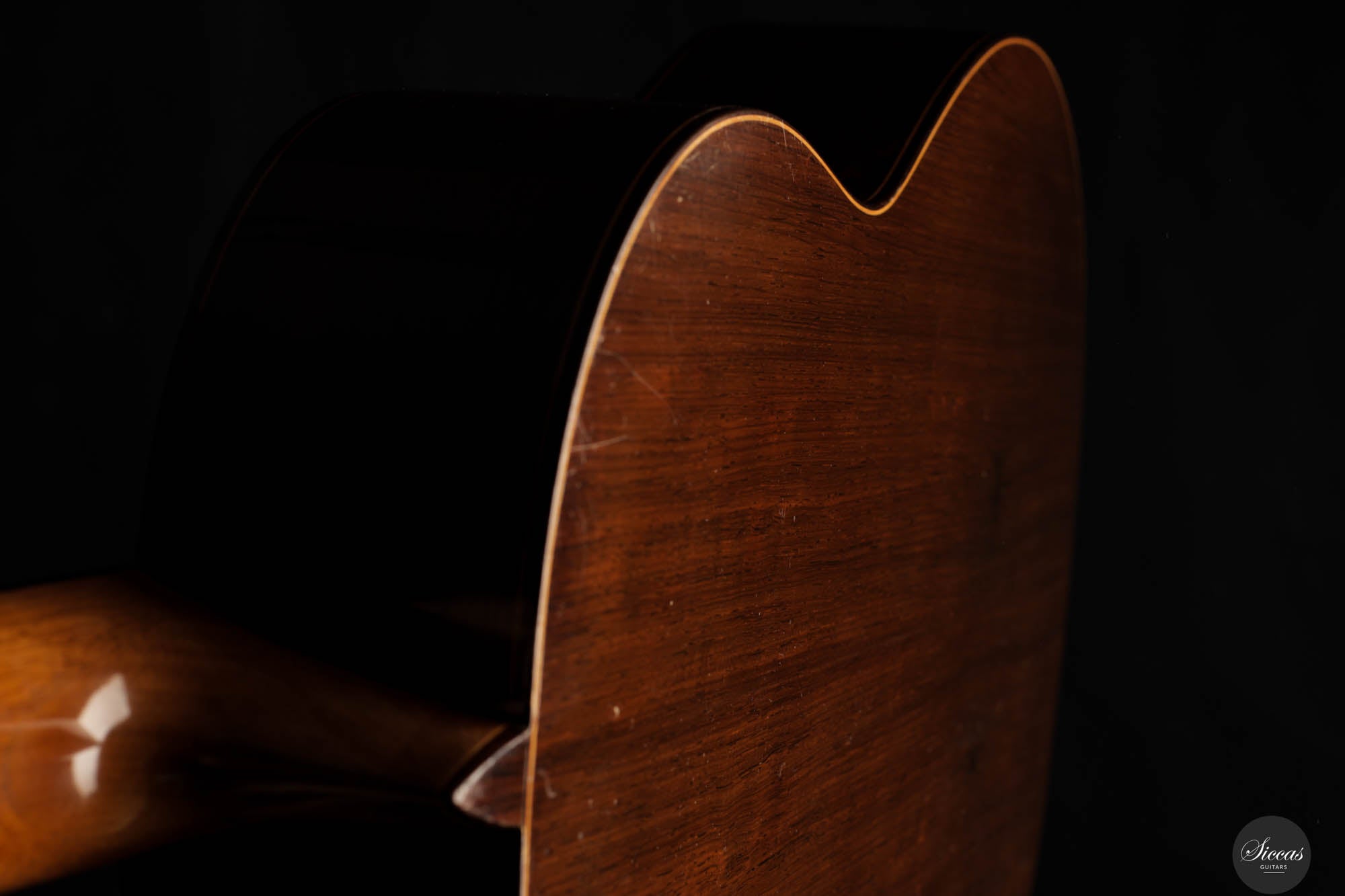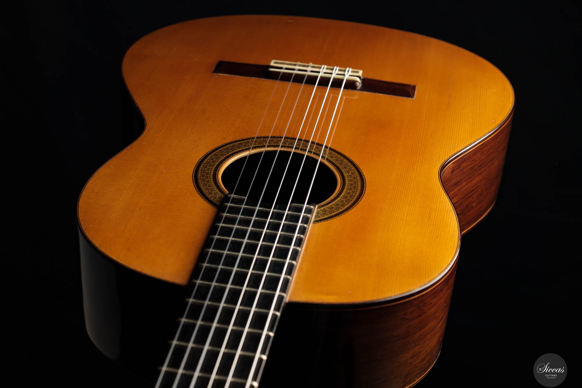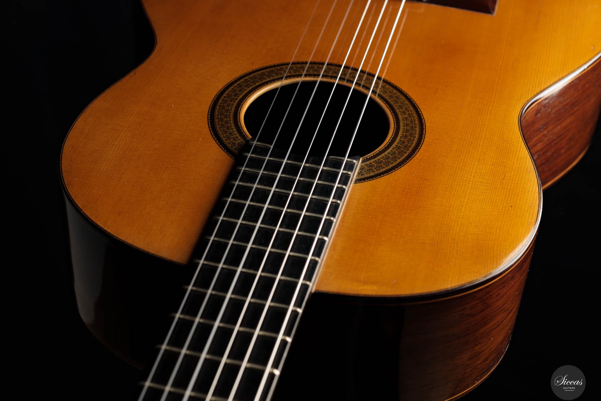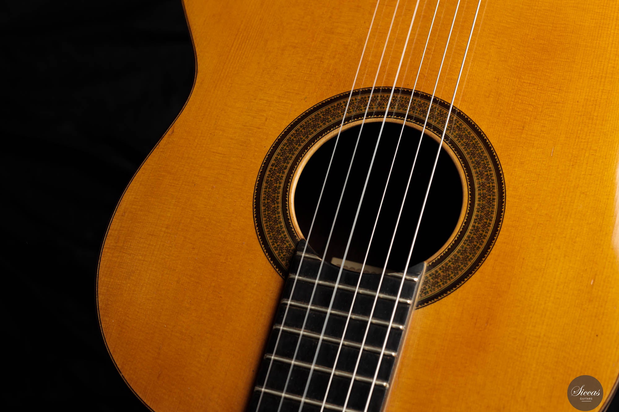 Dieses Meisterwerk wurde 1966 gebaut und ist trägt die Nummer 311. Sie wurde auf dem Etikett und auf der Innenseite des Instruments mit einem eleganten grünen Bleistift signiert. Nicht nur ist sie in einem verblüffend guten Zustand mit nur oberflächlichen Spielspuren, auch der originale Obersattel und die Stegeinlage sind erhalten geblieben. Der Obersattell ist faszinierend, da Hernandez y Aguado ihn immer zweifarbig gestalteten, indem ein Stück Knochen mit Ebenholz unterlegt wurde.Dieses Meisterwerk von 1966, nummeriert mit 319, steht als Zeugnis für das bemerkenswerte Handwerk seiner Schöpfer, einem renommierten Gitarrenbau-Duo, dessen Instrumente weltweit gefeiert werden. In sehr gutem Zustand weist diese Gitarre nur einen kleinen, reparierten Haarriss auf der unteren Bassseite der Decke auf, der sorgfältig mit drei kleinen Belägen repariert wurde, die von der geschickten Restaurierung zeugen. Sie besitzt alle Merkmale, die diese Instrumente sehr begehrt machen: große Ausdruckskraft, fantastisches Sustain und perfekte Intonation. Eine solche Kombination aus außergewöhnlicher Klangqualität und sorgfältiger Erhaltung macht diese Gitarre zu einem seltenen Fund und bietet Sammlern und Musikern gleichermaßen eine einzigartige Gelegenheit, ein Stück Musikgeschichte zu besitzen. Ein weiteres interessantes Detail zu dieser Gitarre ist, dass sie nur von einer einzigen Person besessen wurde, einem ehemaligen Schüler von Alirio Diaz und Antonio Lauro, der die Gitarre direkt in der HyA-Werkstatt kaufte.