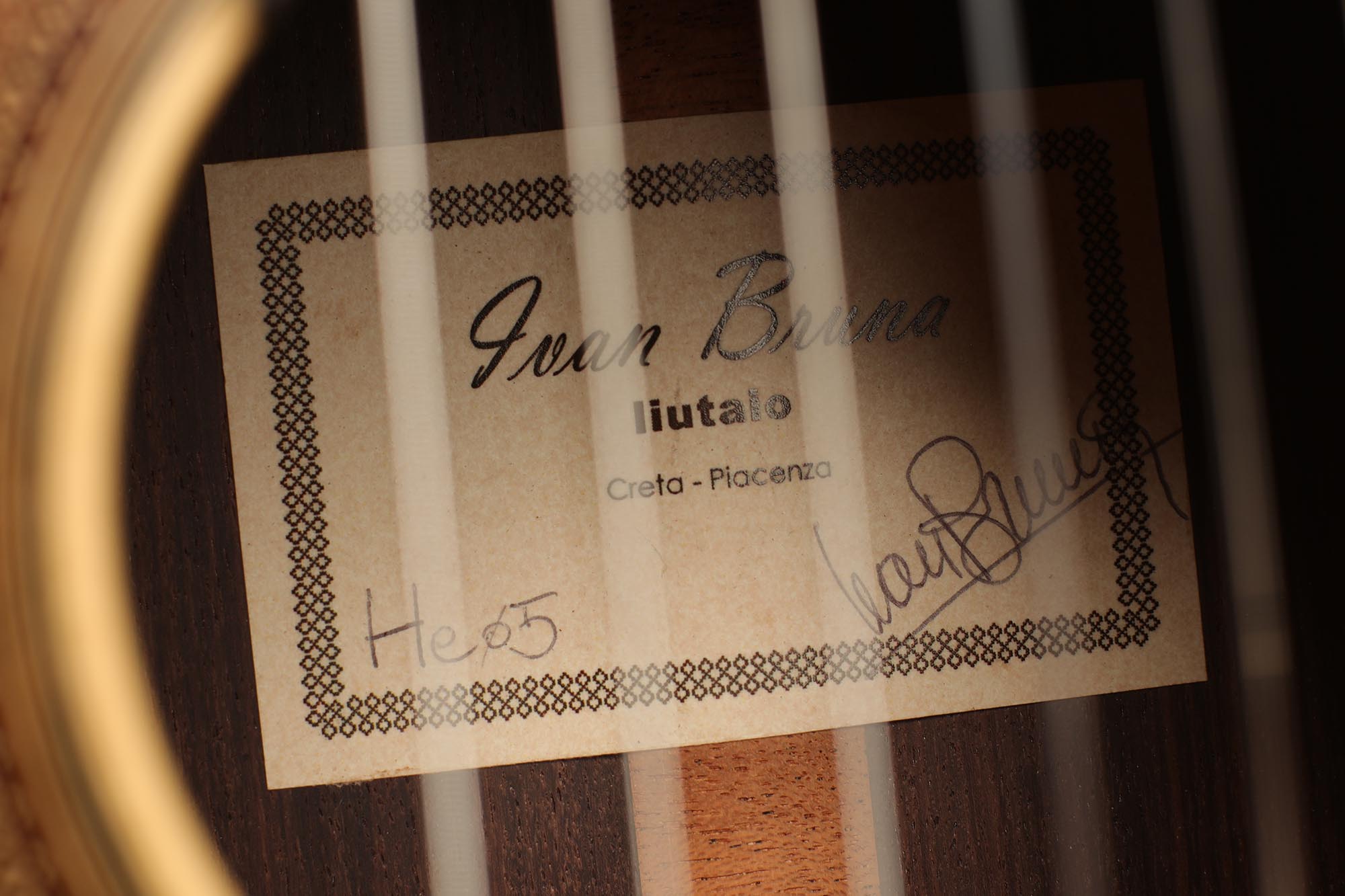 Ivan Bruna ist ein italienischer Gitarrennbauer mit herausragenden Fähigkeiten und großem Talent. Er lernte die Feinheiten des Handwerks von dem großen italienischen Meister Enrico Bottelli und schafft Gitarren, deren Ästhetik tief in der italienischen Tradition verwurzelt ist. So verbindet er präzise Handwerkskunst mit einer rafinnierten Kombination von Hölzern, Formen und Farben. Ivan Bruna konzentriert sich beim Bau einer Gitarre auf drei wesentliche Aspekte: leichte Spielbarkeit, Zuverlässigkeit und klangliche Vielseitigkeit.